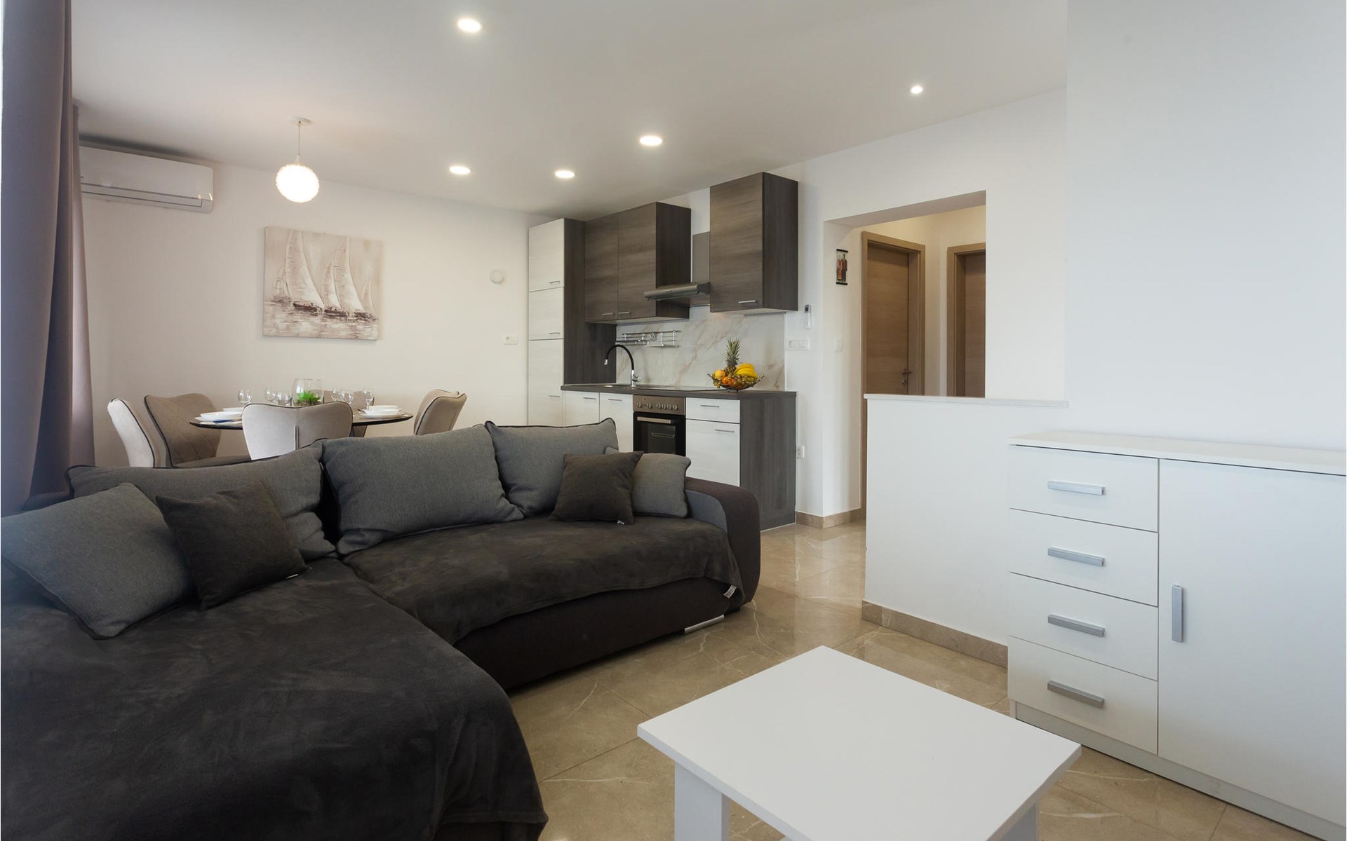 Welcome to this beautiful and stylish vacation apartment. Feel at home as soon as you enter. Put your feet up and enjoy the peace and quiet. The apartment is beautifully furnished with high quality furniture and invites you to enjoy a fantastic panoramic sea view from your covered balcony. You can also enjoy relaxing baths in the jacuzzi, where you can make yourself comfortable with a glass of champagne.