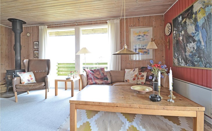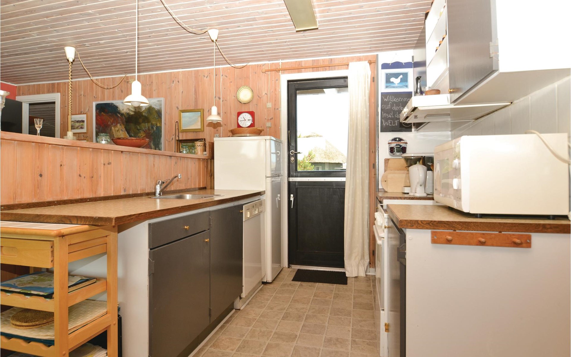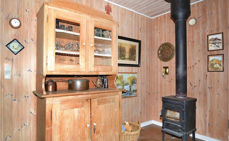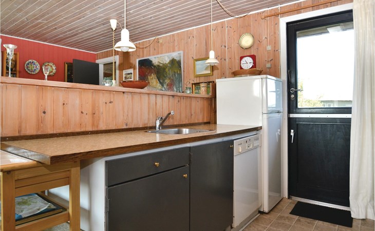 Spend your next holiday in this holiday home on the south beach of Sønderho. The house is located in the middle of the picturesque dune landscape and offers a beautiful base for relaxing days in nature. Your holiday home is simply but functionally furnished. The living area with large windows provides plenty of natural light and offers you a marvellous view of the surrounding dunes. A small wood-burning stove provides cosy warmth on cooler evenings. The open-plan kitchen is functionally furnished and adjoins the dining and living area, where you can enjoy your meals.