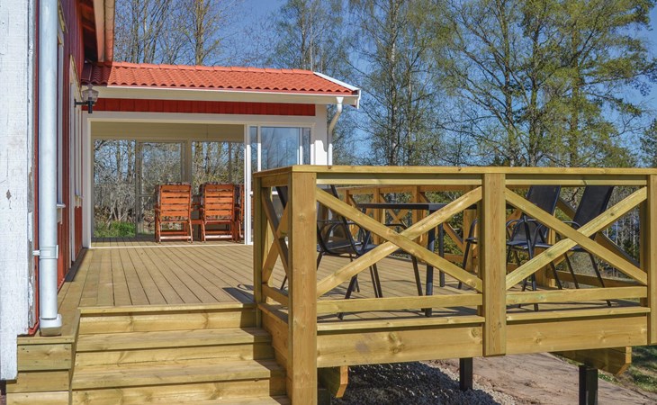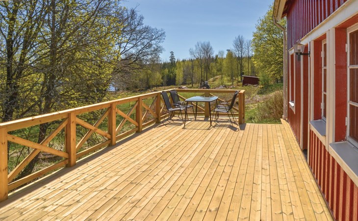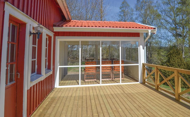 Water body: Fösjön. Pretty house, on the owner's farm at the end of a cul-de-sac. Hillside location with beautiful view of bathing and fishing lake. Stone terrace with lake view and morning sun. Around the house are open spaces well traversed by hiking and riding trails. Horses and boxes can be rented on the farm. Astrid Lindgrens Värld, Skurugata, Spipisten and Eksjö are nearby.