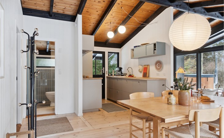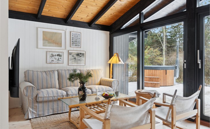 This stylish and attractive house welcomes you to Sjaelland Odde. Together with a couple of friends or your small family, you can feel at home here and enjoy the view through the panoramic window from the living room and dining area. The beautiful house leaves nothing to be desired and invites you to linger inside with a warming open fire or to relax in the Finnish wooden bath. Plan your own day, sunbathe on the terrace or barbecue in the evening.