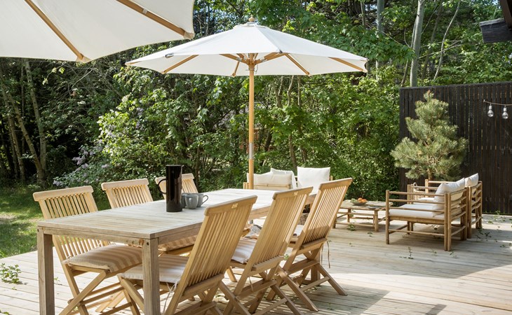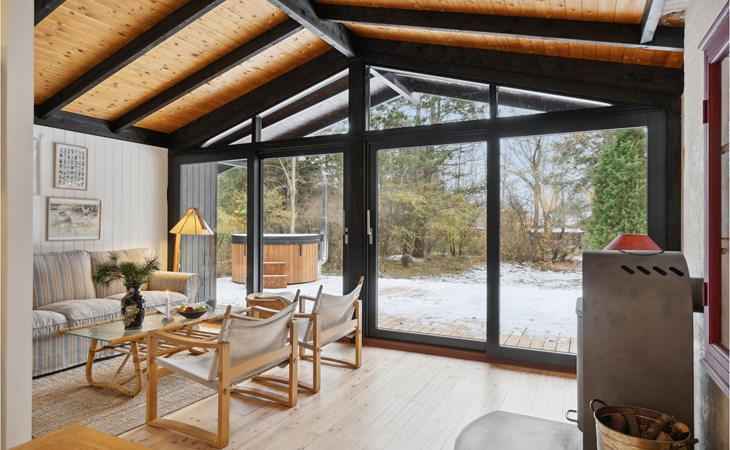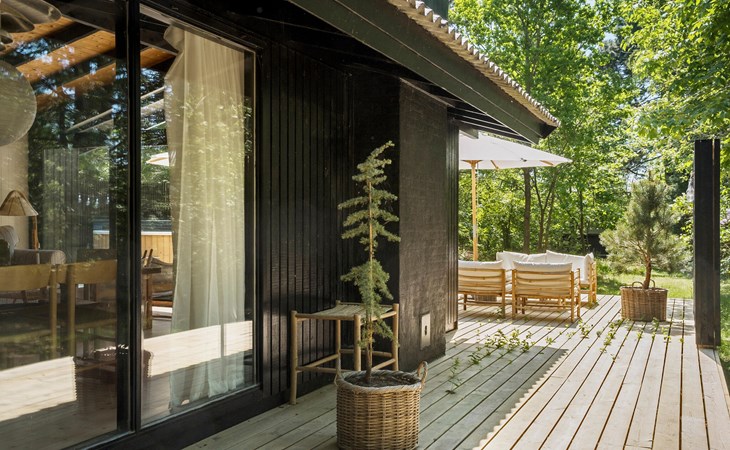 Tasteful and cozy vacation home with Finnish wooden bath and large wooden terrace.
