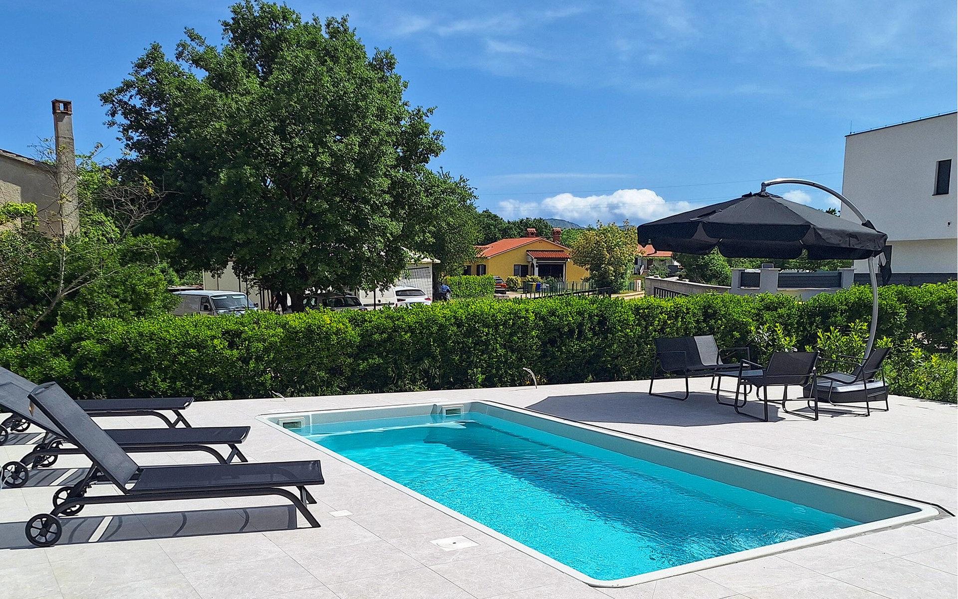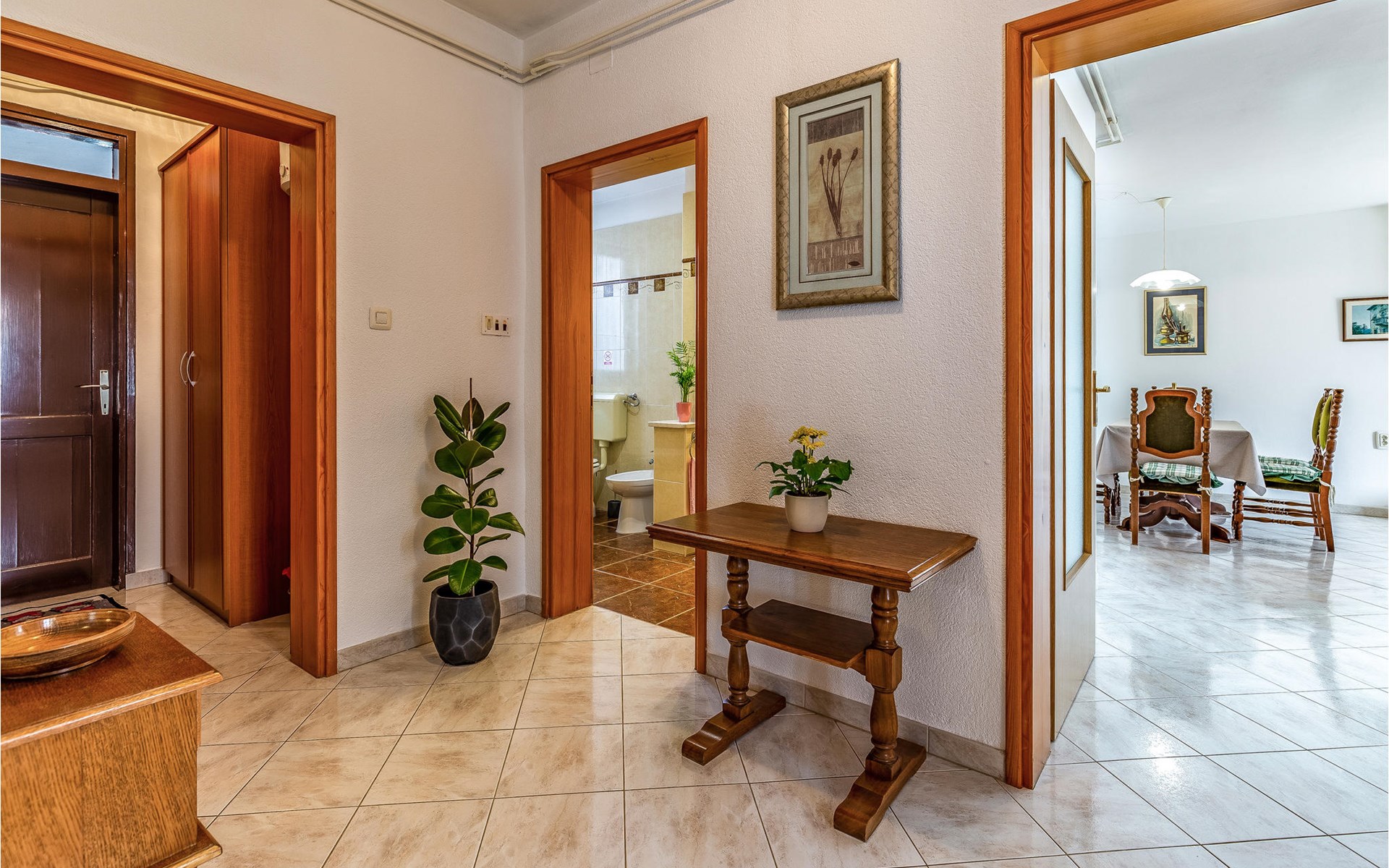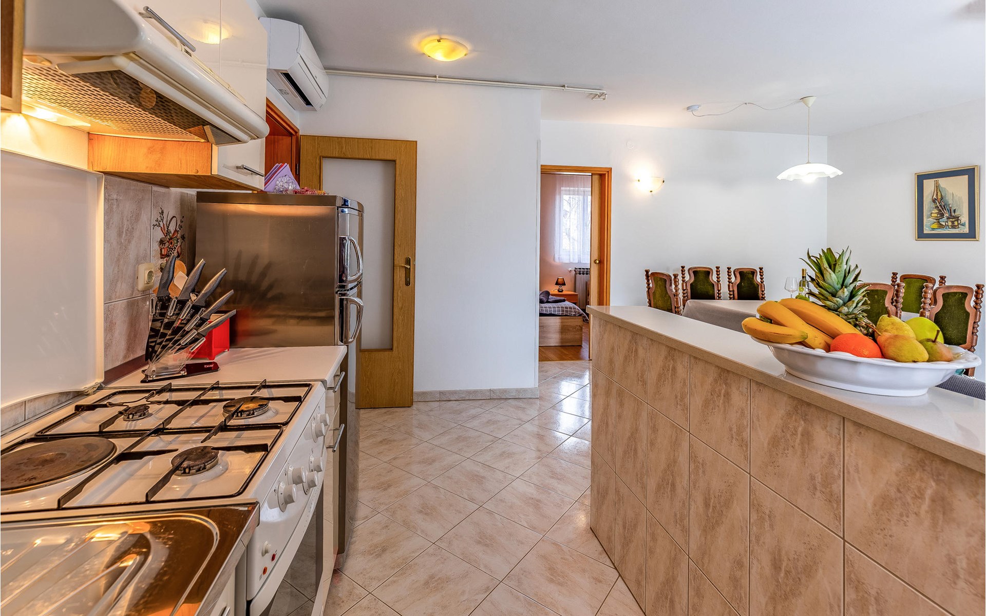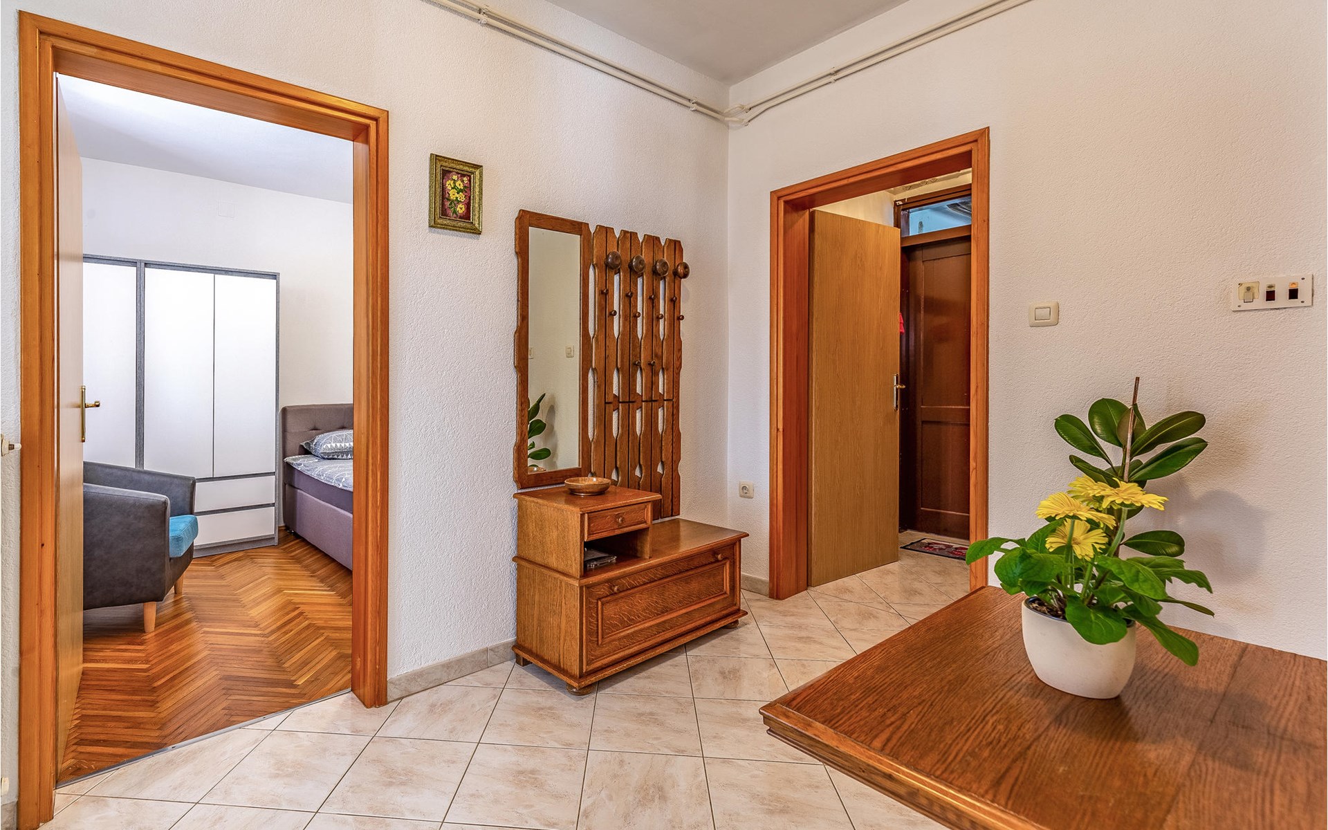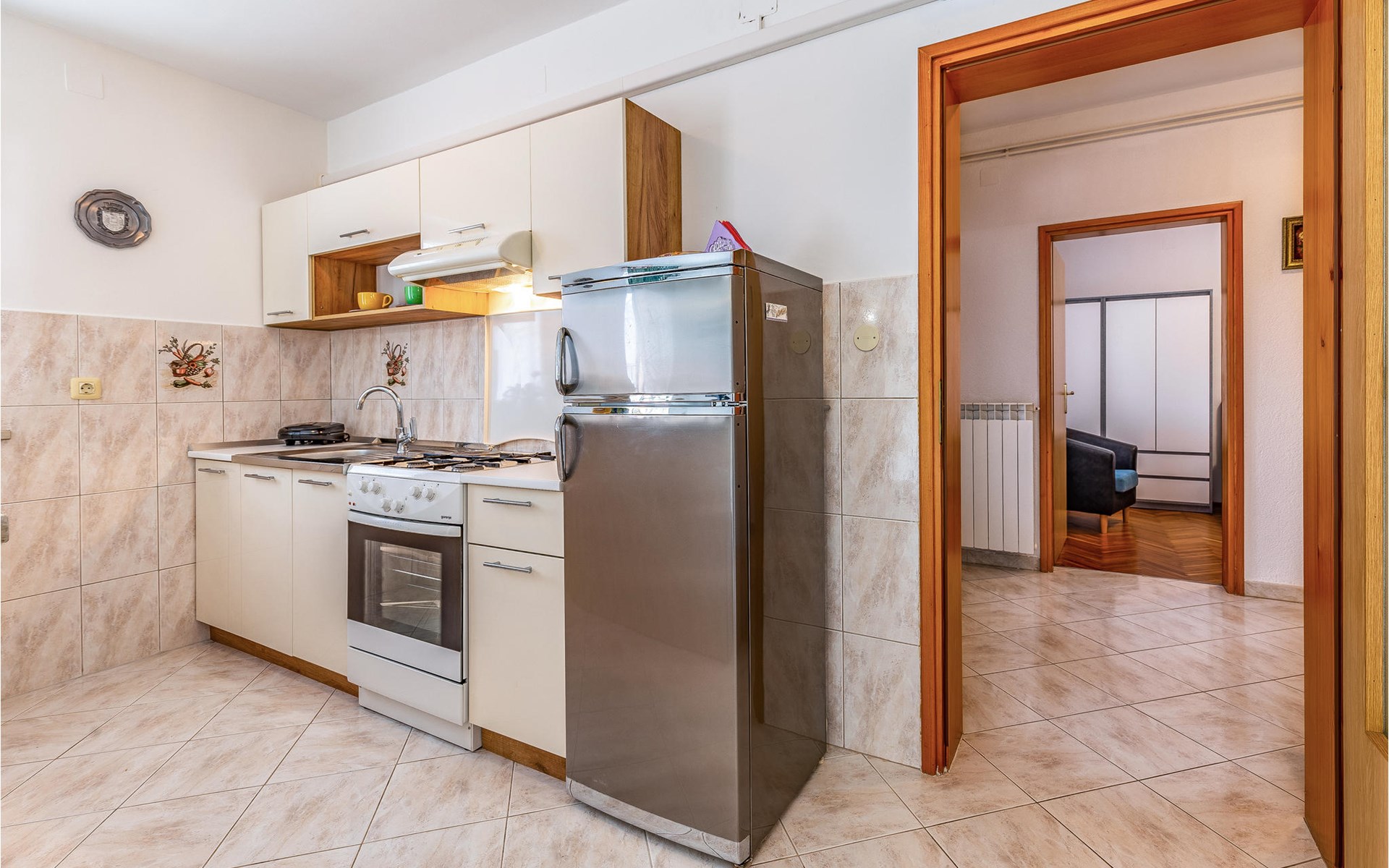 In a quiet area with private houses and cottages welcomes you this beautiful apartment on the first floor of an apartment building. It is the ideal starting point for your activities and excursions on the Istrian peninsula. Have a delicious breakfast in the morning and strengthen yourself for your undertakings for the day ahead.