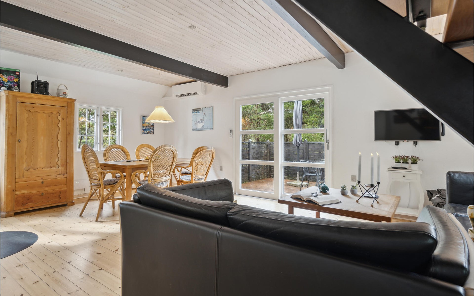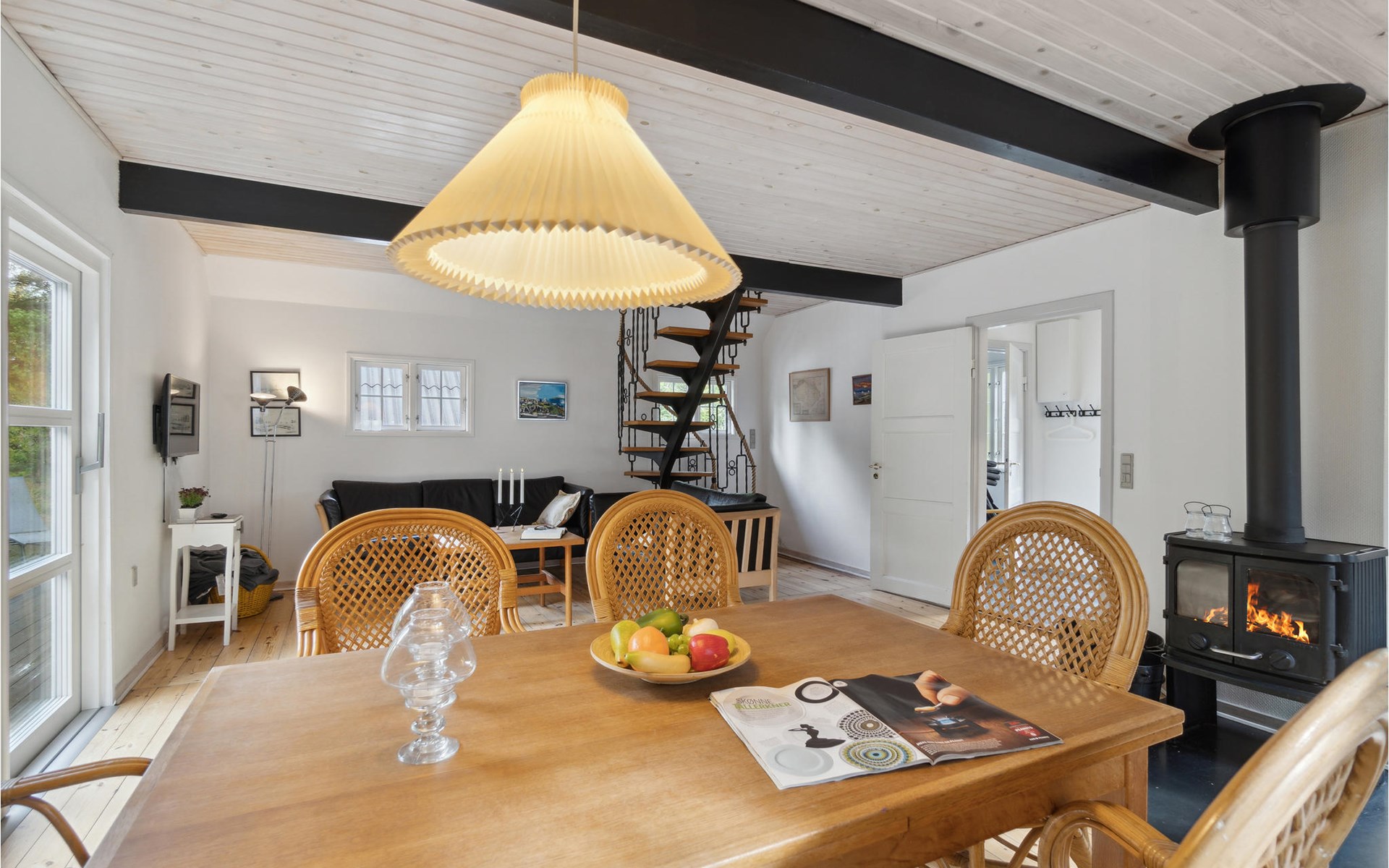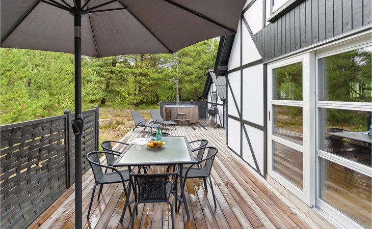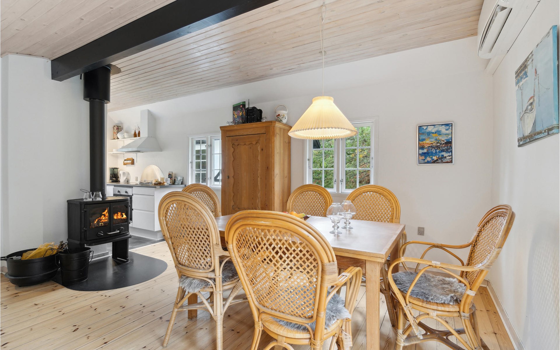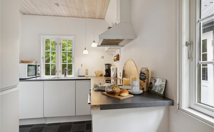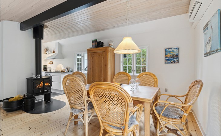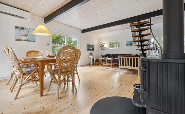This cosy holiday home is called "Blanker Hans", just like the North Sea, which floods the island twice a day. The interesting house has beautiful, exposed wooden beams in the interior, which emphasise the rural style of the furnishings. There is a wood-burning stove in the living room, which provides cosy warmth in winter when you return after a walk on the beach. The house is winter-proof and also has heating, so you can stay here all year round. From the kitchen you can see the harbour and the mudflats.