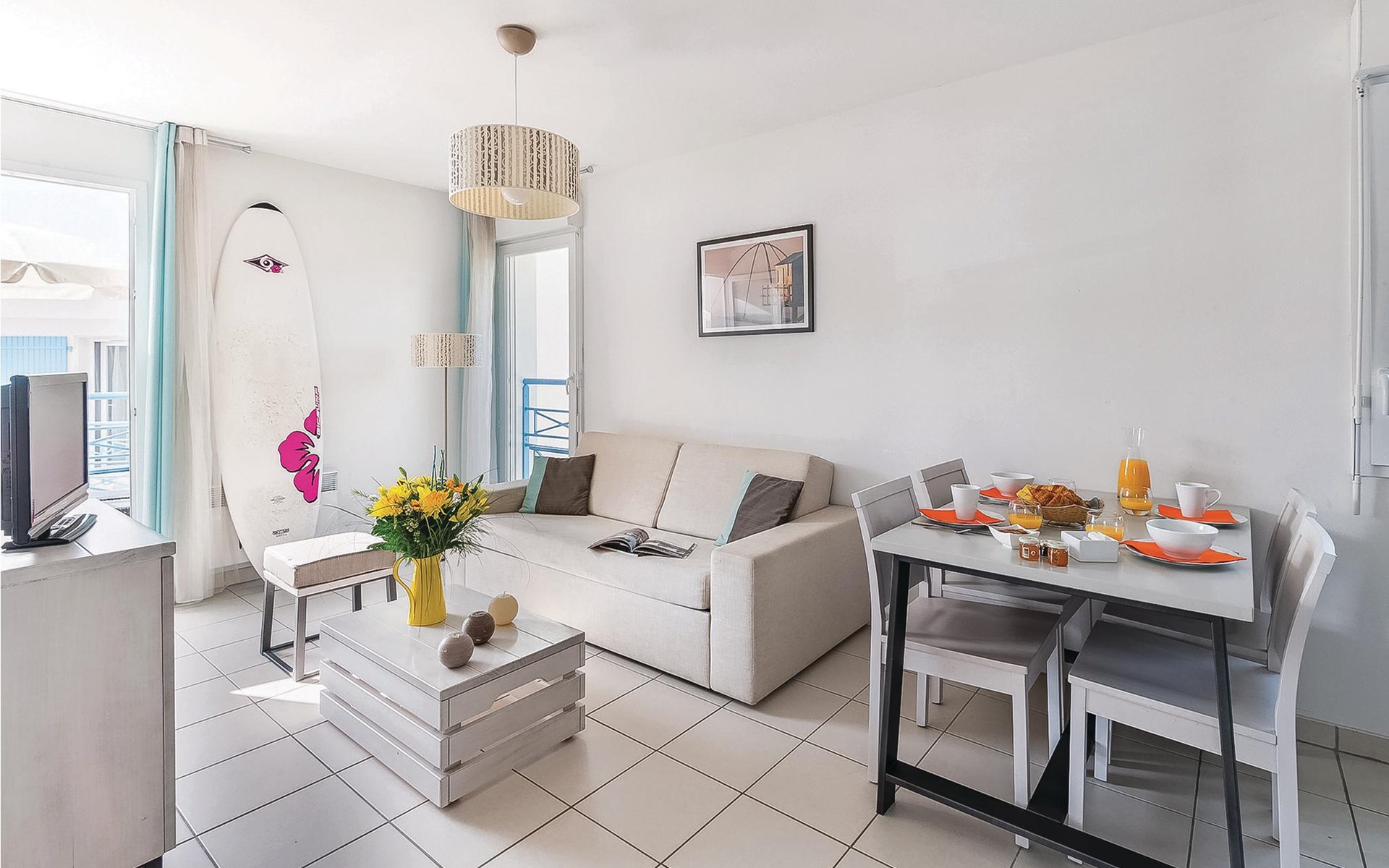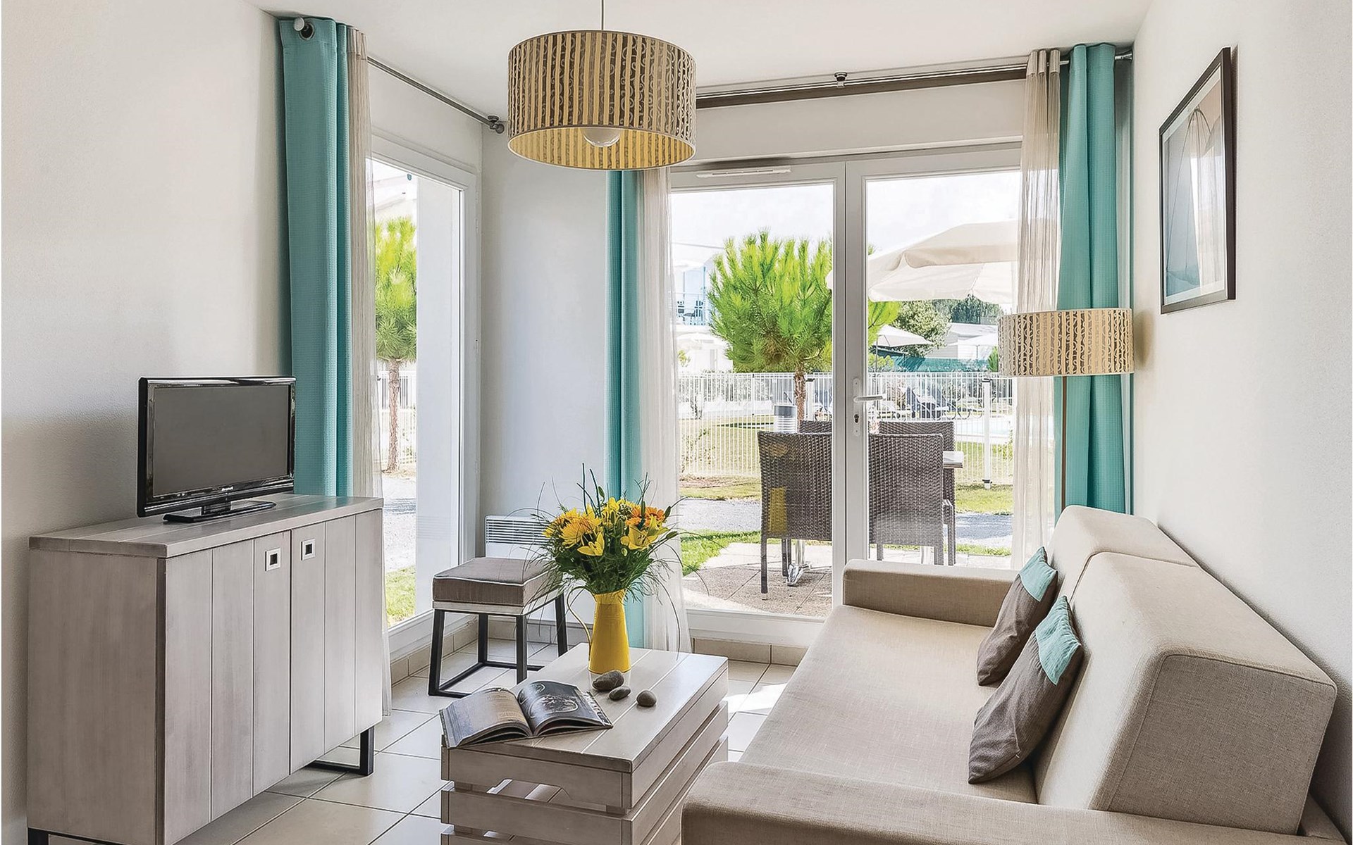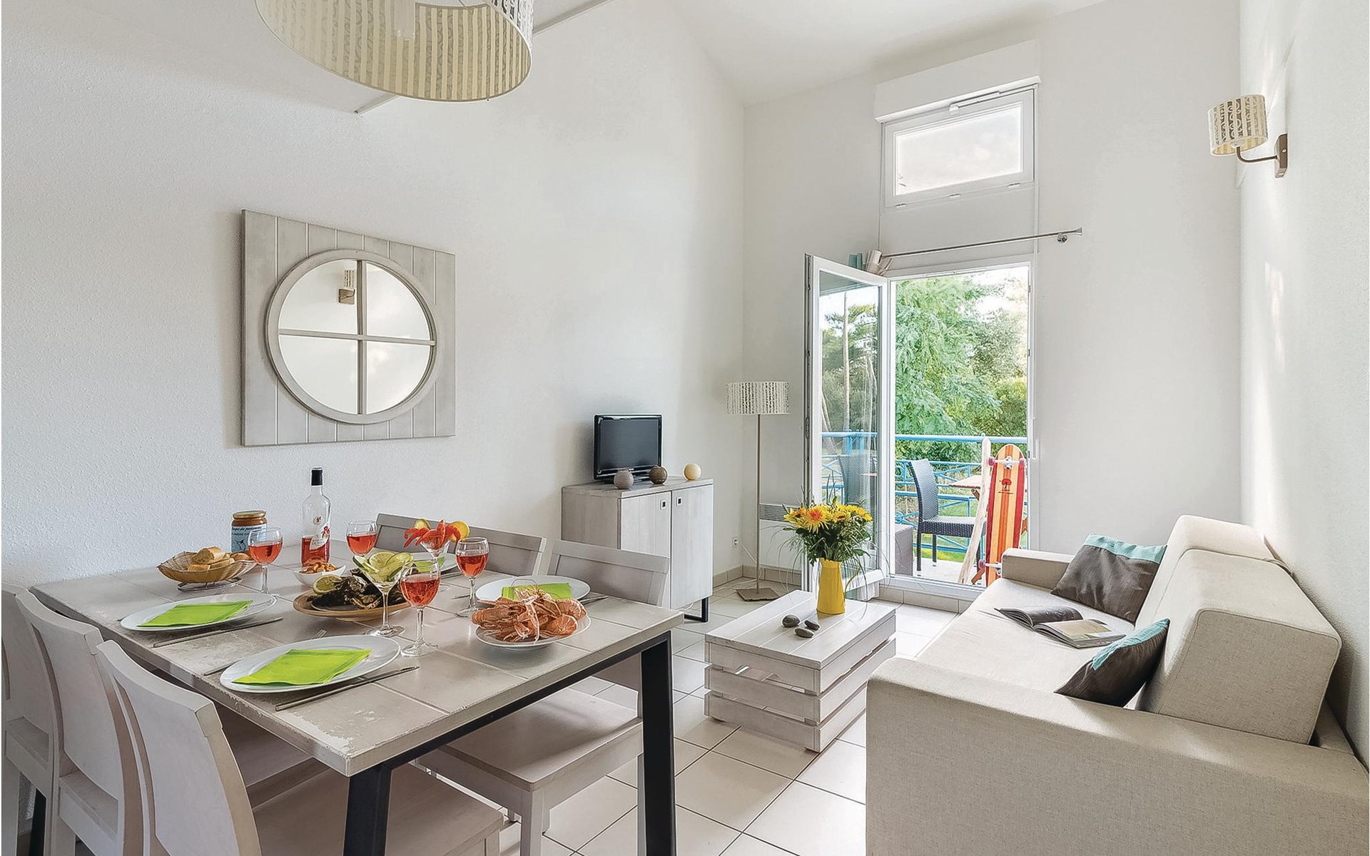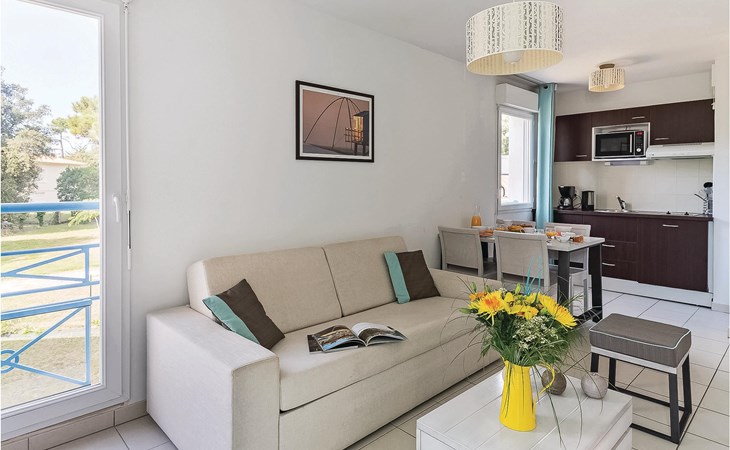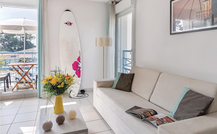 The inviting apartment welcomes guests in a vacation park, just a few steps from the sea and a short walk from Platin beach. Relax to the full in the bright, homely and modern rooms and use the apartment as a cozy base for your vacation activities. Enjoy your first coffee and a few rays of sunshine on the balcony before heading to the pool.