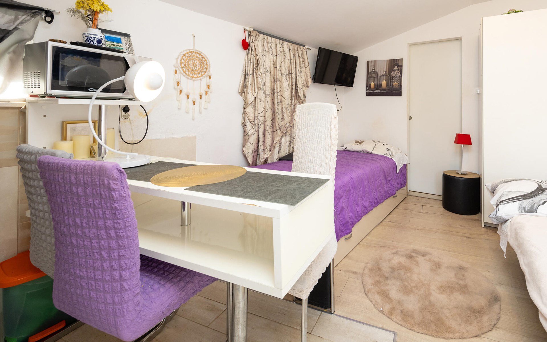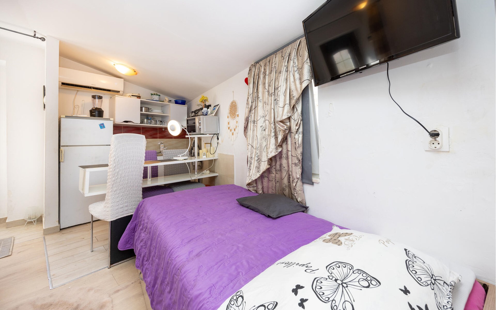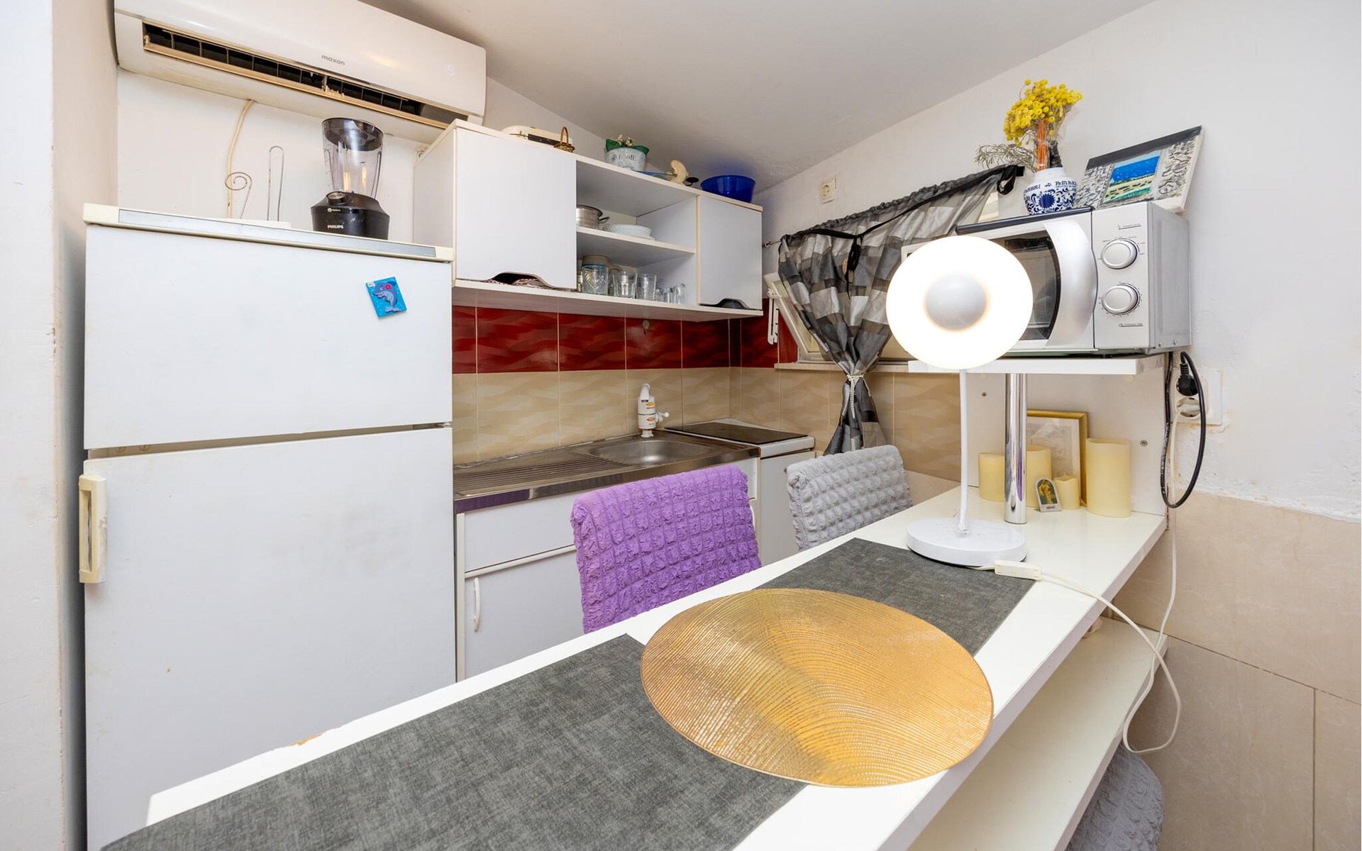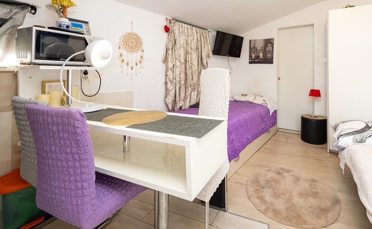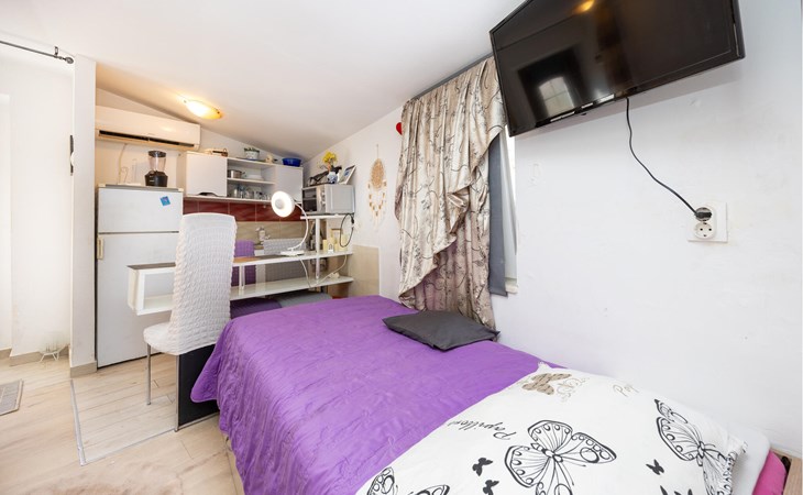 A pleasant and functional ambience awaits you in this cosy studio flat in Split. The clever room layout ensures that you will find everything you need for a pleasant stay despite the compact size. The bright furnishings and friendly atmosphere create an inviting place to relax after an exciting day in the city or on the beach. Thanks to the proximity to the sea, you can start the day with a walk on the beach or end it in a cosy restaurant in the city.