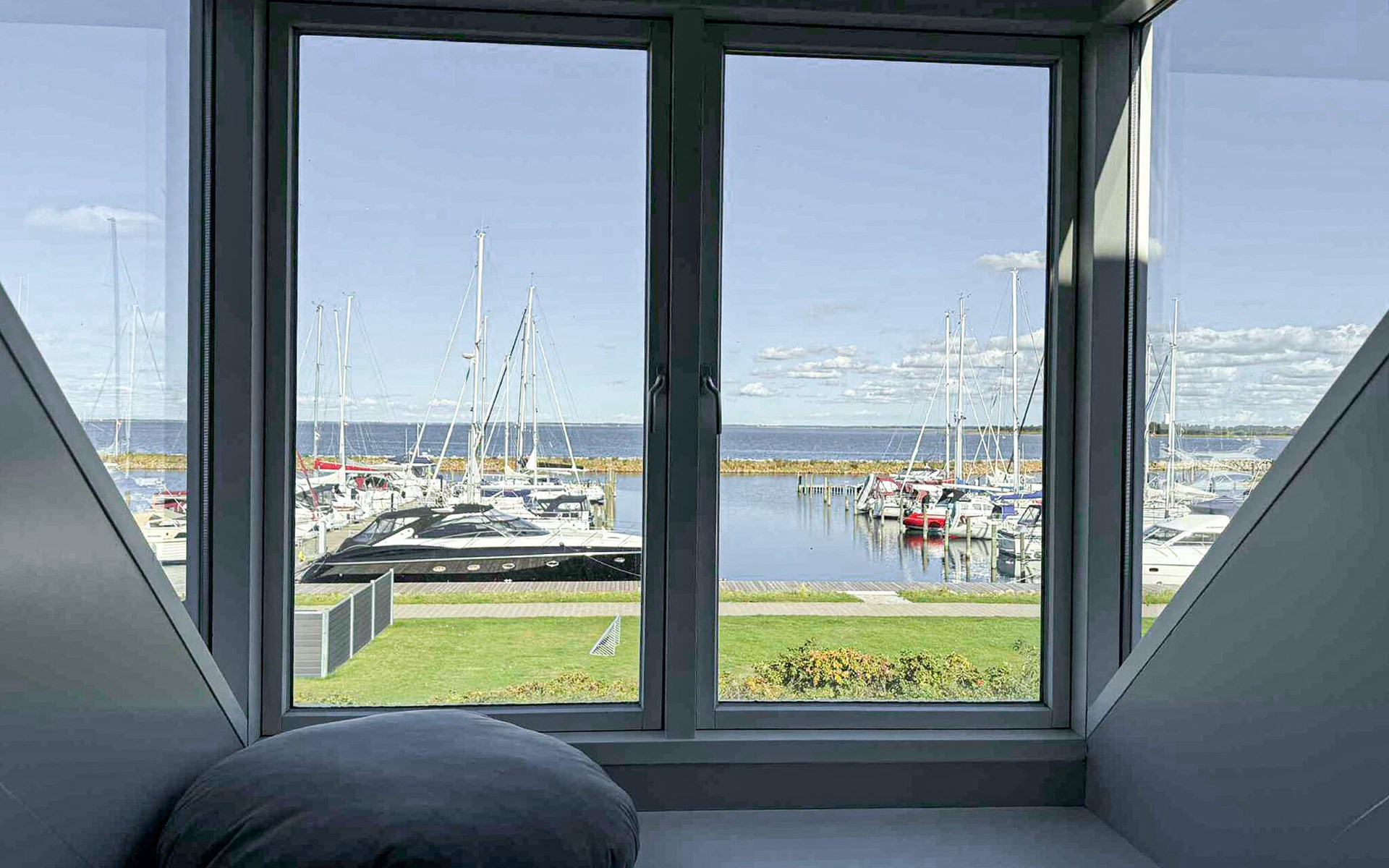 Enjoy a maritime holiday in this holiday home with panoramic views of the marina and the sea.