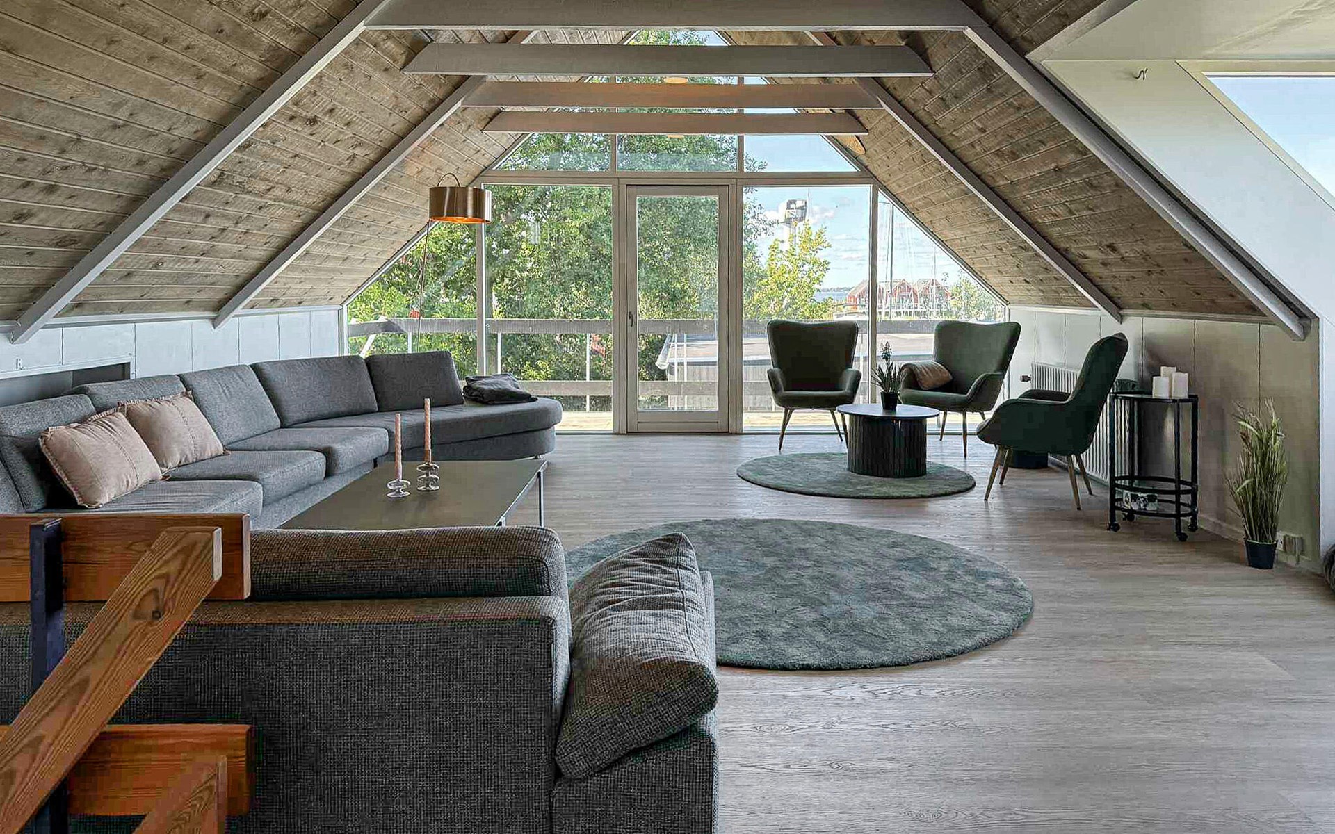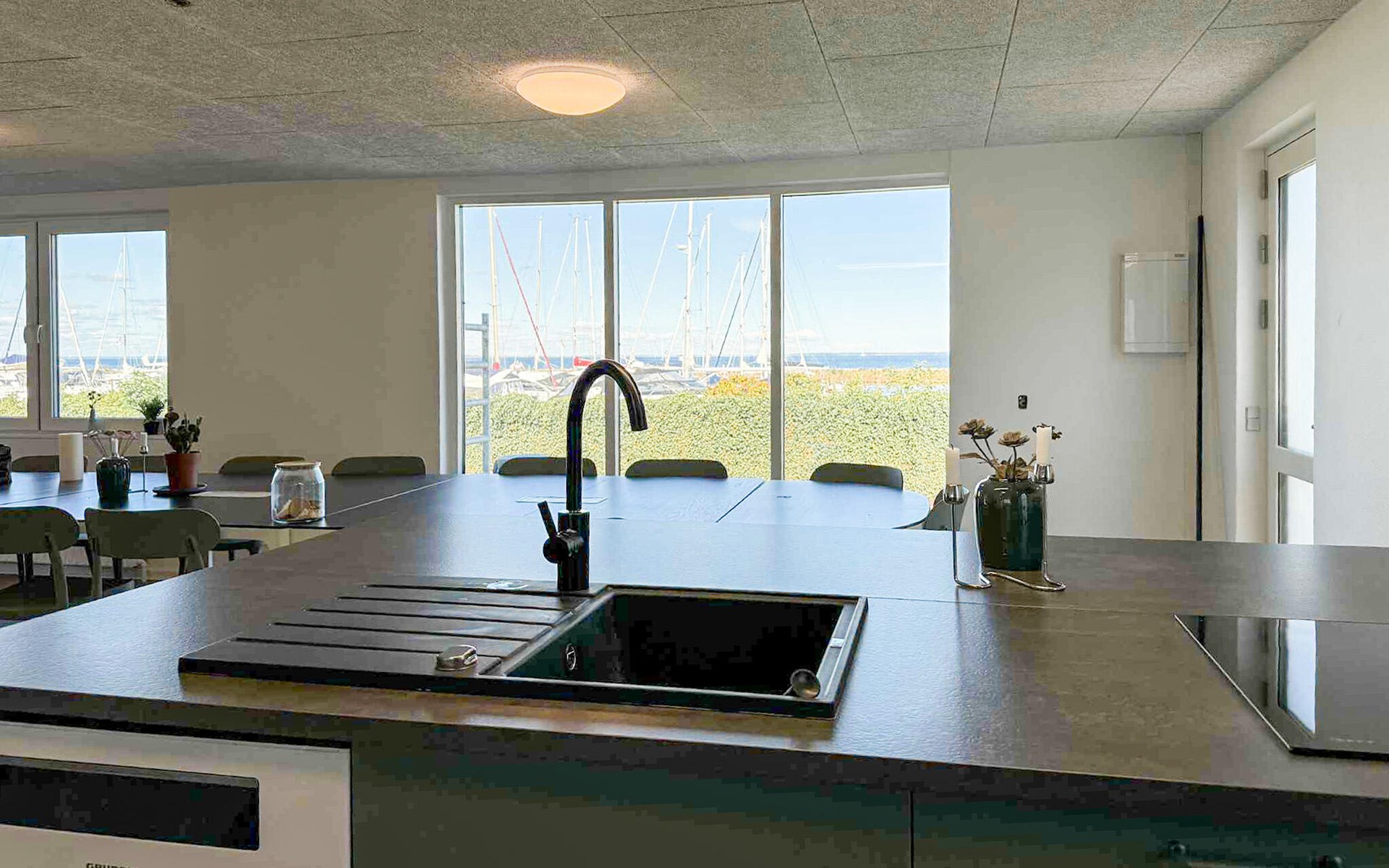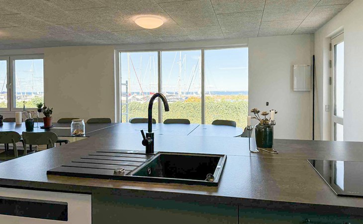 Look forward to a stylish stay in your modern holiday home, which is located directly on the water and offers a very special flair thanks to its location on the harbour. The house is generously designed and offers enough space for a large group of travellers. Enjoy the open, light-flooded living area with large windows and a view of the boats in the harbour. Relax on the soft sofa area, watch a film or read a book in the cosy seating area. The modern kitchen with high-quality appliances offers everything you need for cooking and socialising. Whether it's breakfast with the morning sun or dinner with a view of the sunset, every meal here is a pleasure.