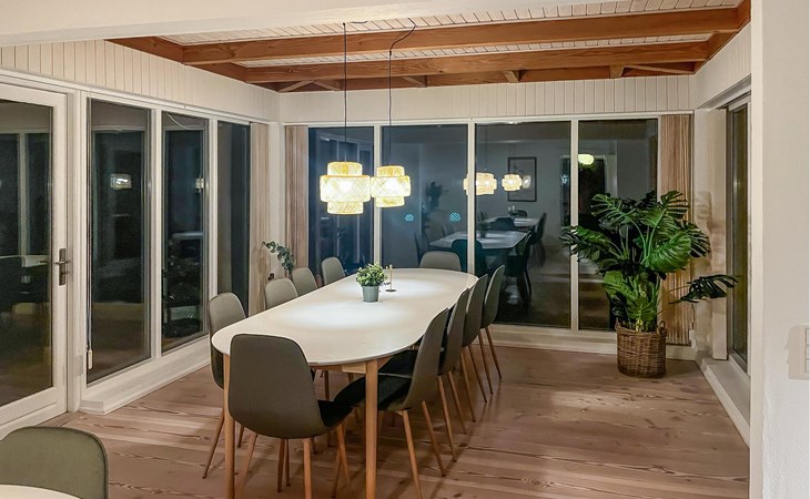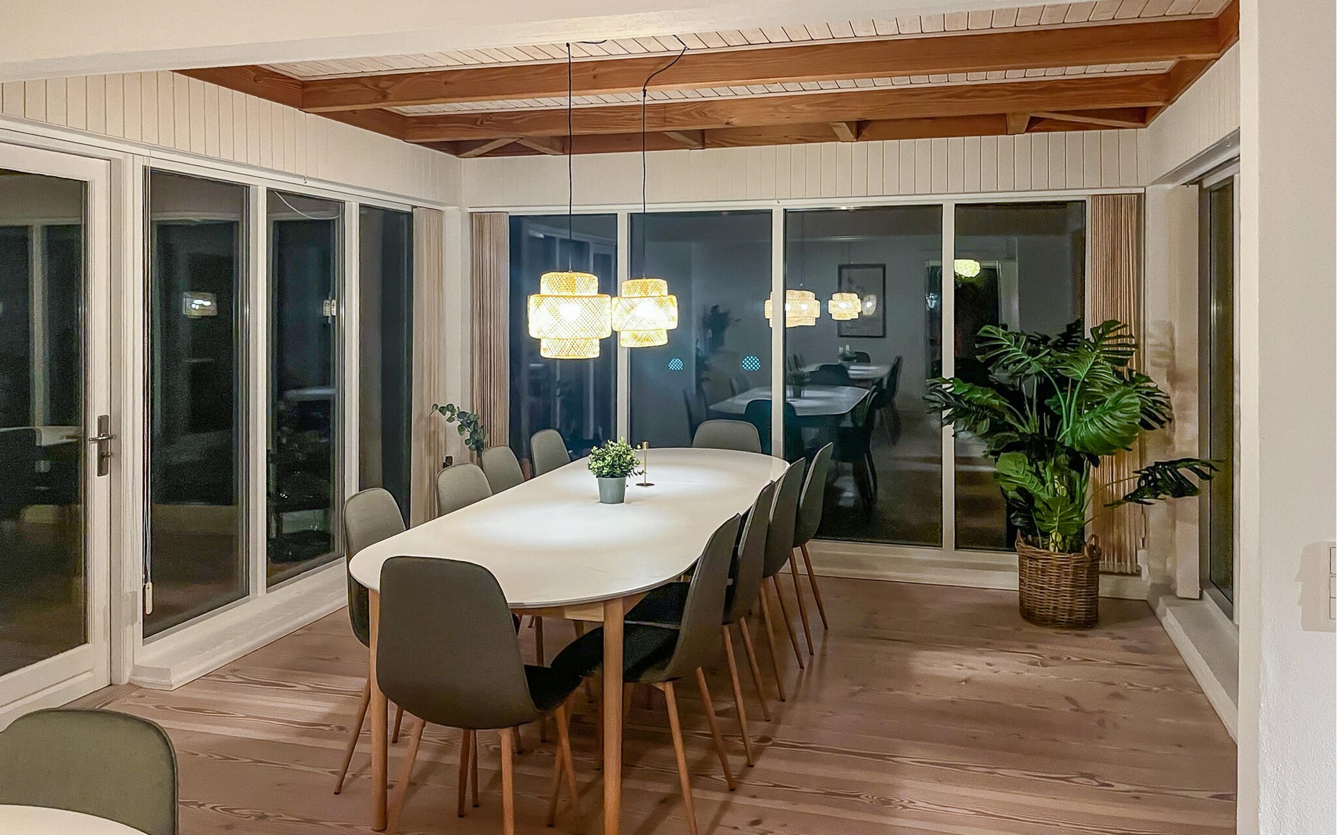 Welcome to this beautiful country estate, which is ideal for several families or a large group of friends as it is divided into two areas. Here you can combine cosiness with fun activities and magical nature experiences. The interior of the house is something special with spacious rooms and lovingly selected furnishing details. Enjoy the breaks of the day in the bright living room or feel the pleasant warmth of the whirlpool for pure relaxation after an active day. The large dining area in the conservatory offers enough space for everyone to enjoy meals together. The furniture combines rustic elements with modern comfort to create the perfect atmosphere for relaxing.