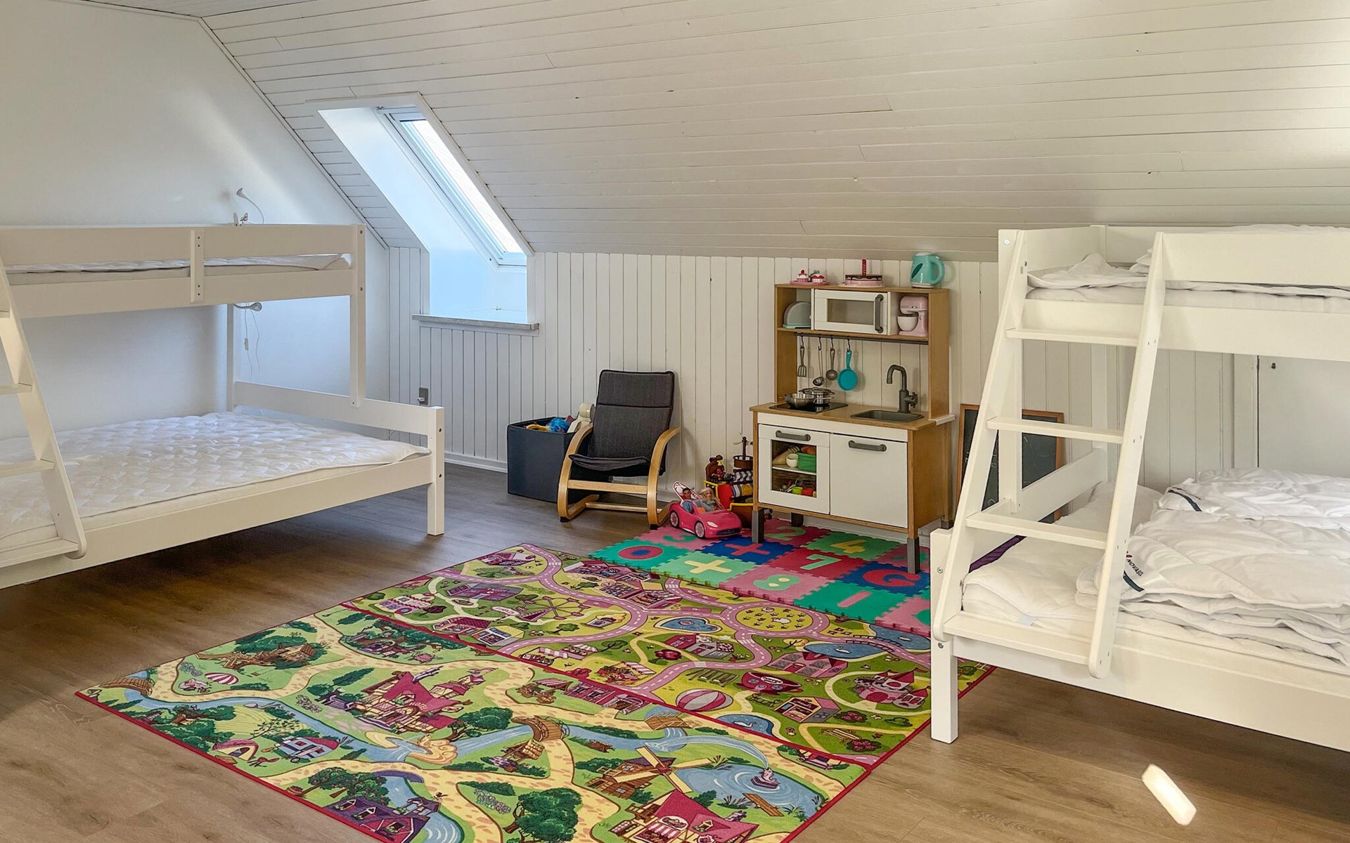 The spacious outdoor area leaves nothing to be desired. Children can let off steam on the play tower, the swings, in the sandpit or on the trampoline, while the pond on the property is the highlight of the garden. In the evening, the whole group gathers around the campfire site and enjoys cosy hours in the open air. The well-tended garden and spacious terrace provide the ideal setting for outdoor living.