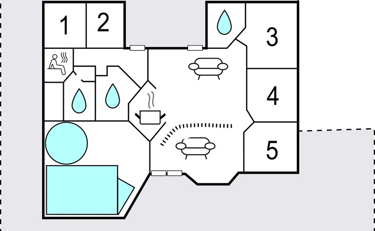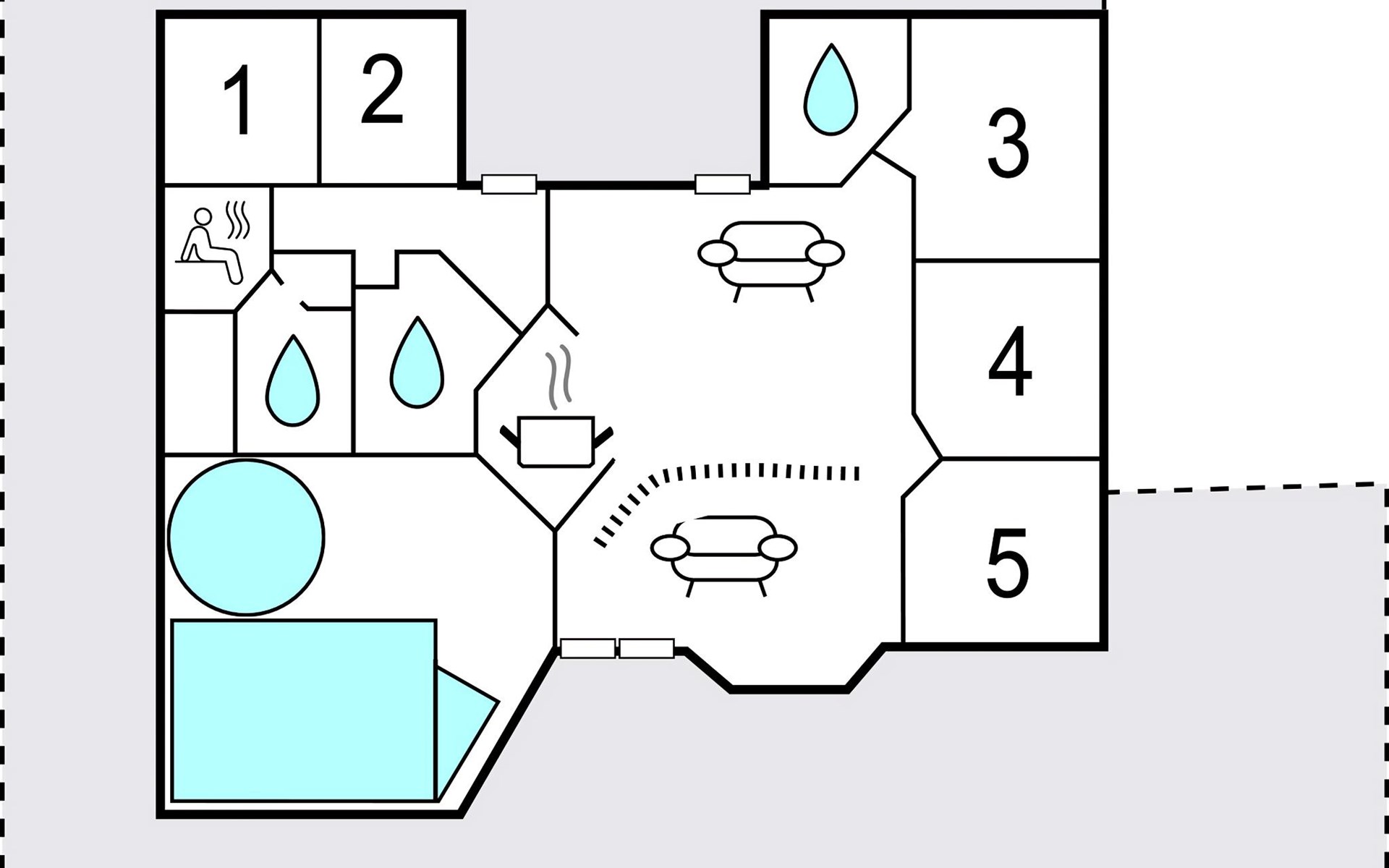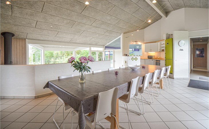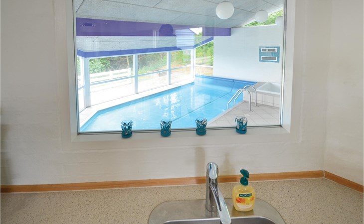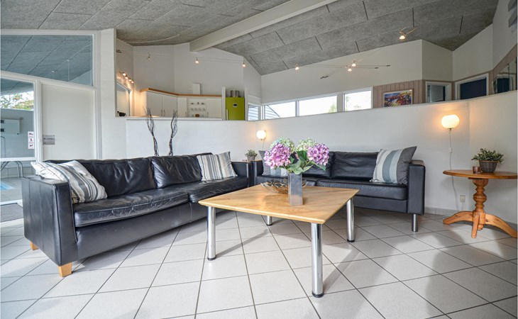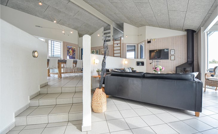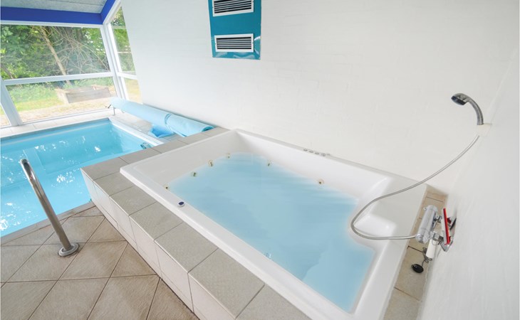 Vacations for one, two or three families. This large, exciting house is bright and well furnished and has five bedrooms with good mattresses, an open sleeping loft and three bathrooms. It is situated high on a sloping natural plot with a beautiful view over the area and the sea. The house has plenty of space and activities for guests of all ages, such as a swimming pool, children's pool, jacuzzi and sauna. From the living room you can directly access the large terrace. This beautiful vacation home is located in a very popular vacation home area not far from the coast and the beach with a merchant and several dining options.