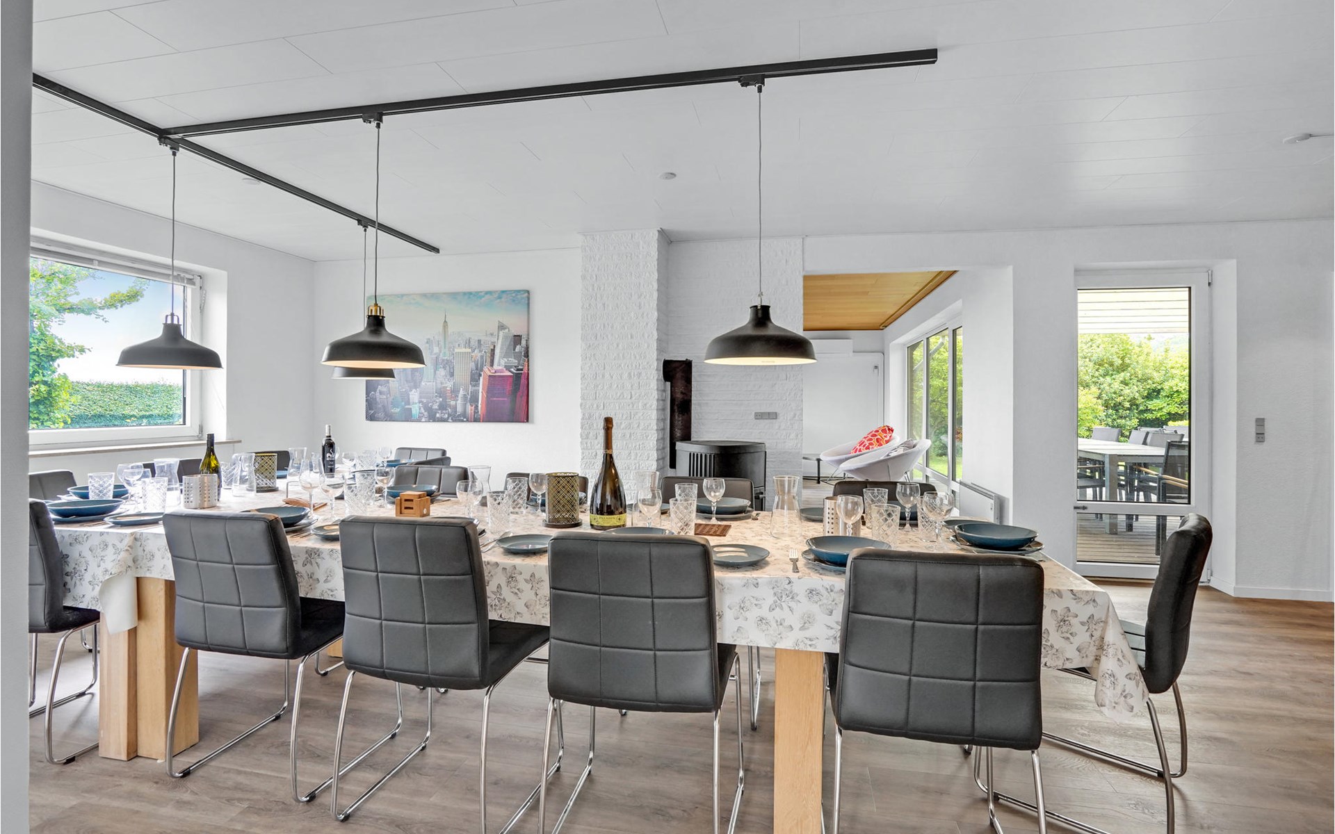 This wonderful stone house offers you a homely and simple atmosphere with modern design and hearty decorations. The neat style with the harmonious inventory offers you cozy corners for relaxing, as well as spending time together with your family. In this house you will find some retreats where you can settle down and find yourself in daylit rooms with crackling fireplace and your novel. Outside, a partially covered terrace with garden furniture and barbecue awaits you, where you can enjoy relaxing hours outdoors, have breakfast together and barbecue towards the evening. Also take advantage of the activity possibilities that this house has to offer, including a hot tub, a pool table and a volleyball net.