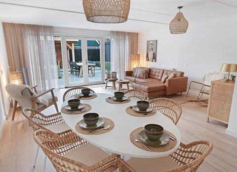 Experience an unforgettable stay in the luxurious 6-person Lodge, perfectly situated in the heart of the stunning Utrechtse Heuvelrug. This spacious holiday home offers everything you need for a relaxing getaway with family or friends. The warm and cozy decor ensures you feel right at home, while the large sliding doors fill the space with natural light and invite you to enjoy the outdoors.