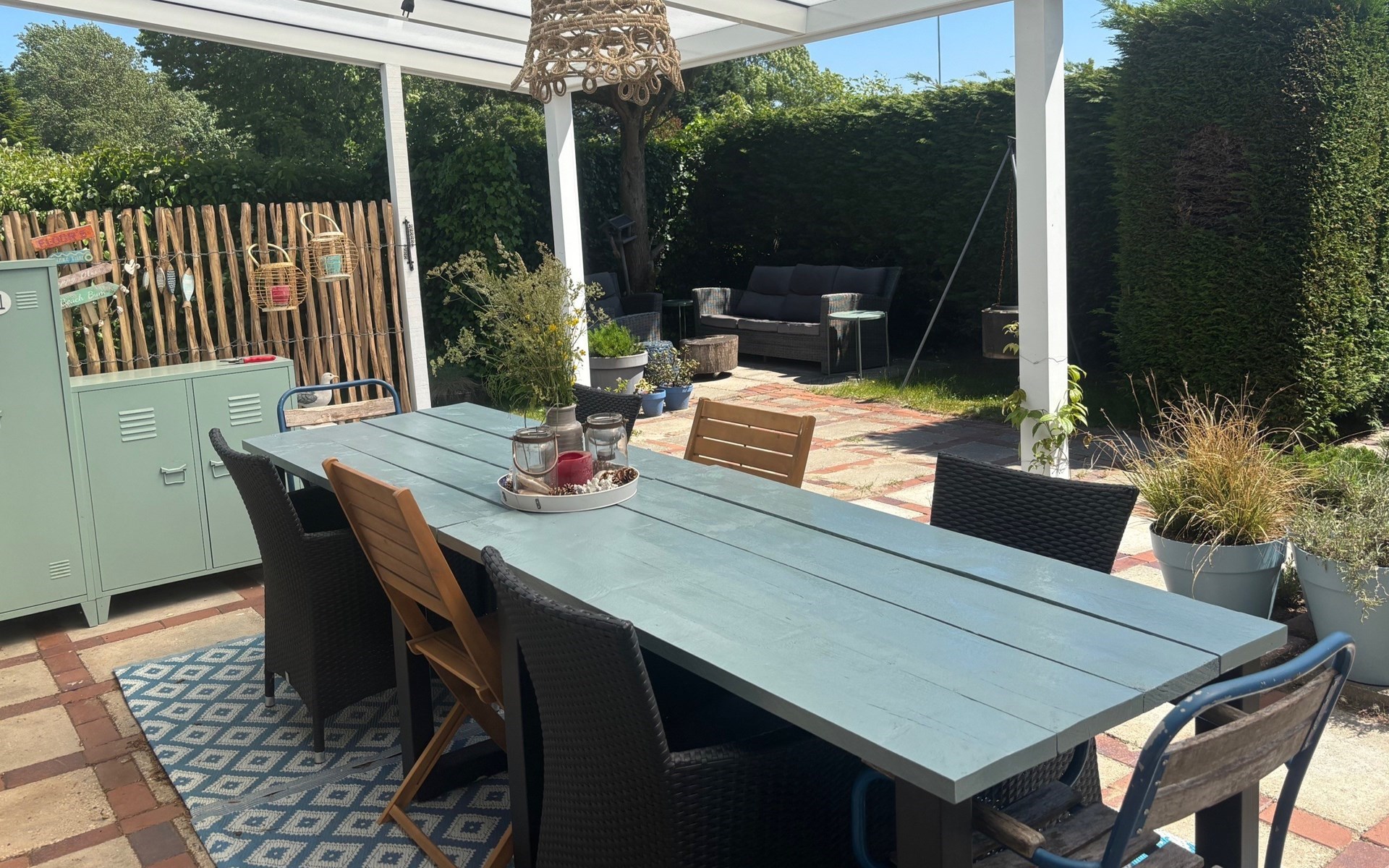 The garden is south-facing and offers various terraces where you can enjoy the sun. There's a large veranda attached to the house where you can relax in comfort during cooler summer evenings. Here, you'll feel like you're alone on the world because the garden is very sheltered and offers a lot of privacy.