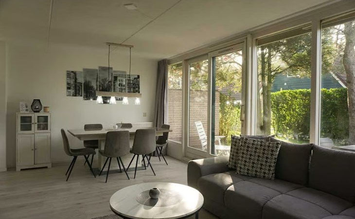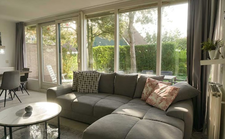 This bungalow exudes a relaxed holiday atmosphere and is only a 15-minute bike ride from the beach with an e-bike. Enjoy the space and comfort of this 6-person holiday bungalow, with a beautiful view from the terrace thanks to the large windows.