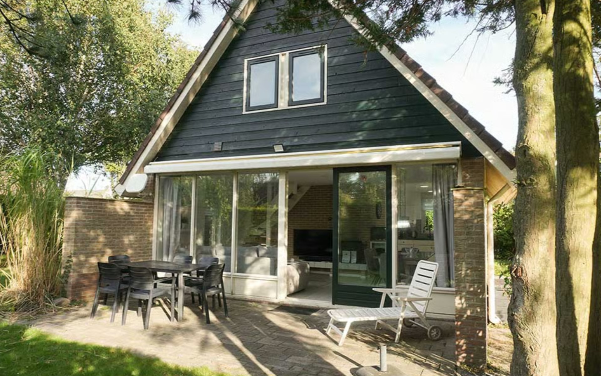 There are three bedrooms: the master bedroom has a double box-spring bed of 180 x 200 cm, and the two other bedrooms both have a single bed with a pull-out bed. The terrace on the southwest has a large awning, perfect for enjoying the outdoors. The bungalow has a bathroom with shower and two toilets, which makes your stay extra comfortable.