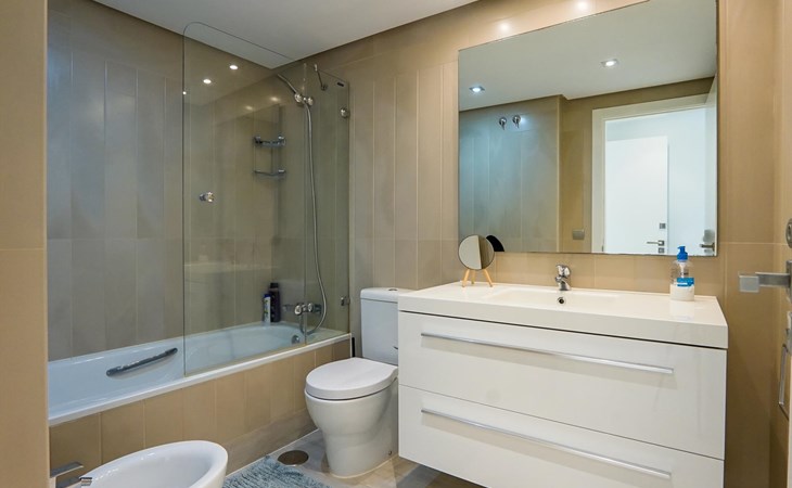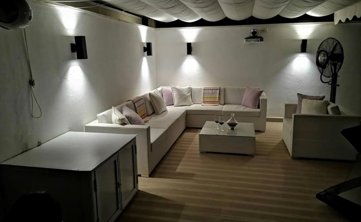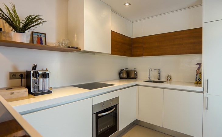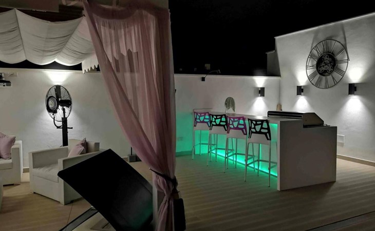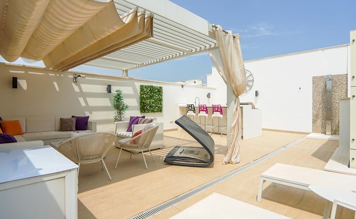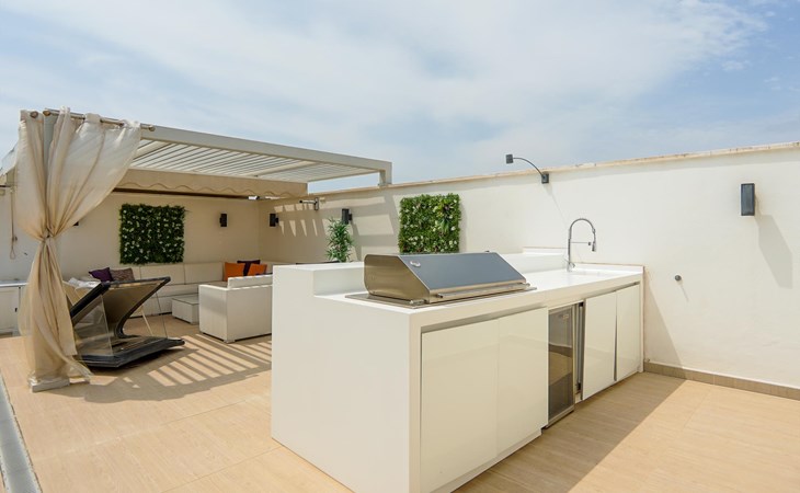 The apartment has 3 bedrooms and 2 bathrooms. The bathrooms are en-suite and the beds are extremely comfortable with luxury bedding. The covered terrace downstairs gives a nice city and mountain view. And the roof terrace is the diamond of this property. A luxury outdoor kitchen, lounge area with sunbeds and outdoor shower are its greatest assets.