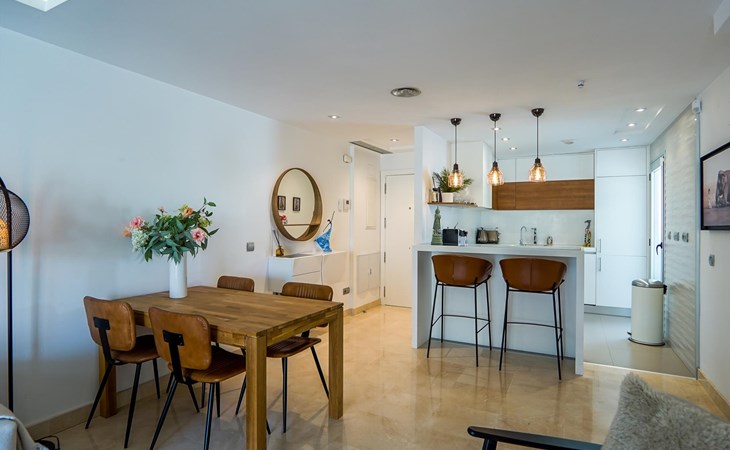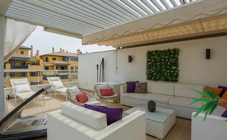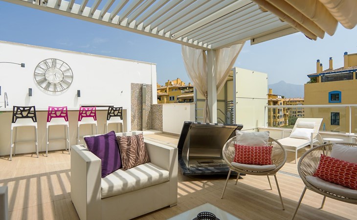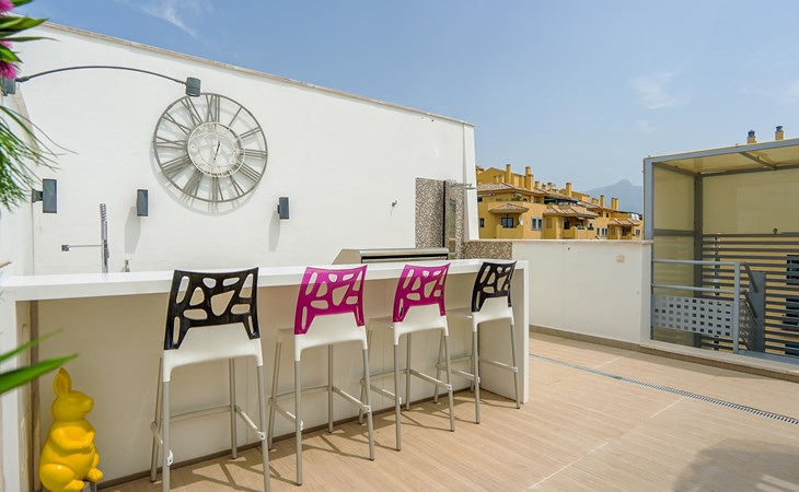 Modern and luxury penthouse in the heart of authentic San Pedro Alcántara. The apartment is situated in walking distance of the beach and the lively city centre. And you can even walk via the boulevard to Puerto Banús (45-50 min) So, the perfect location to enjoy a sunny holiday in Andalucia.