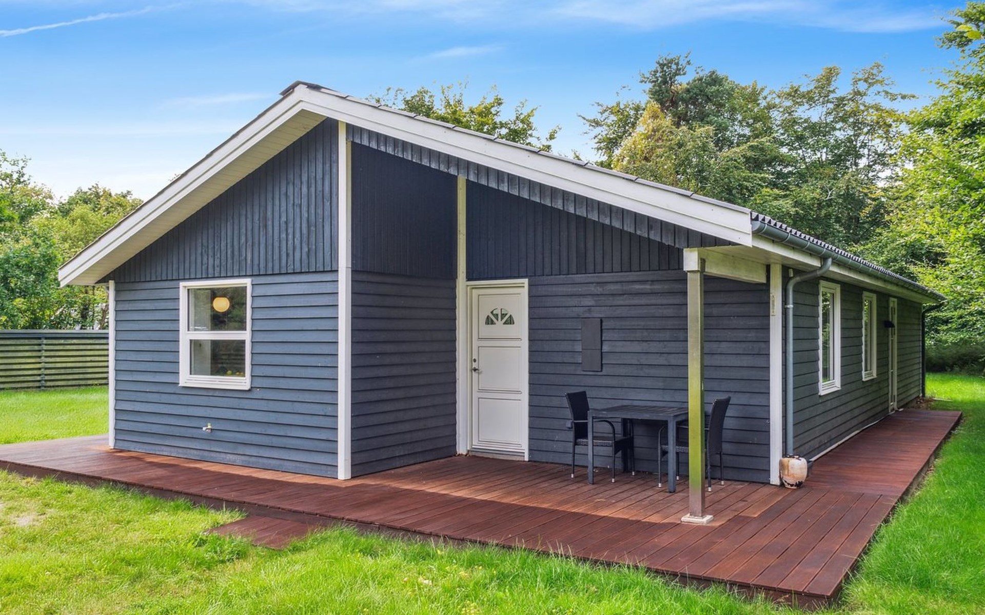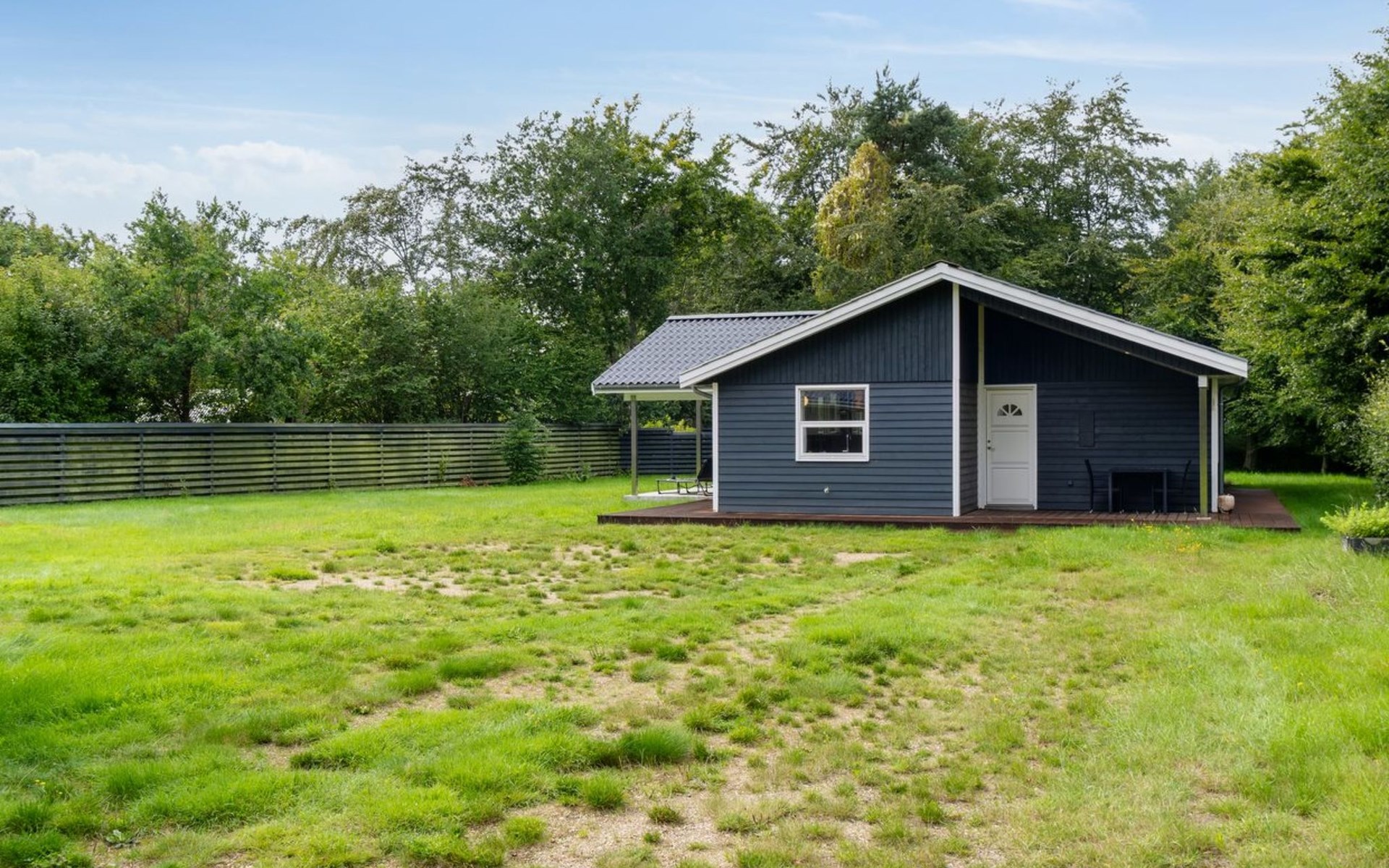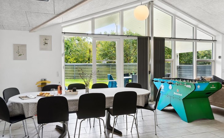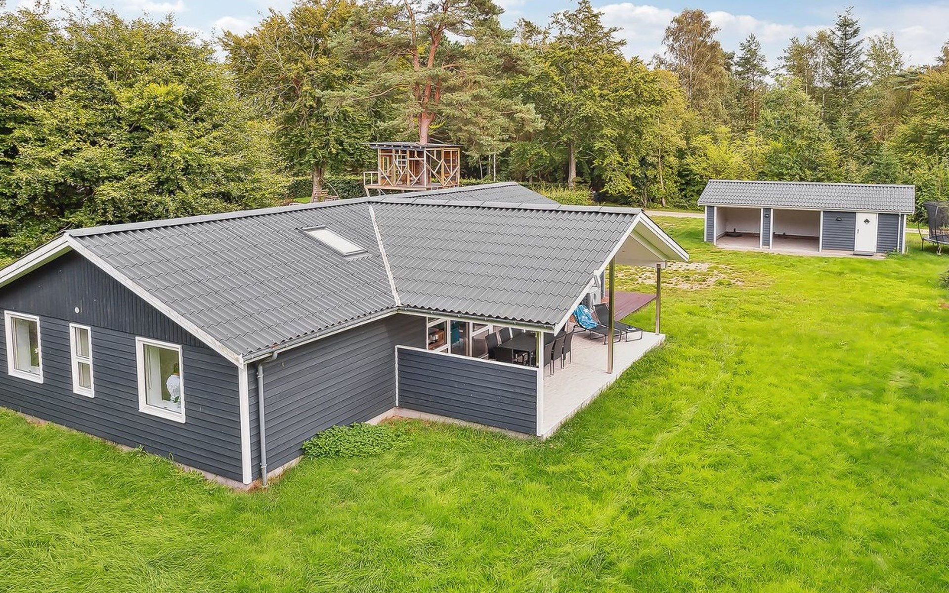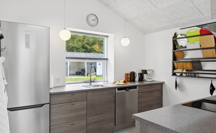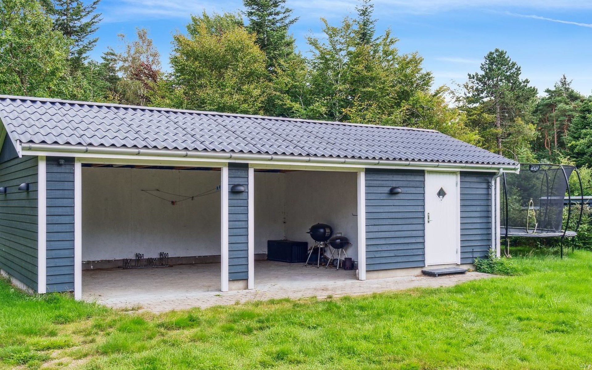 Single-family house, built in 2020. 1.3 km from the sea. Private: property 1'637 m2, well-kept garden. Terrace (15 m2), barbecue. In the house: sauna, trampoline, washing machine. Parking at the house. Carport. Grocery 600 m. Golf course 8.9 km. The owner does not accept any youth groups.