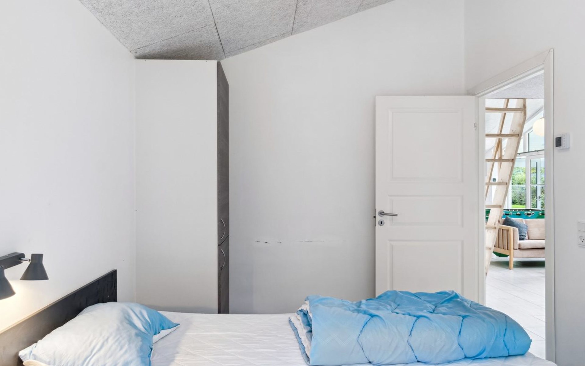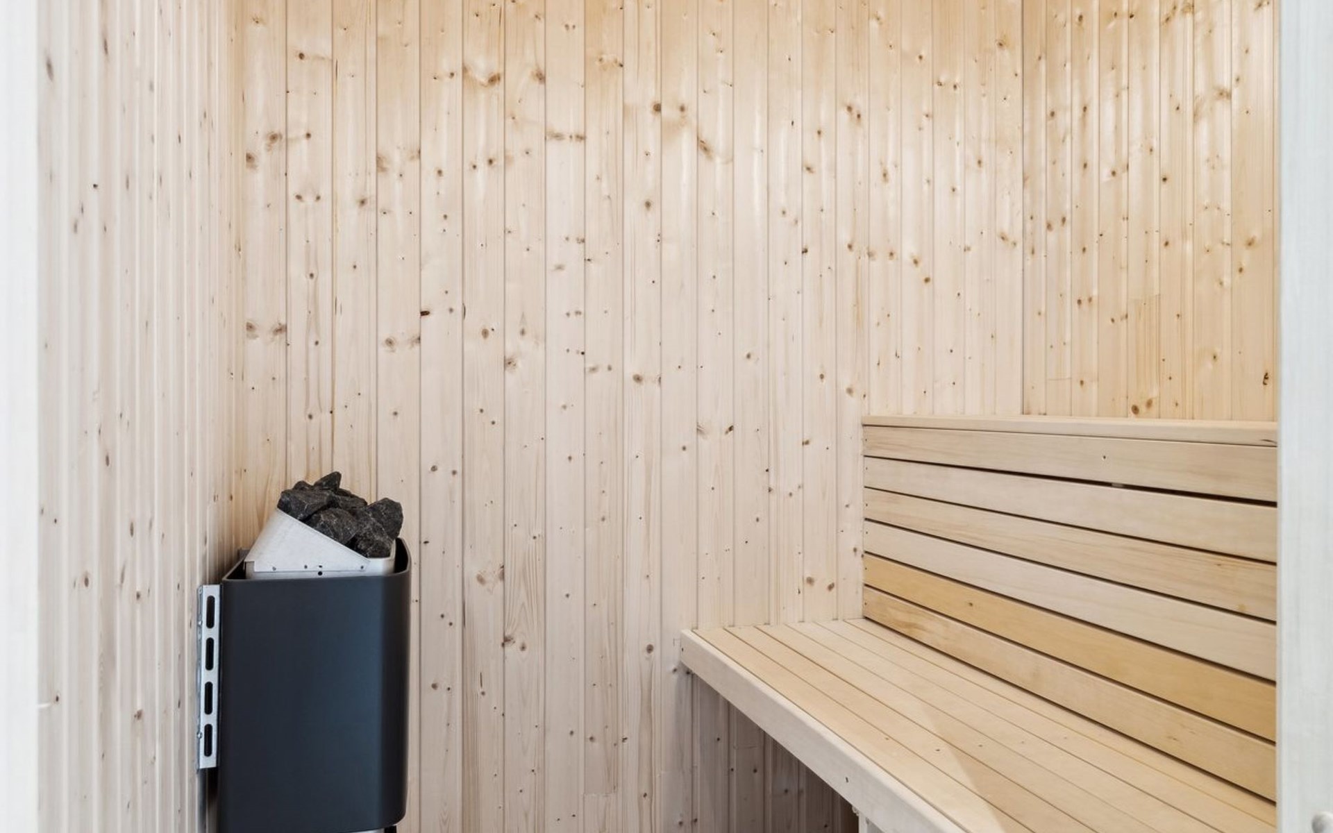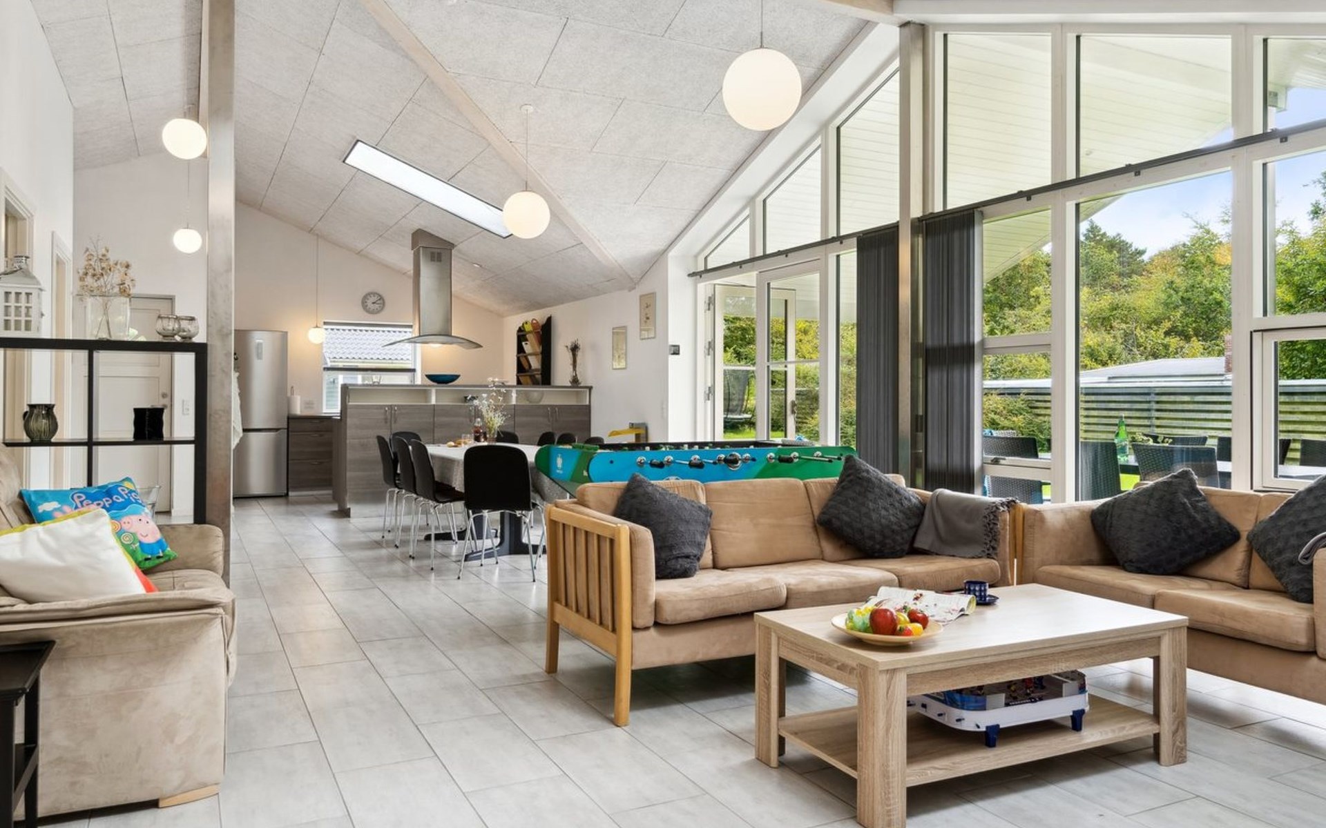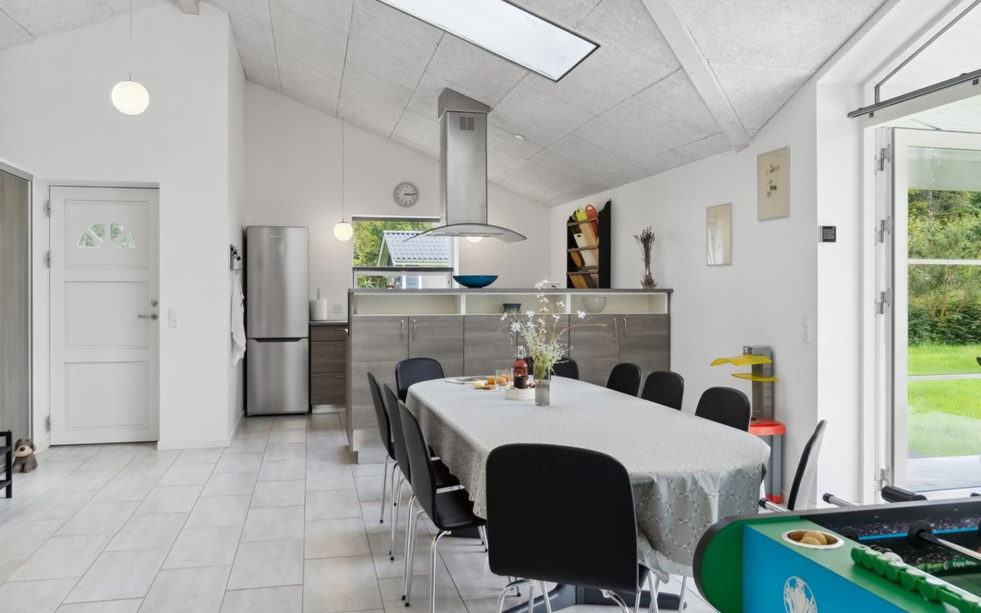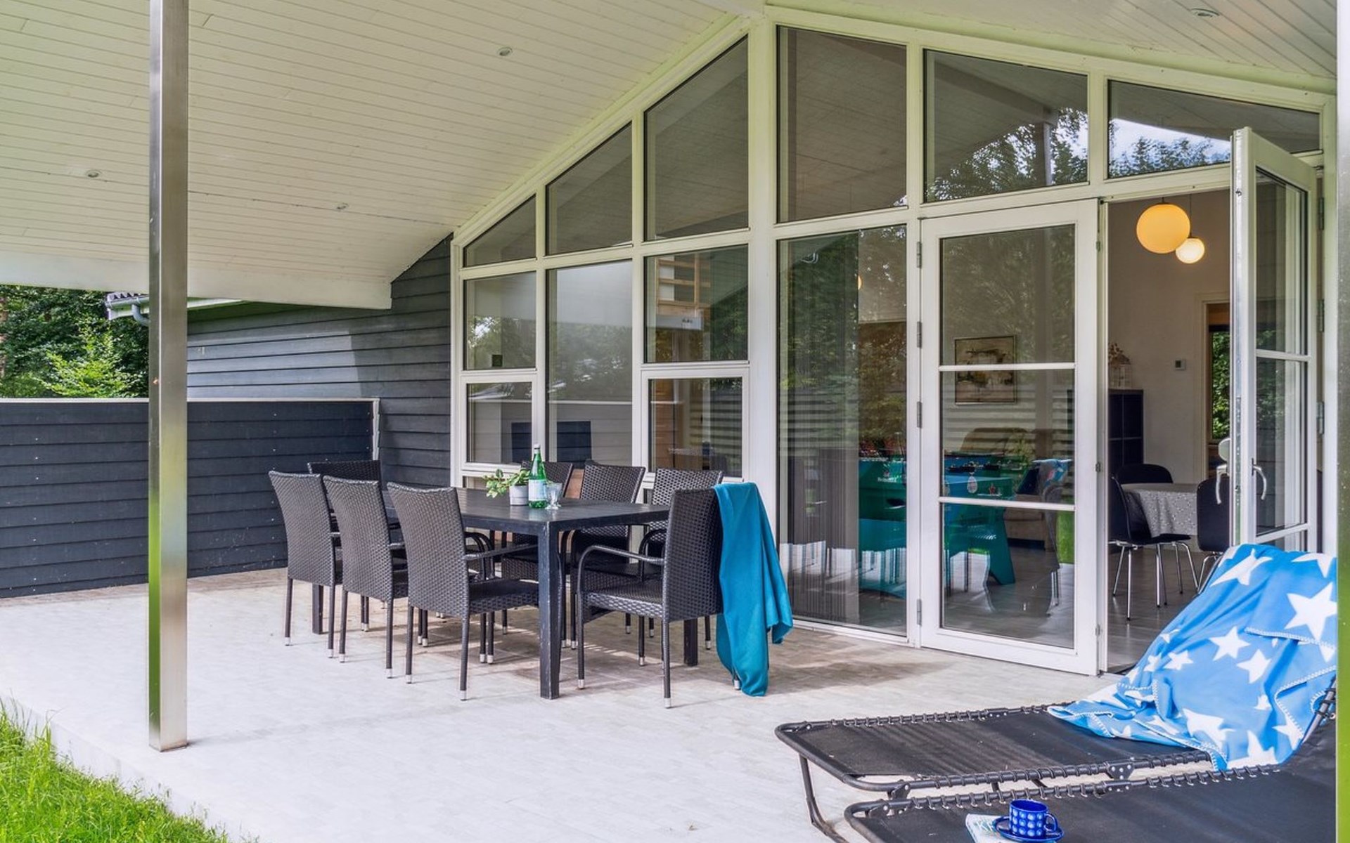Single-family house, built in 2020. 1.3 km from the sea. Private: property 1'637 m2, well-kept garden. Terrace (15 m2), barbecue. In the house: sauna, trampoline, washing machine. Parking at the house. Carport. Grocery 600 m. Golf course 8.9 km. The owner does not accept any youth groups.