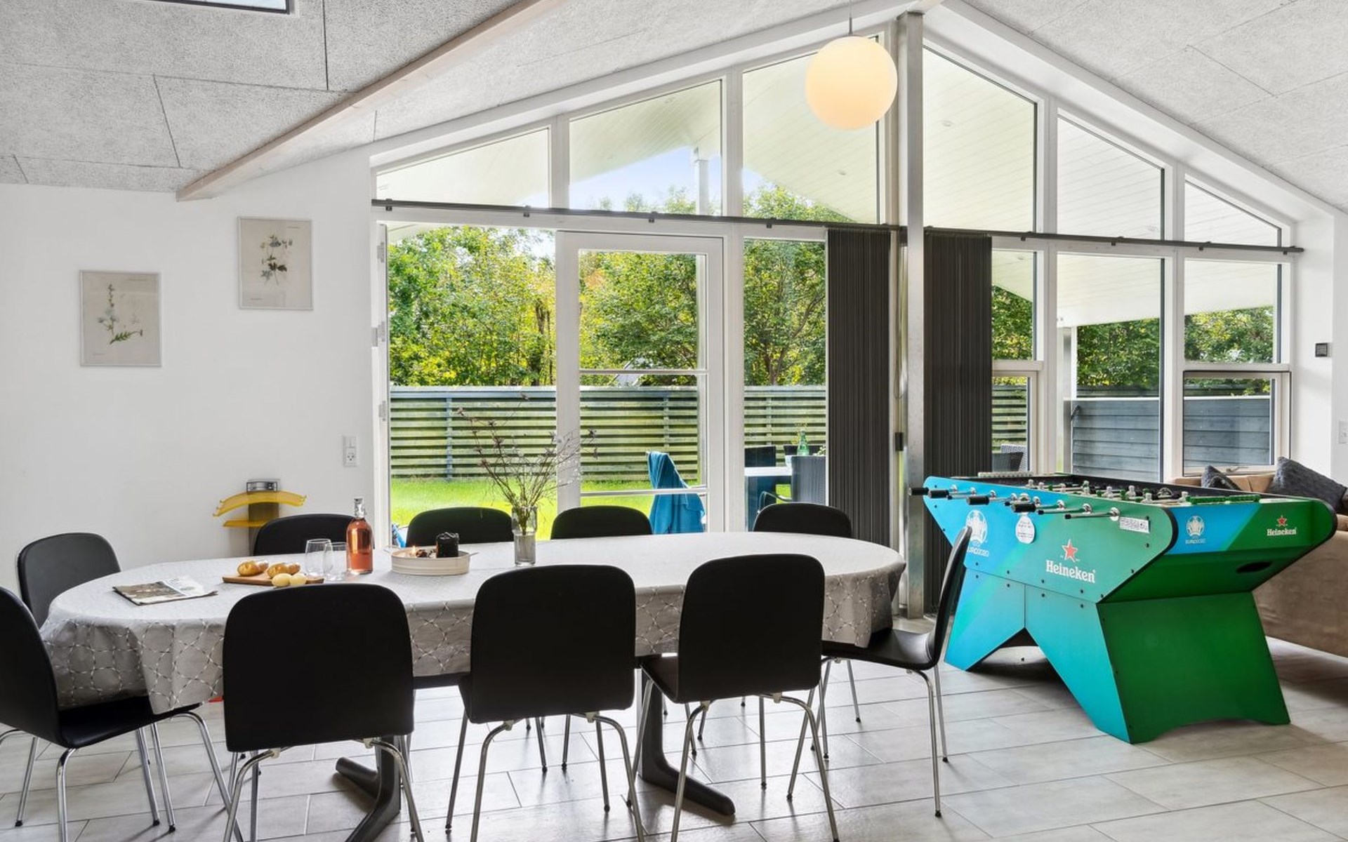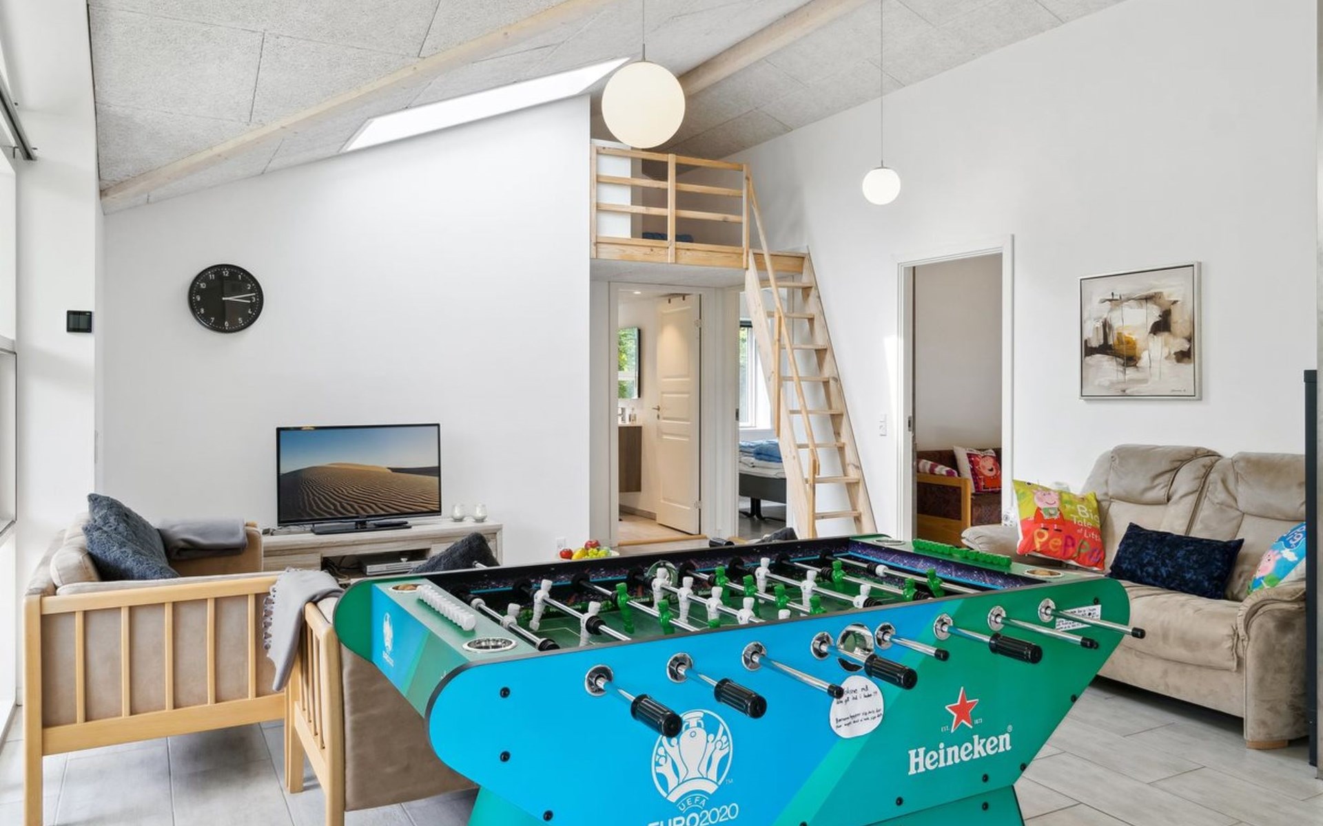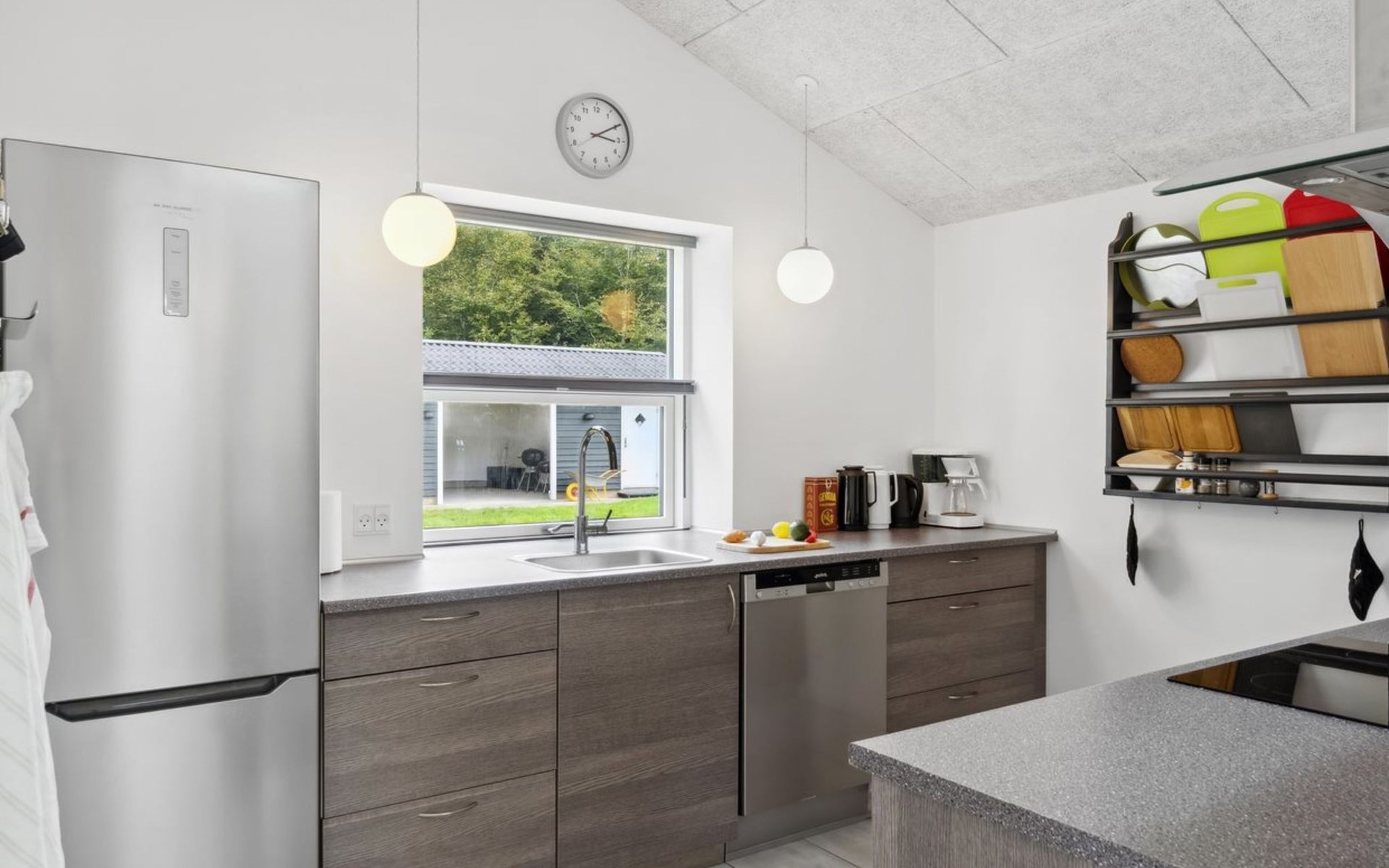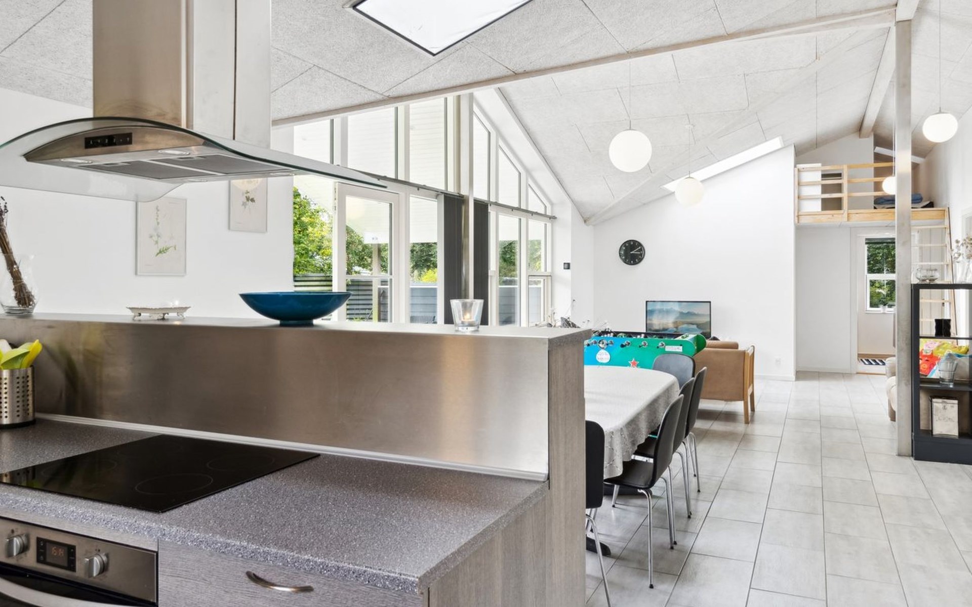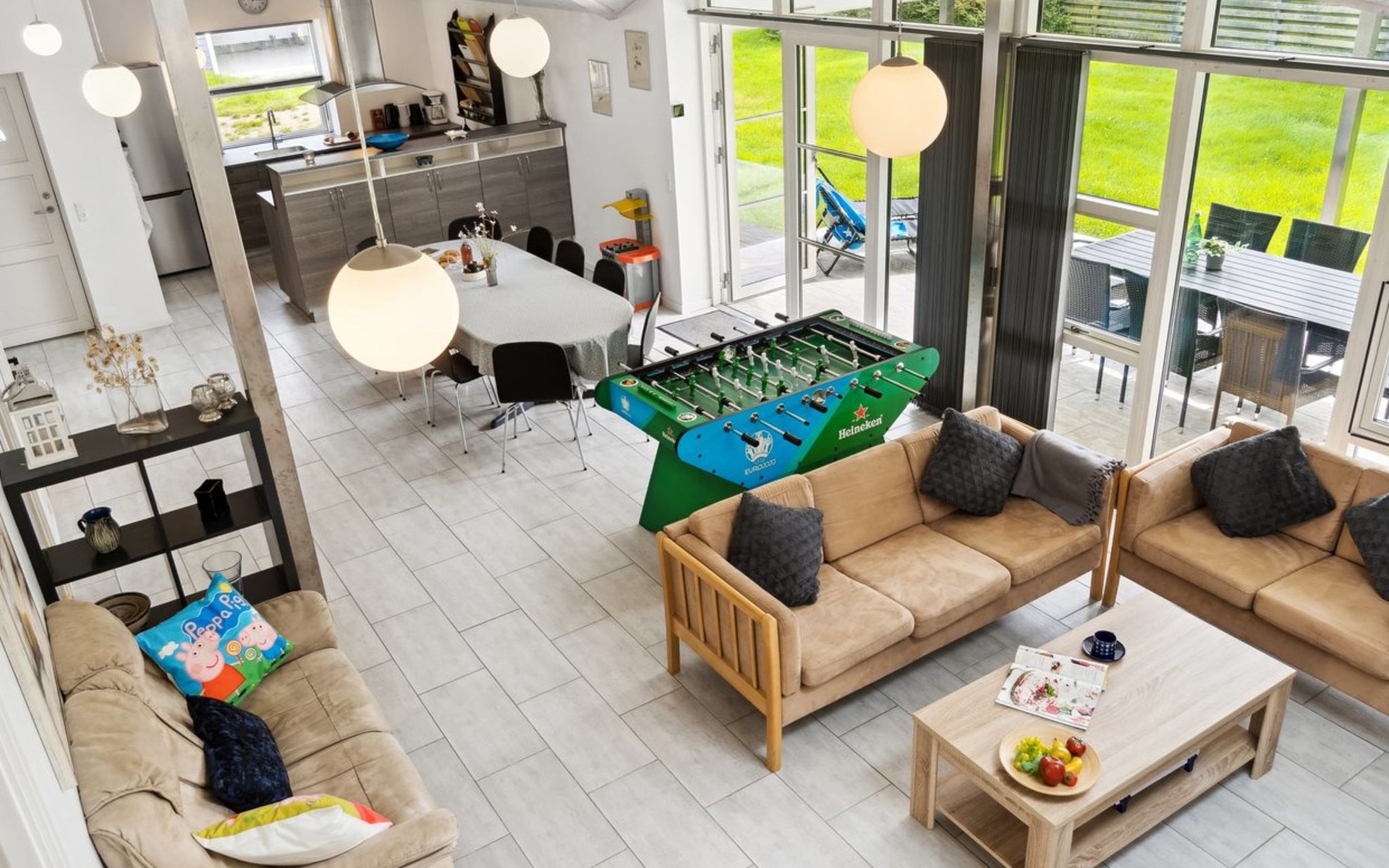Single-family house, built in 2020. 1.3 km from the sea. Private: property 1'637 m2, well-kept garden. Terrace (15 m2), barbecue. In the house: sauna, trampoline, washing machine. Parking at the house. Carport. Grocery 600 m. Golf course 8.9 km. The owner does not accept any youth groups.