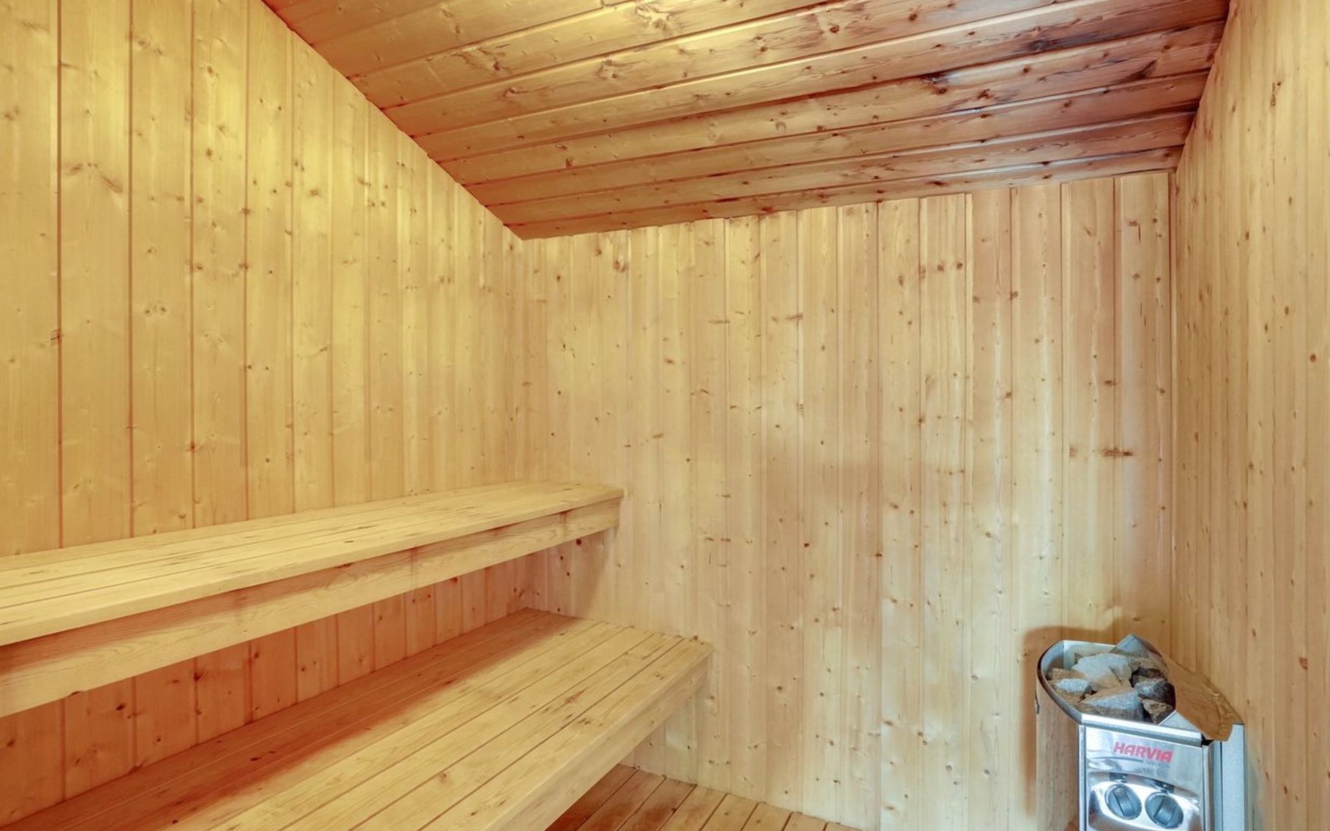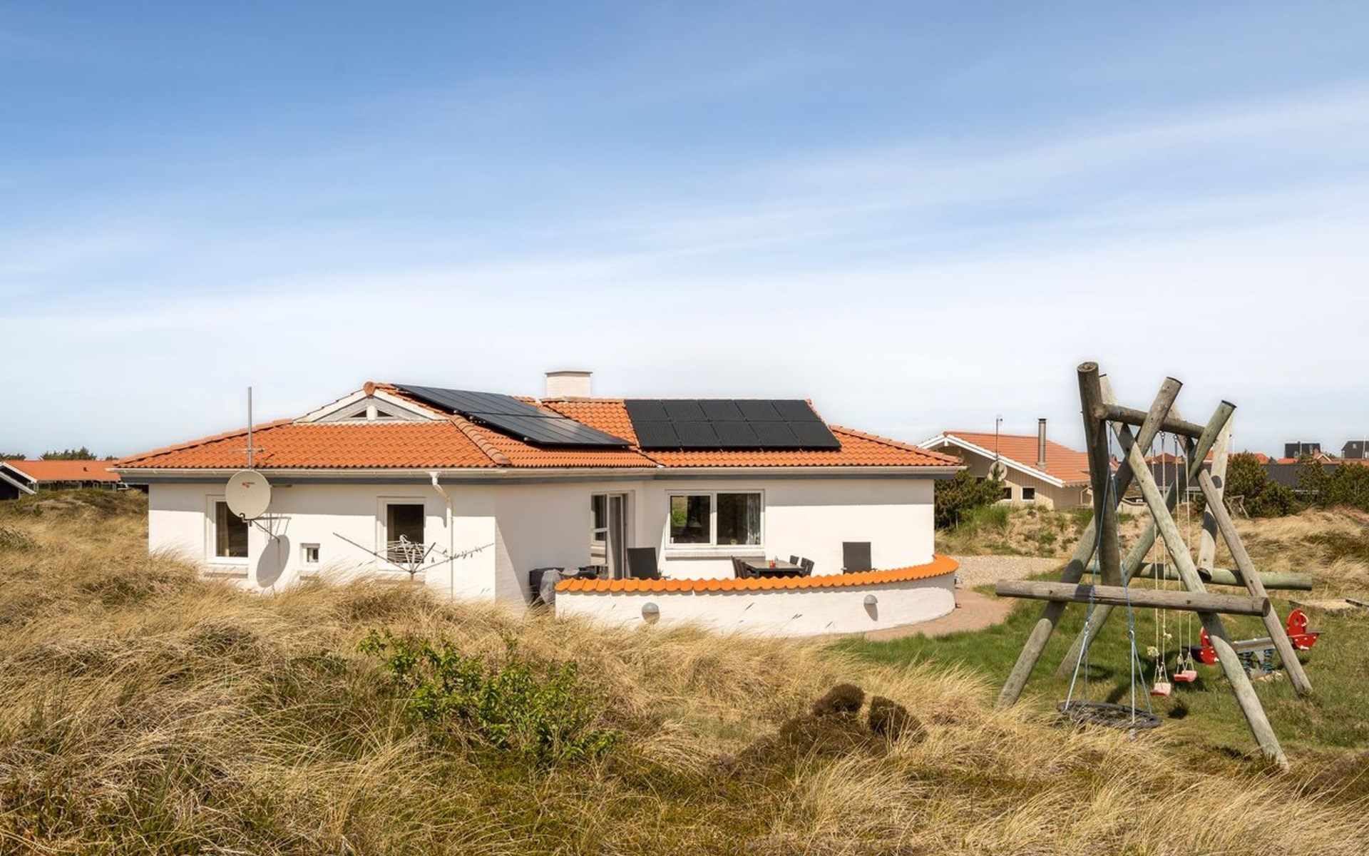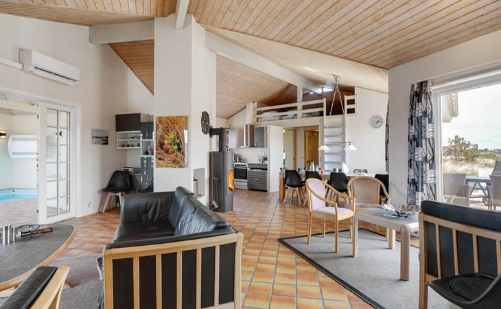 Single-family house, built in 1991. 600 m from the sea. Private: natural state property 2'000 m2, indoor pool (3 x 6 m, 1'9.8 m2, depth 120 - 120 cm). Terrace (100 m2), children's playground (swing). In the house: sauna, washing machine, tumble dryer. Parking at the house. Grocery 800 m. The owner does not accept any youth groups.