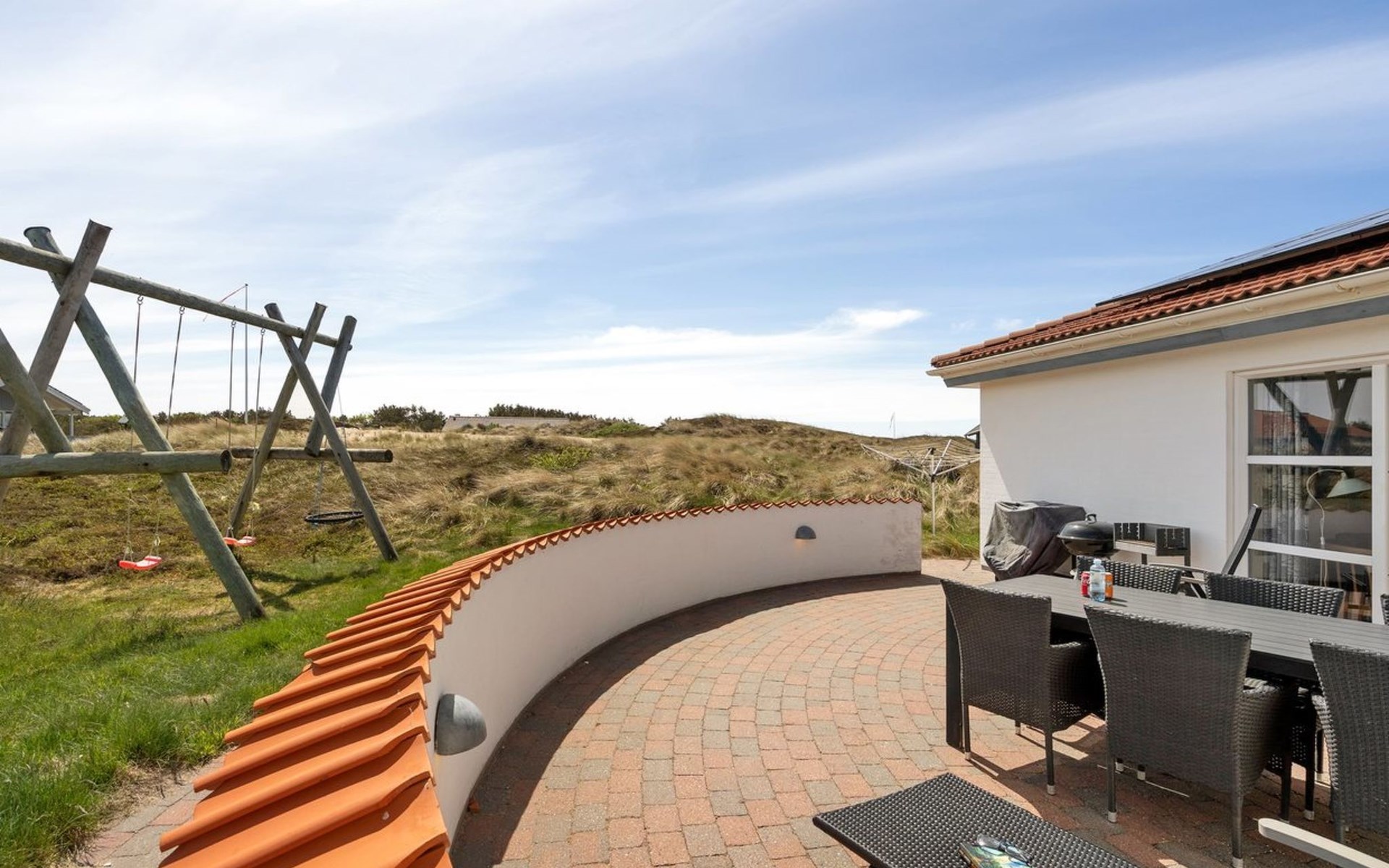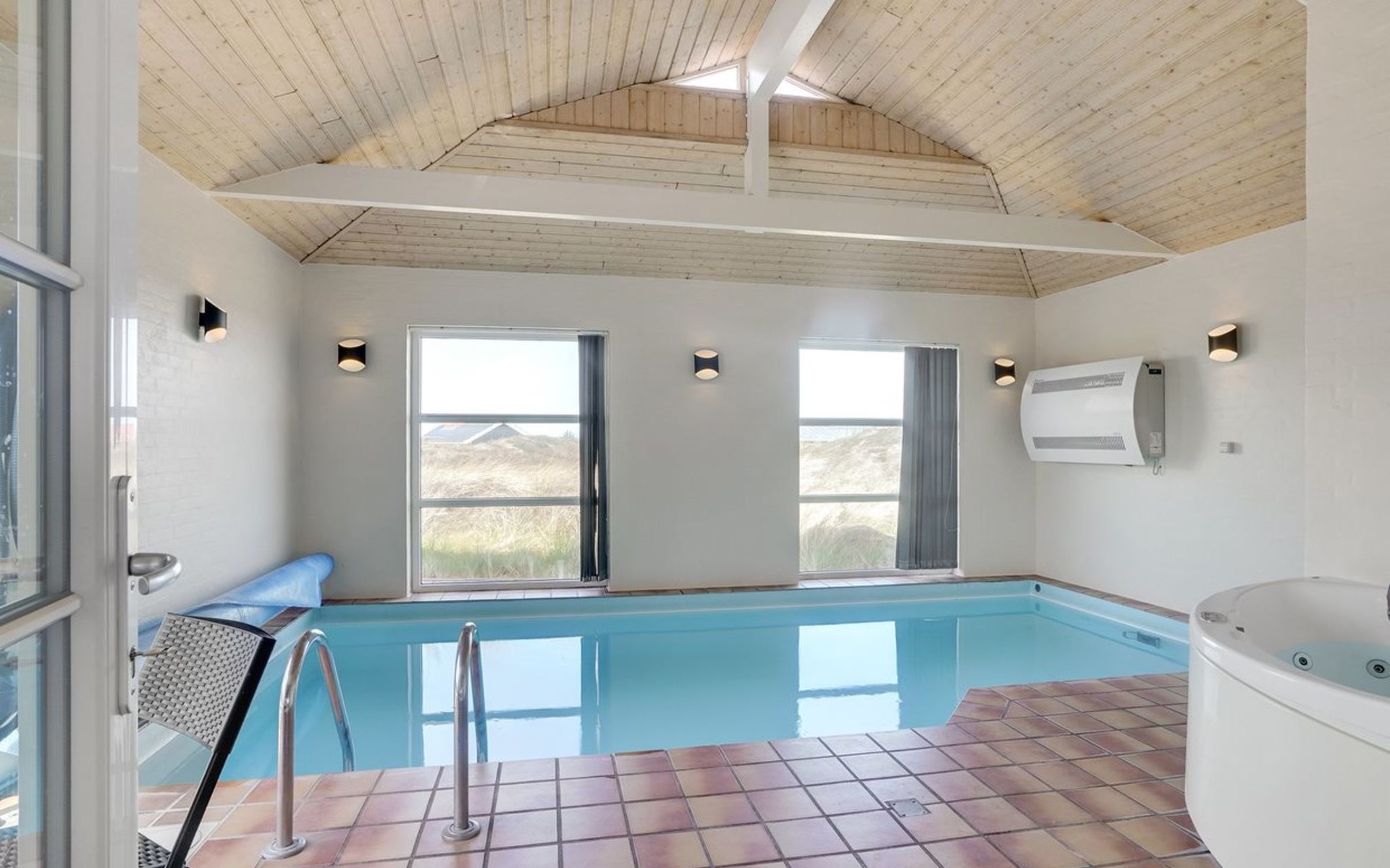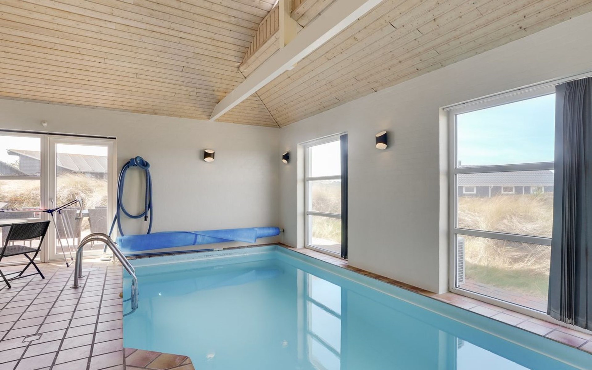 Single-family house, built in 1991. 600 m from the sea. Private: natural state property 2'000 m2, indoor pool (3 x 6 m, 1'9.8 m2, depth 120 - 120 cm). Terrace (100 m2), children's playground (swing). In the house: sauna, washing machine, tumble dryer. Parking at the house. Grocery 800 m. The owner does not accept any youth groups.