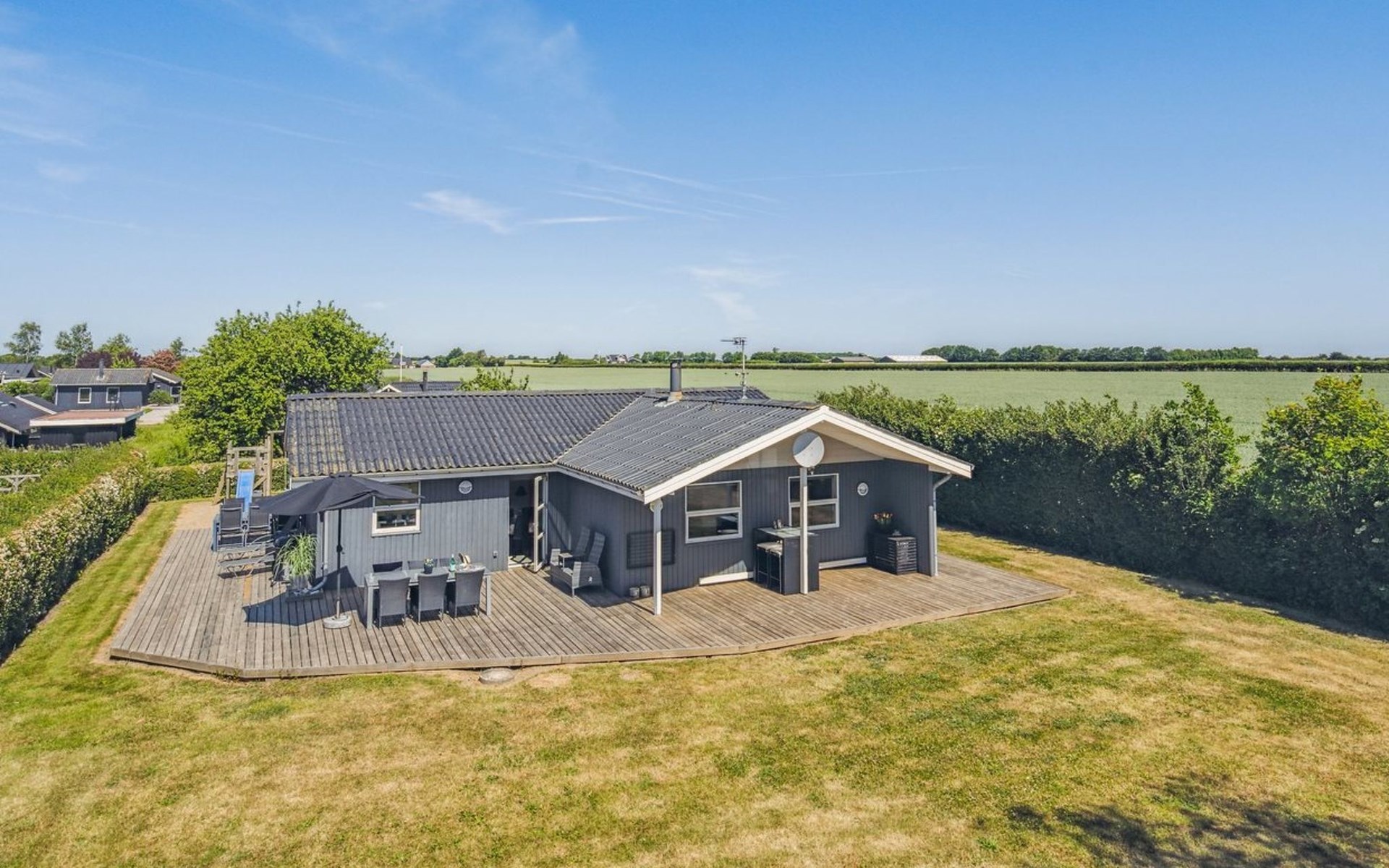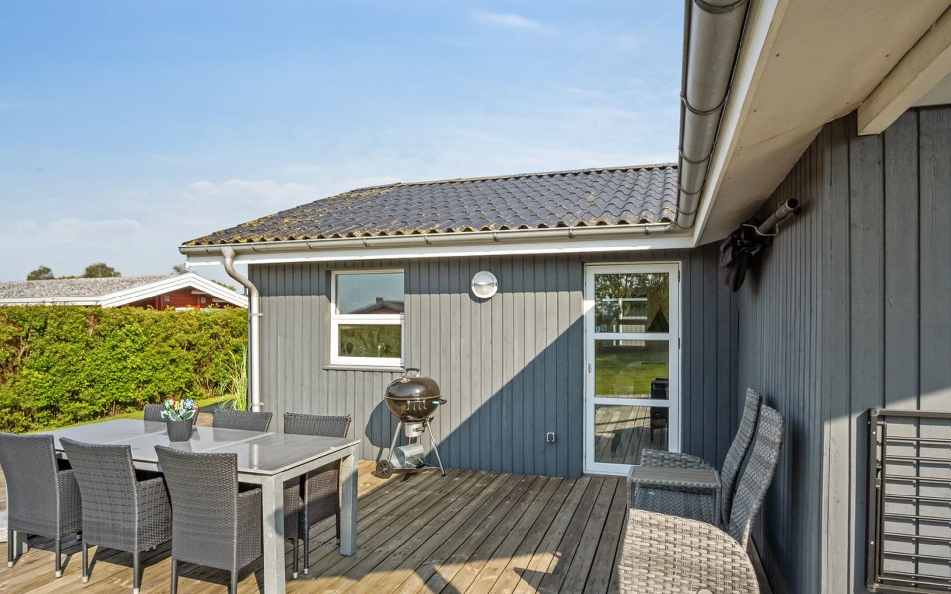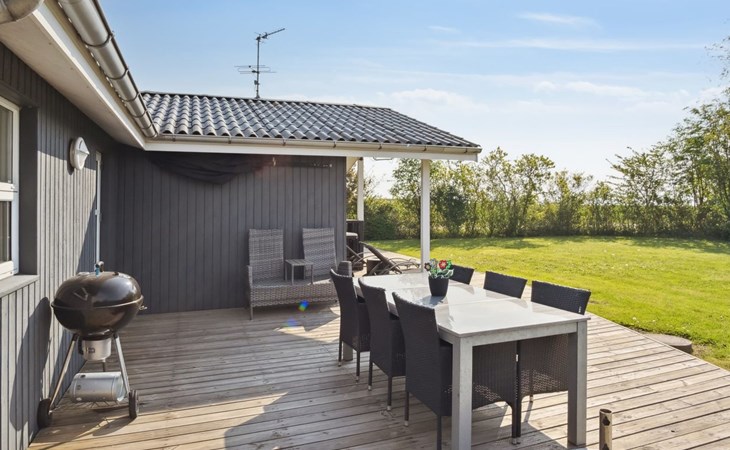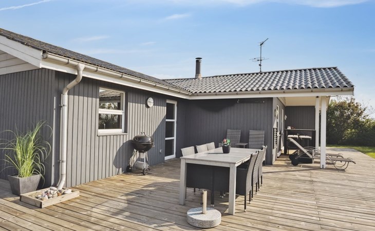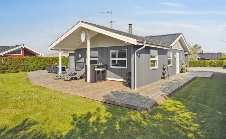 Single-family house, built in 1976. 200 m from the sea. Private: property 800 m2, well-kept garden. Barbecue. In the house: sauna, washing machine, tumble dryer. Parking at the house. Grocery 6 km. Golf course 12 km. The owner does not accept any youth groups.