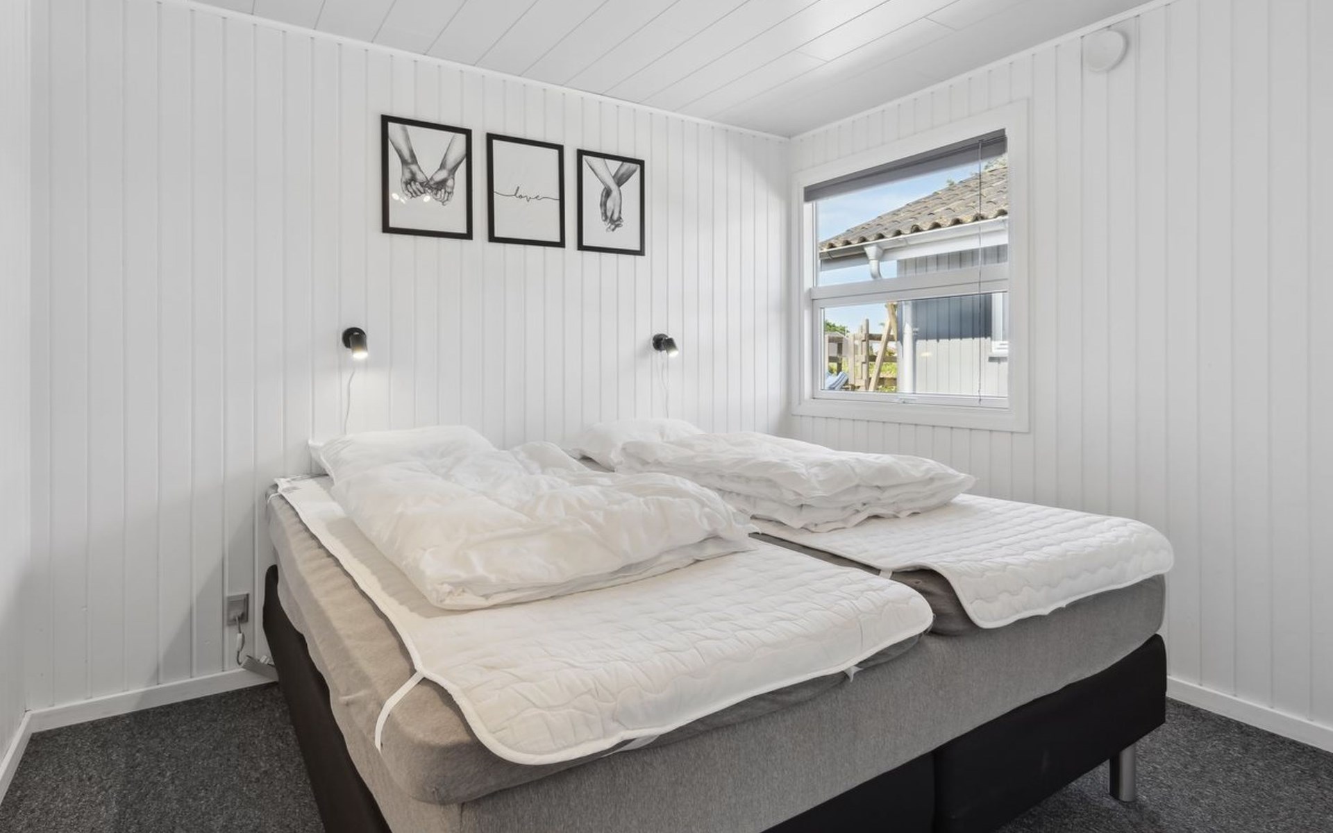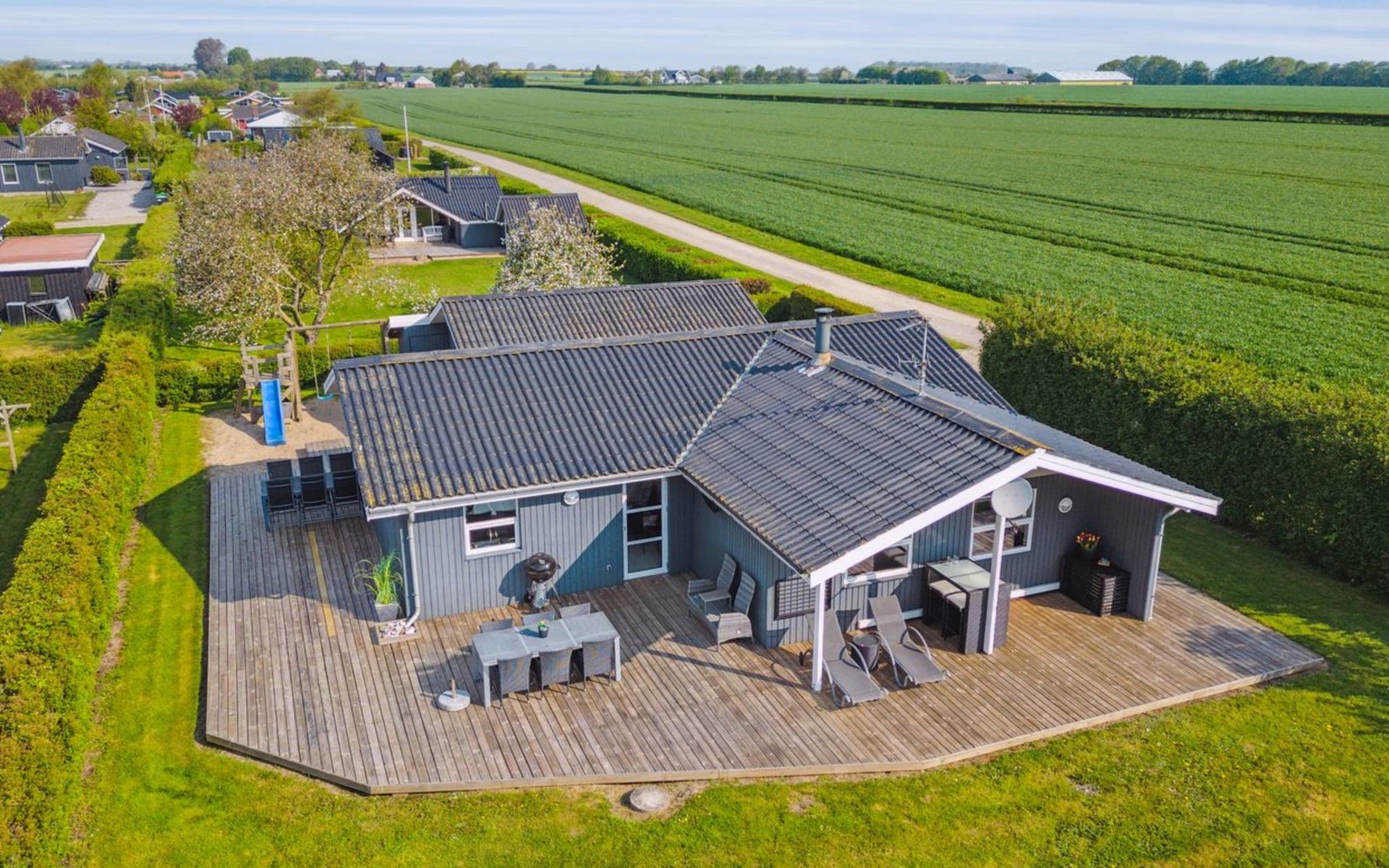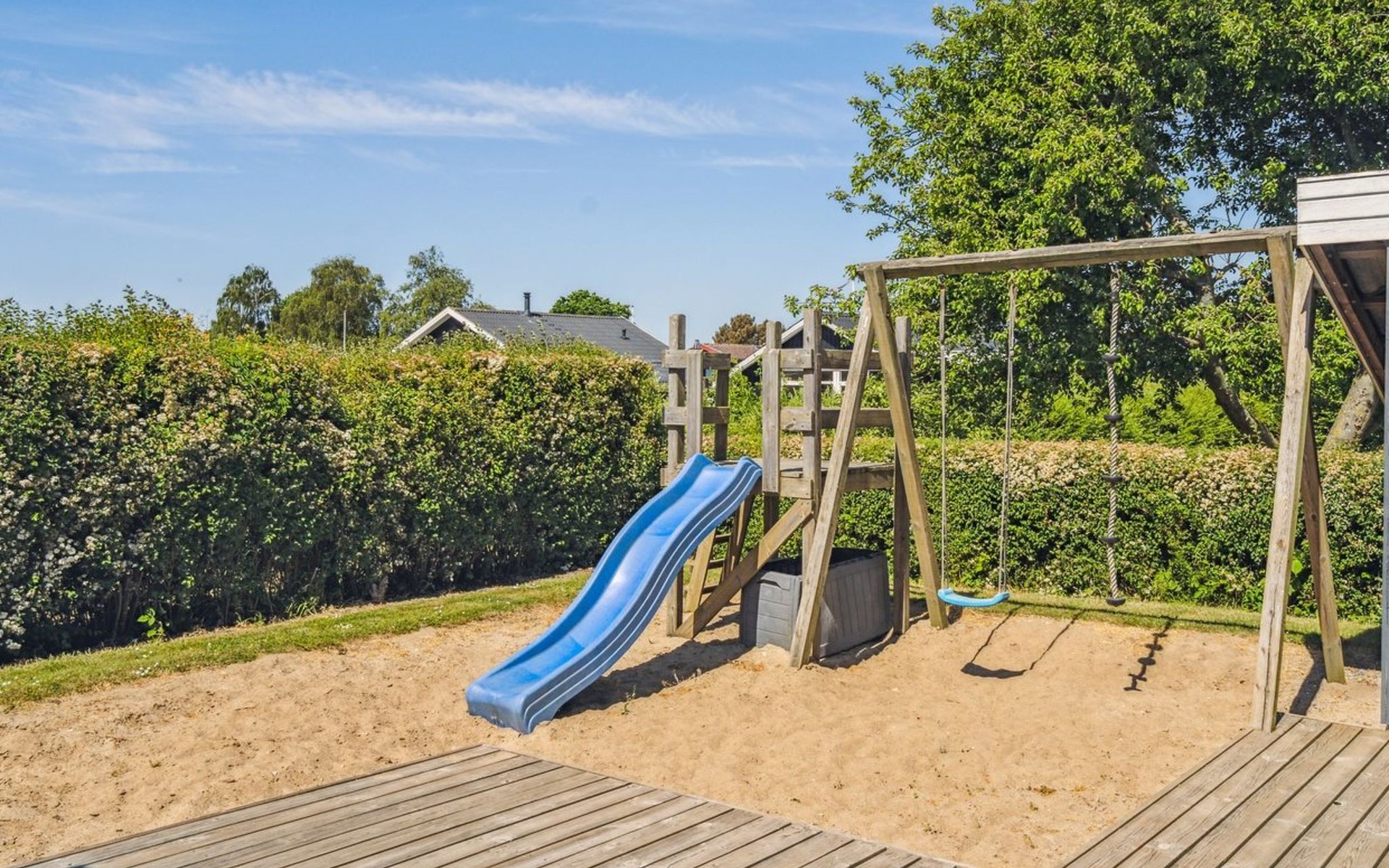 Single-family house, built in 1976. 200 m from the sea. Private: property 800 m2, well-kept garden. Barbecue. In the house: sauna, washing machine, tumble dryer. Parking at the house. Grocery 6 km. Golf course 12 km. The owner does not accept any youth groups.