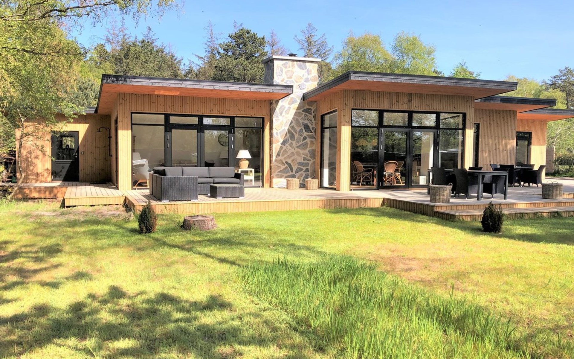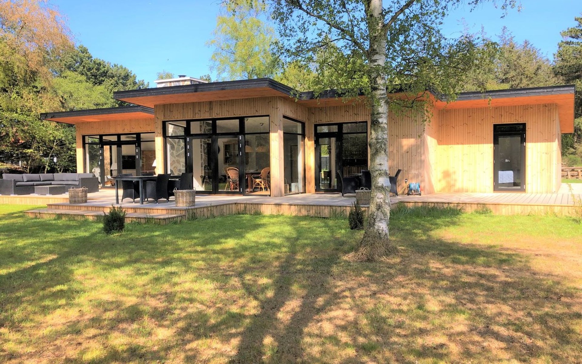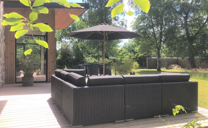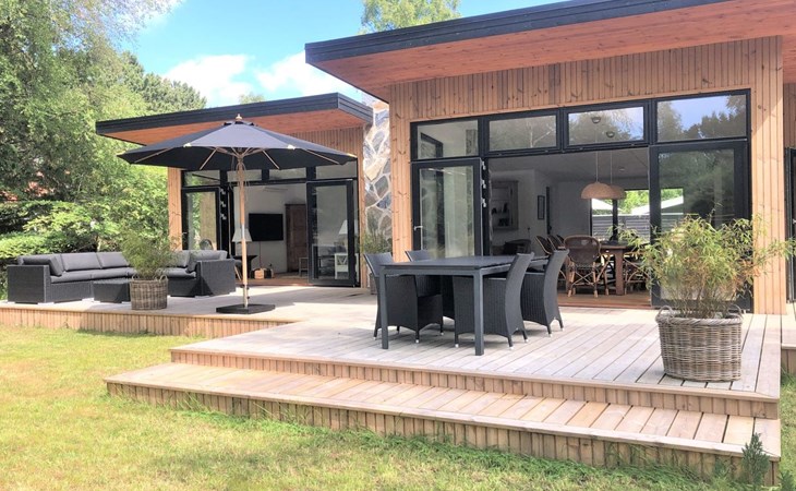 Single-family house, built in 2022. 175 m from the sea. Private: property 1'216 m2, well-kept garden. Outdoor shower, terrace (100 m2), barbecue. In the house: washing machine. Parking at the house. Grocery 1.8 km. Golf course 4.8 km. The owner does not accept any youth groups.