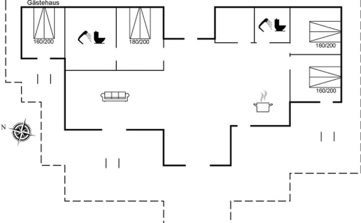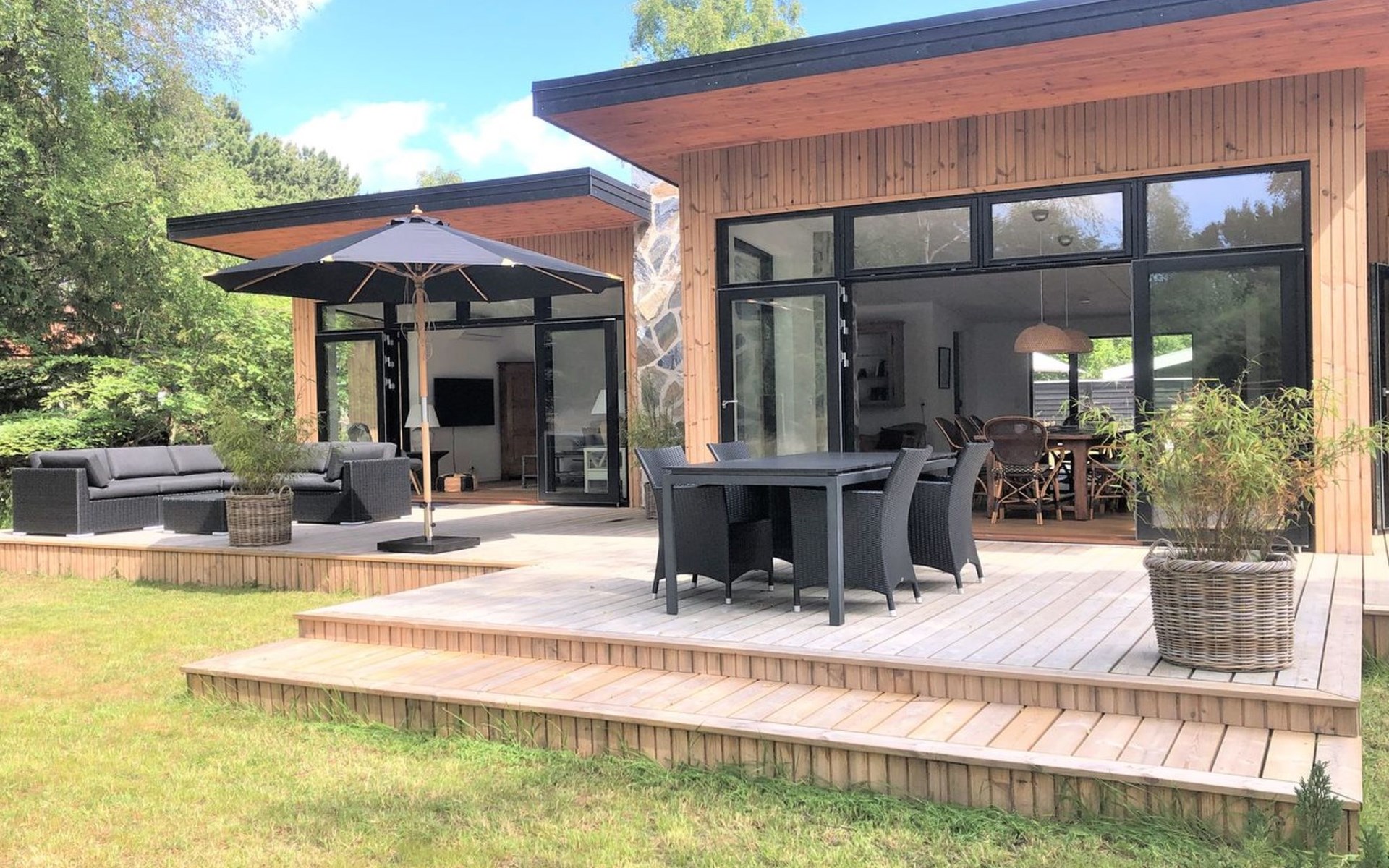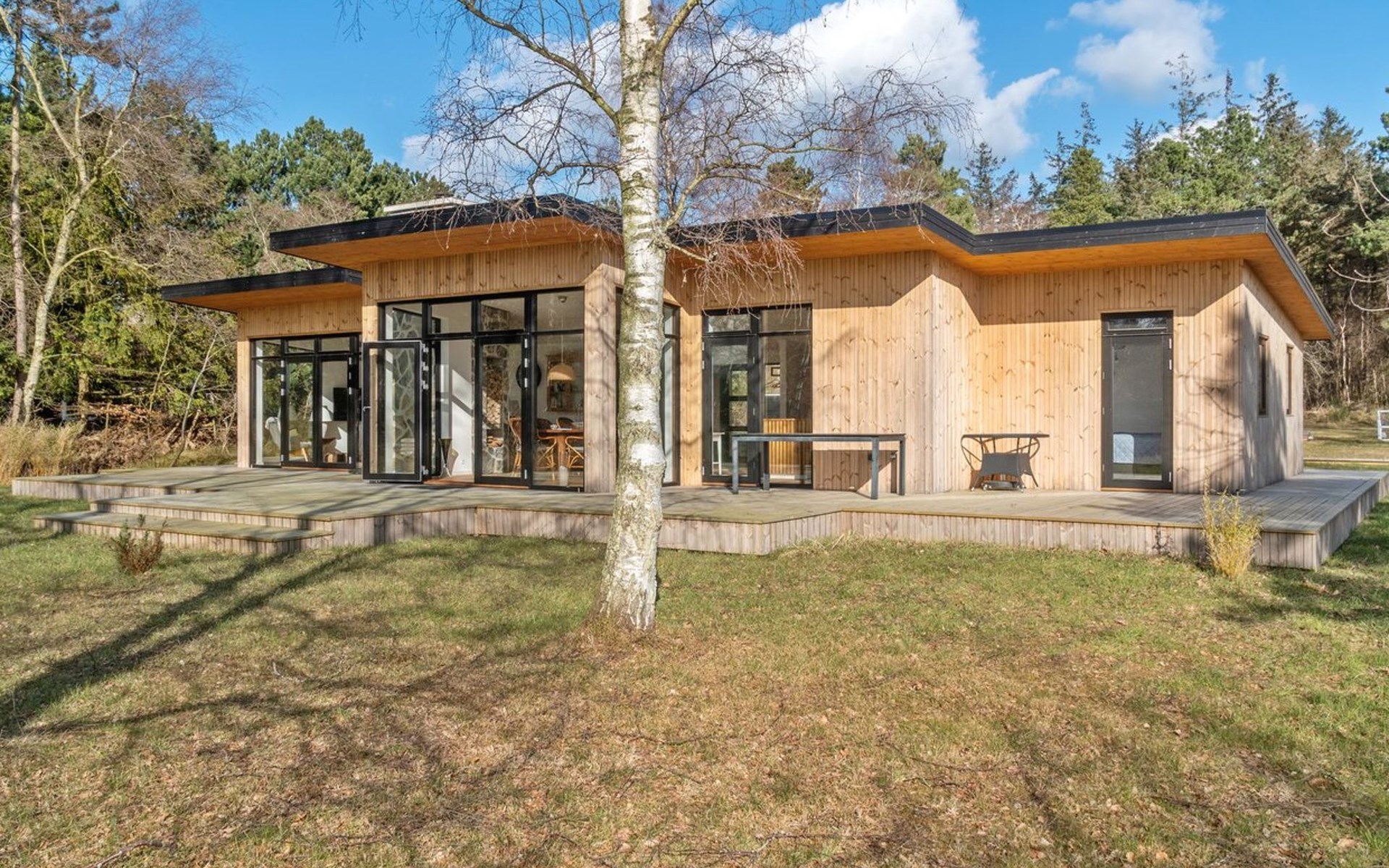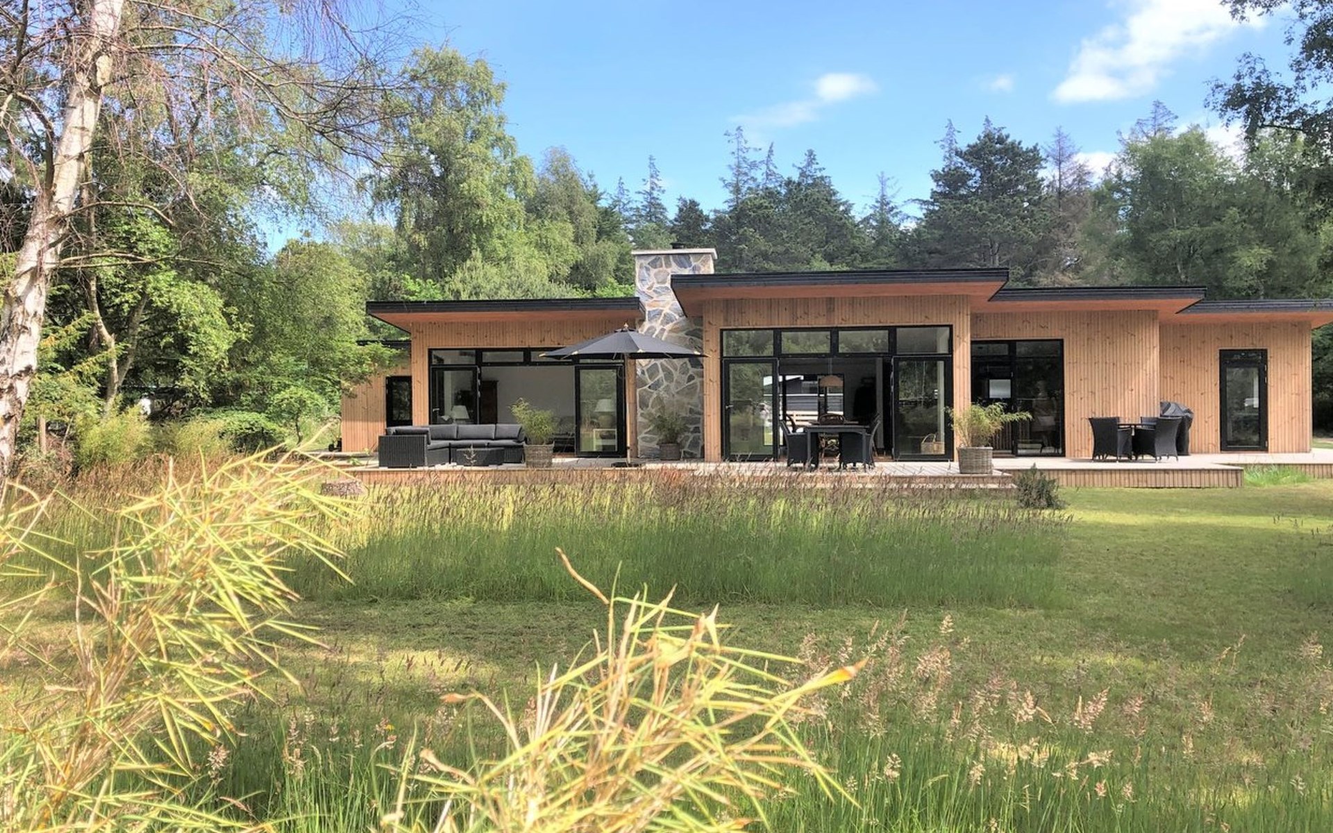 Single-family house, built in 2022. 175 m from the sea. Private: property 1'216 m2, well-kept garden. Outdoor shower, terrace (100 m2), barbecue. In the house: washing machine. Parking at the house. Grocery 1.8 km. Golf course 4.8 km. The owner does not accept any youth groups.