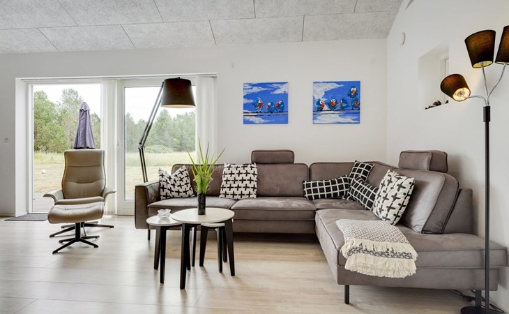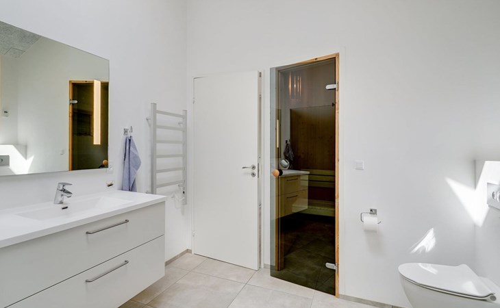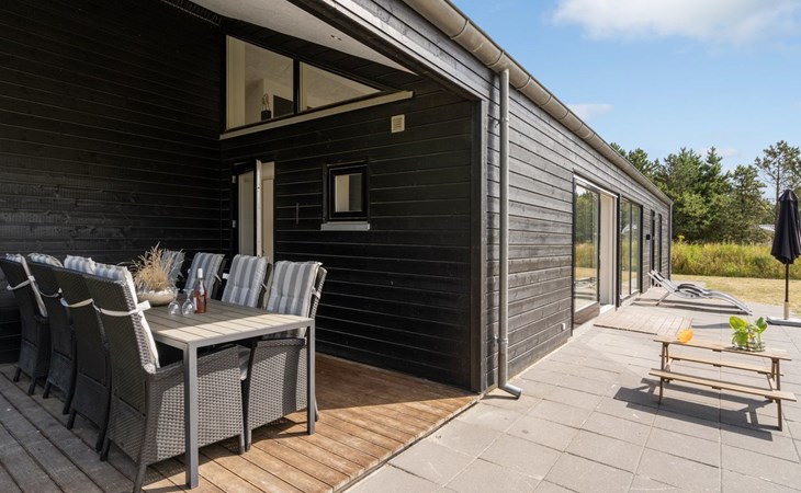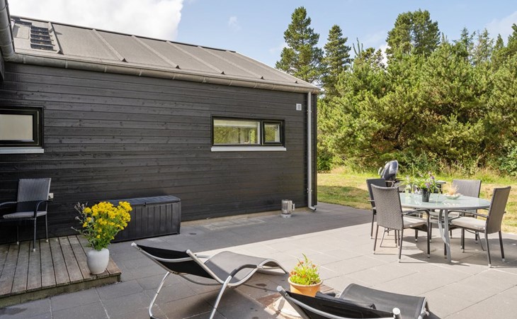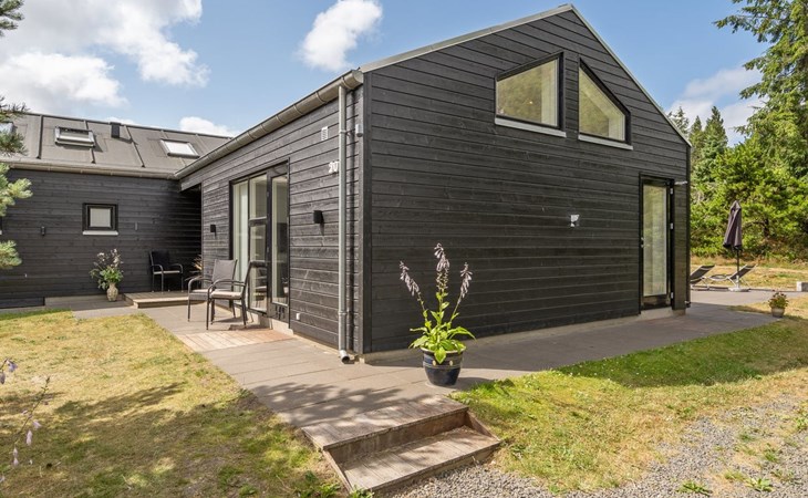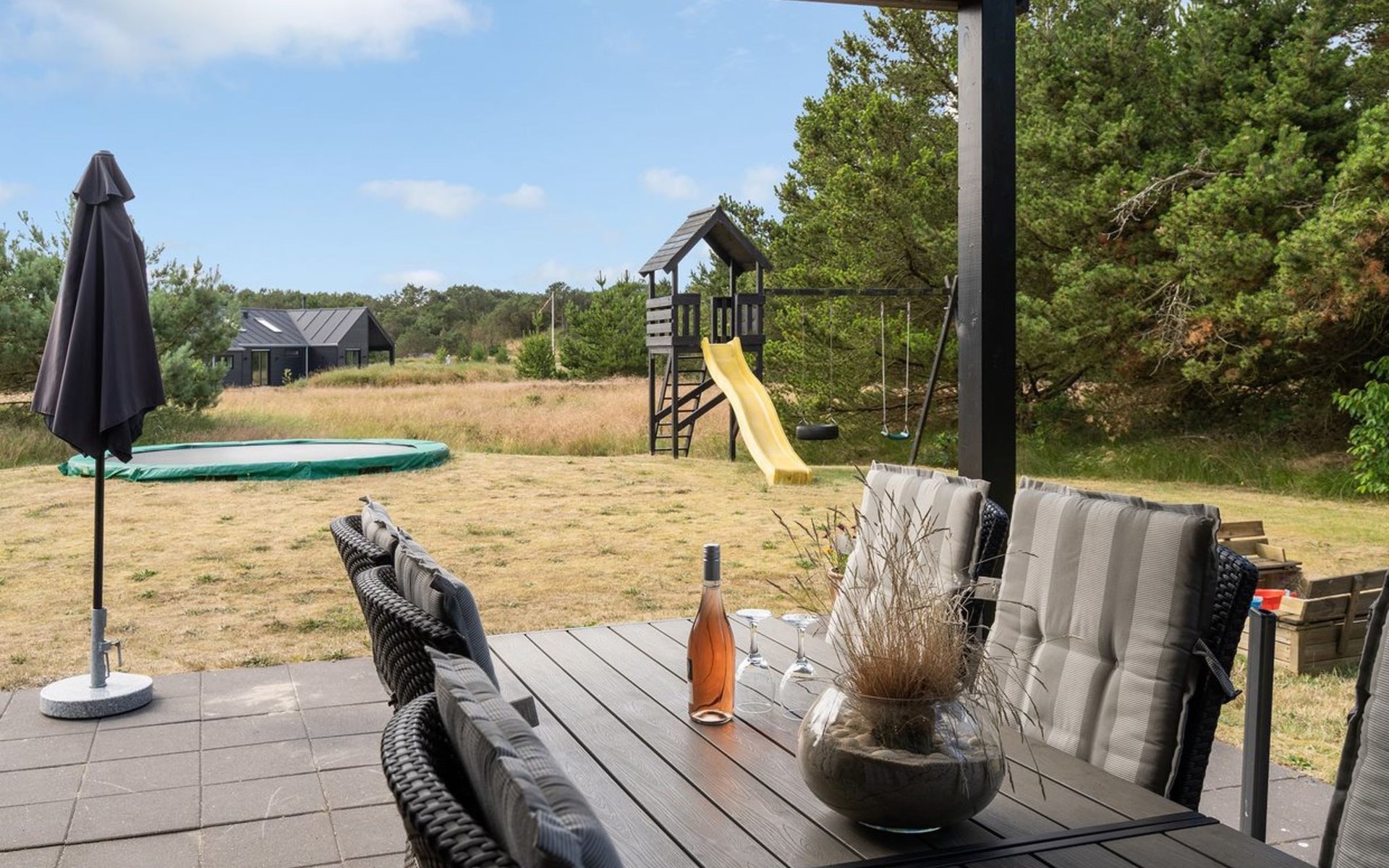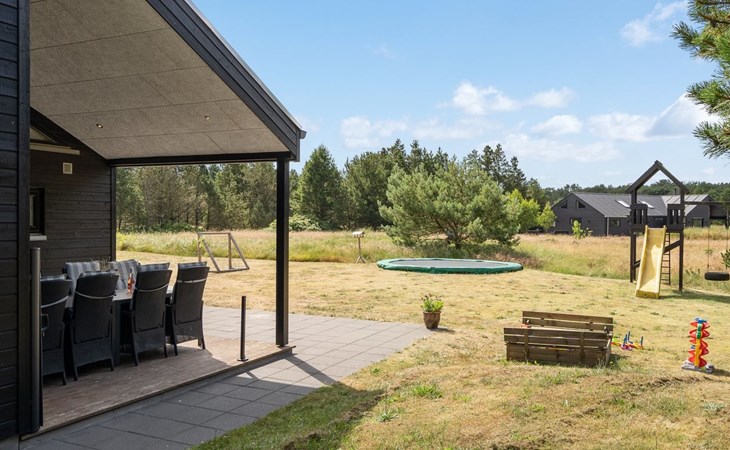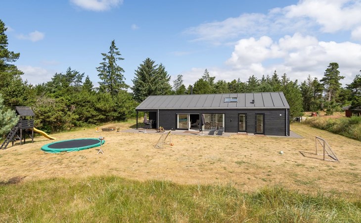 Single-family house, built in 2016. 2 km from the sea. Private: natural state property 1'500 m2. Terrace (90 m2), barbecue, children's playground (slide, swing). In the house: sauna, table football, trampoline, washing machine, tumble dryer. Parking at the house. E-charging station. Grocery 1.5 km. The owner does not accept any youth groups.