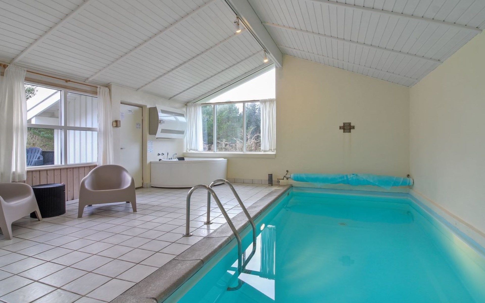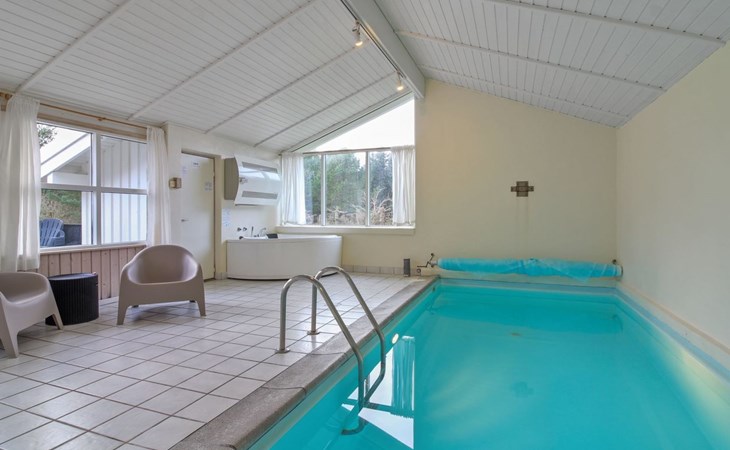 Single-family house, built in 1989. 600 m from the sea. Private: natural state property 1'454 m2, indoor pool (3 x 5 m, 1'7.5 m2, depth 150 - 150 cm). Barbecue, children's playground (swing). In the house: sauna, washing machine, tumble dryer. Parking at the house. E-charging station. Grocery 2.1 km. The owner does not accept any youth groups.