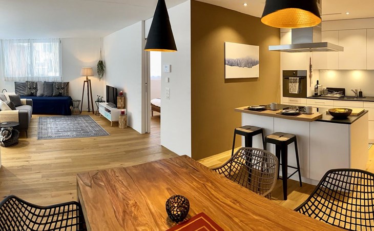 Included: Bath- and kitchen towels, garage parking, local tax. Excluded: Baby cot CHF 20.00, key deposit CHF 300.00 with credit card.