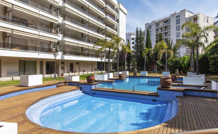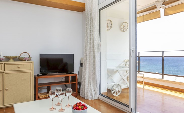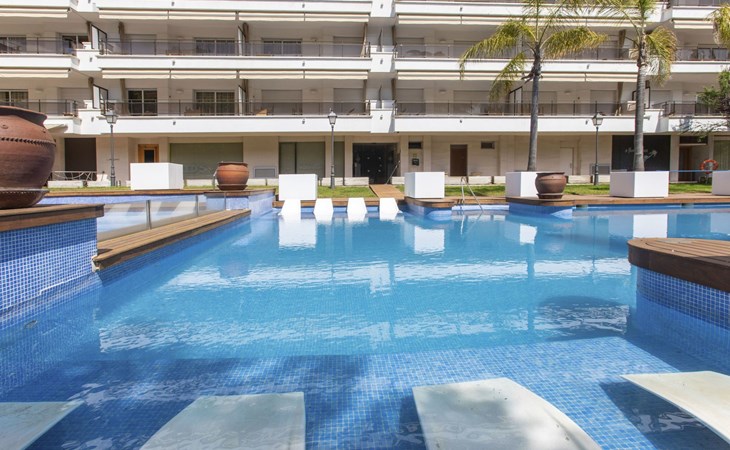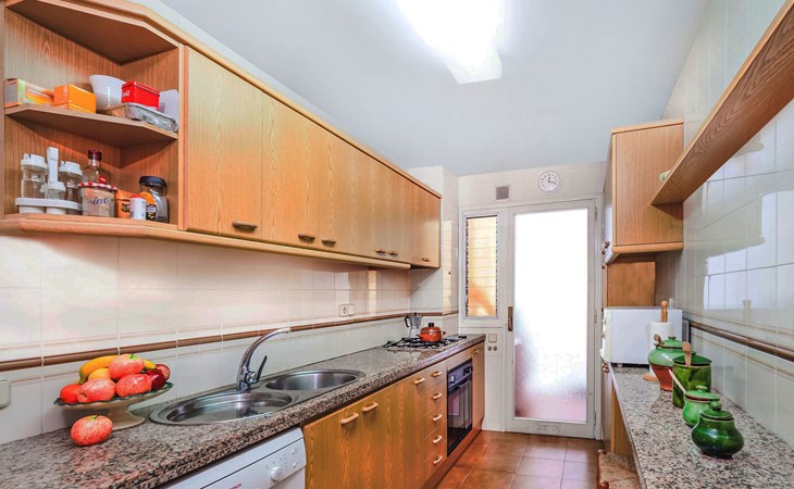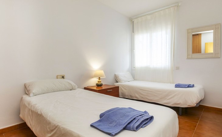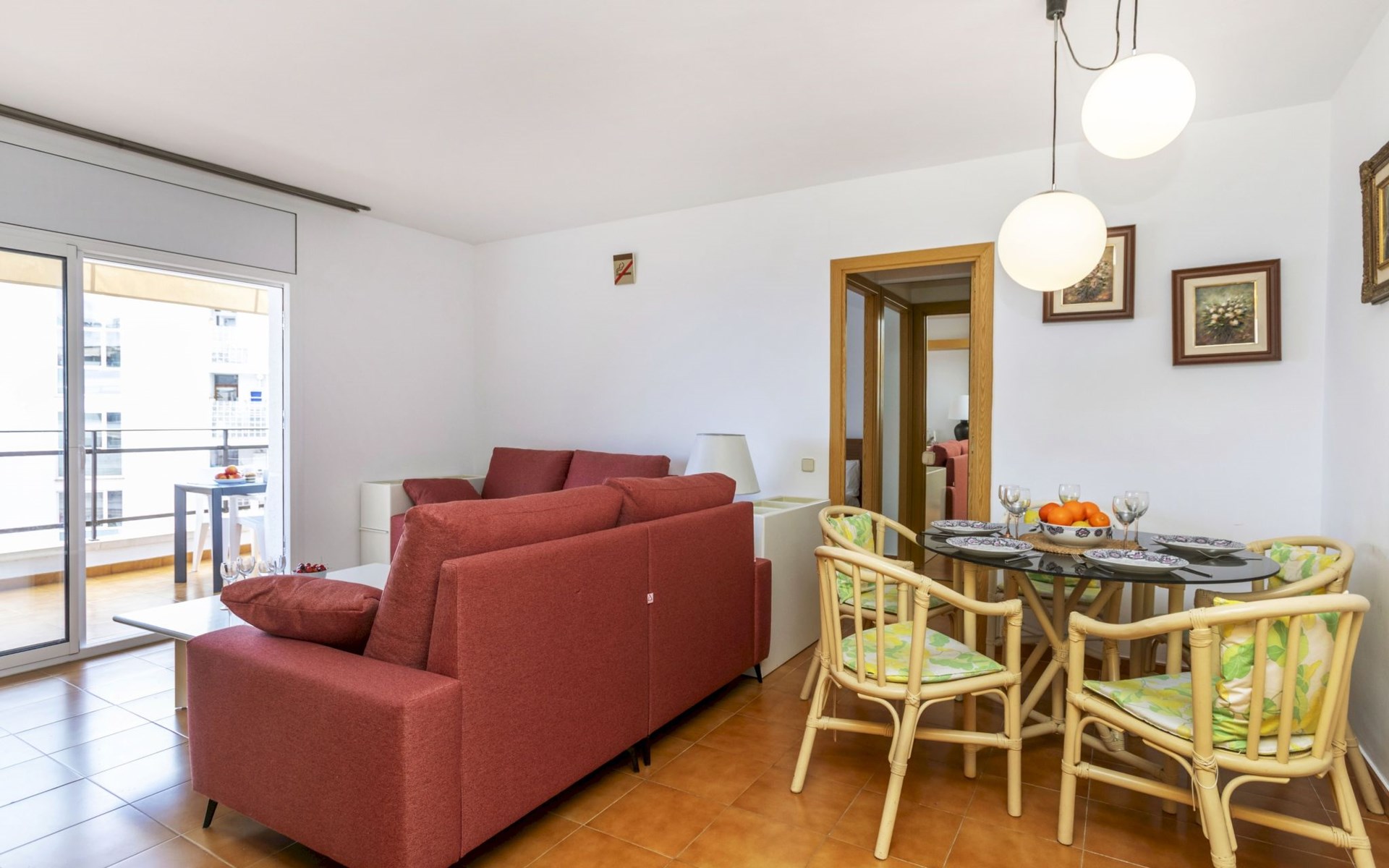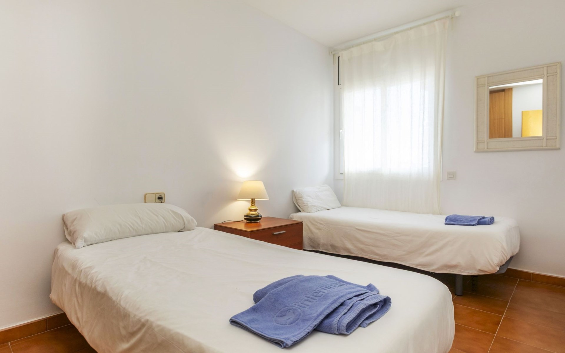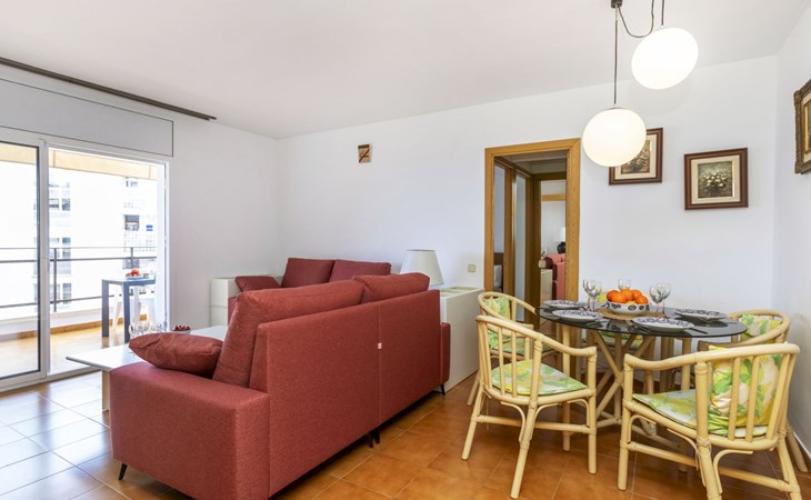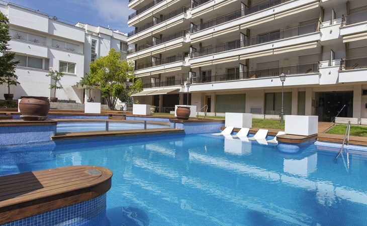 Playa de Fenals: Simple, comfortable holiday development "Punta Garbí". In the district of Fenals, 1 km from the centre of Lloret, excellent location: right in the centre but still quiet, 50 m from the sea, 50 m from the beach, road to cross, south facing position. For shared use: beautiful garden to relax, swimming pool angular (25 x 7 m, depth 120 - 180 cm, seasonal availability: 15.Jun. - 31.Sep. pool opening hours: 09:00-21:00). WC in the pool area, children's pool, outdoor shower, pergola, garden furniture. In the house: reception, lift, washing machine. Grocery 200 m, restaurant 100 m, bus stop 300 m, sandy beach 50 m. Nearby attractions: Water World Lloret 3 km, Marineland Malgrat 14 km, Pueblo Medieval Tossa de mar 12 km. The owner does not accept any groups. The owner does not accept any youth groups. Neighbourhood highly sensitive to noise. Quietness and good behaviour expected.