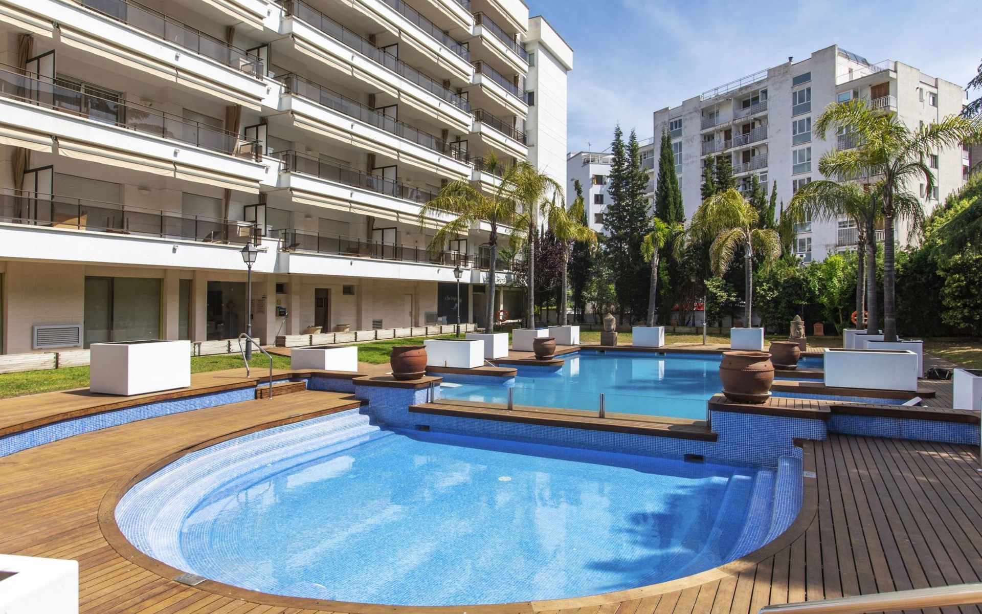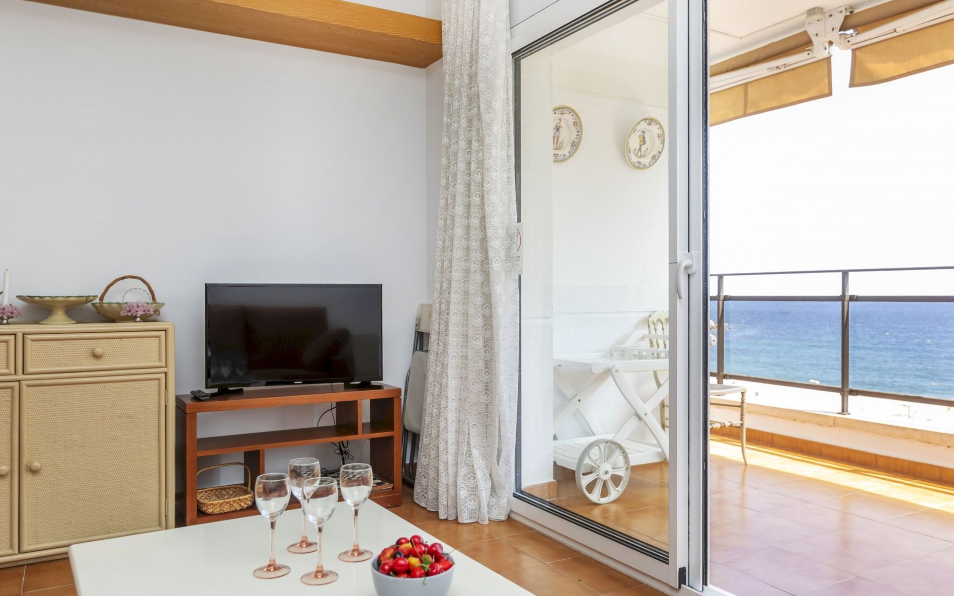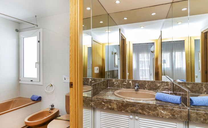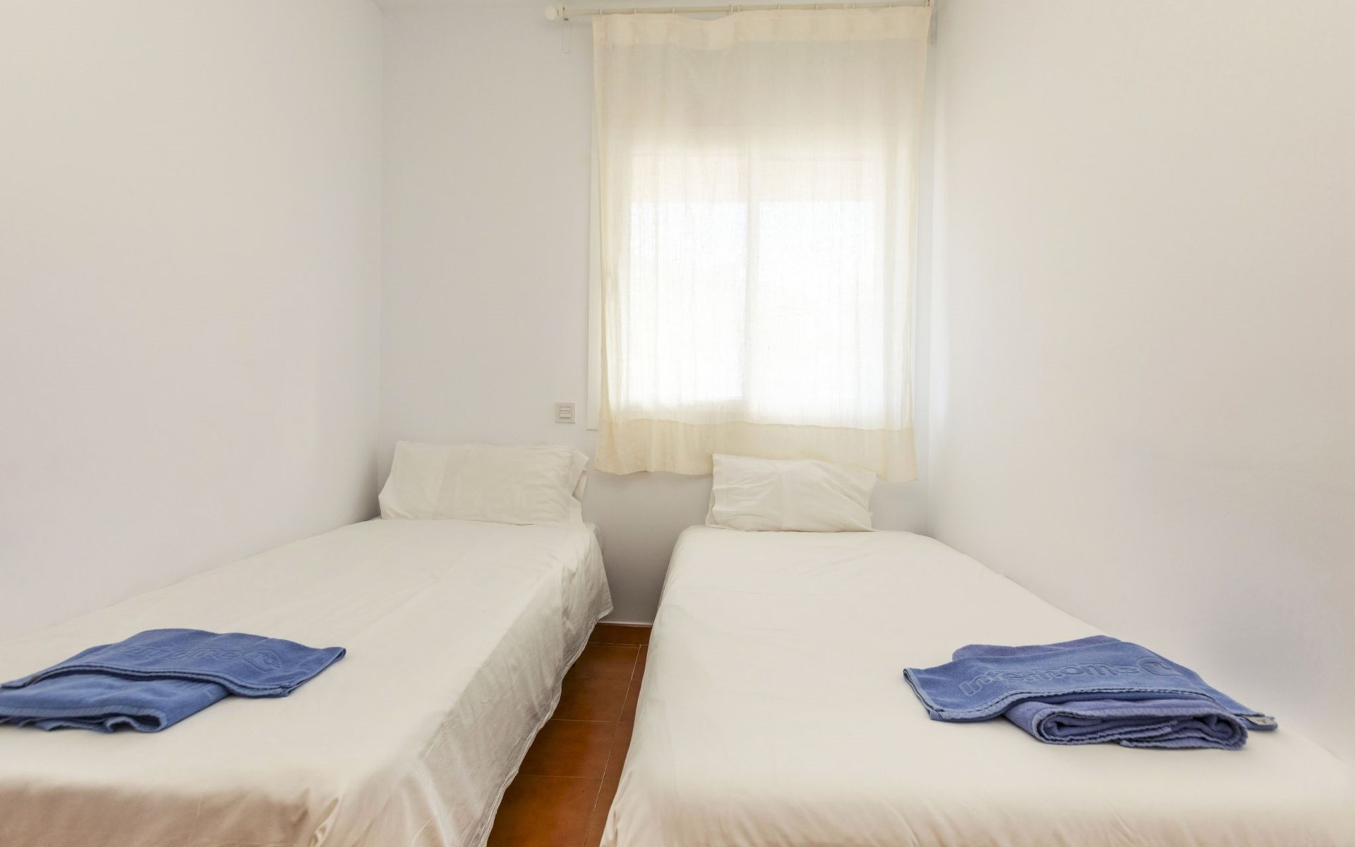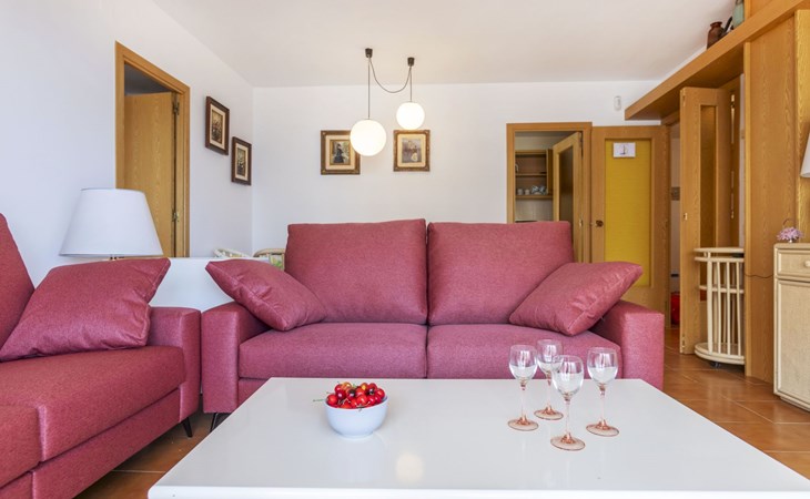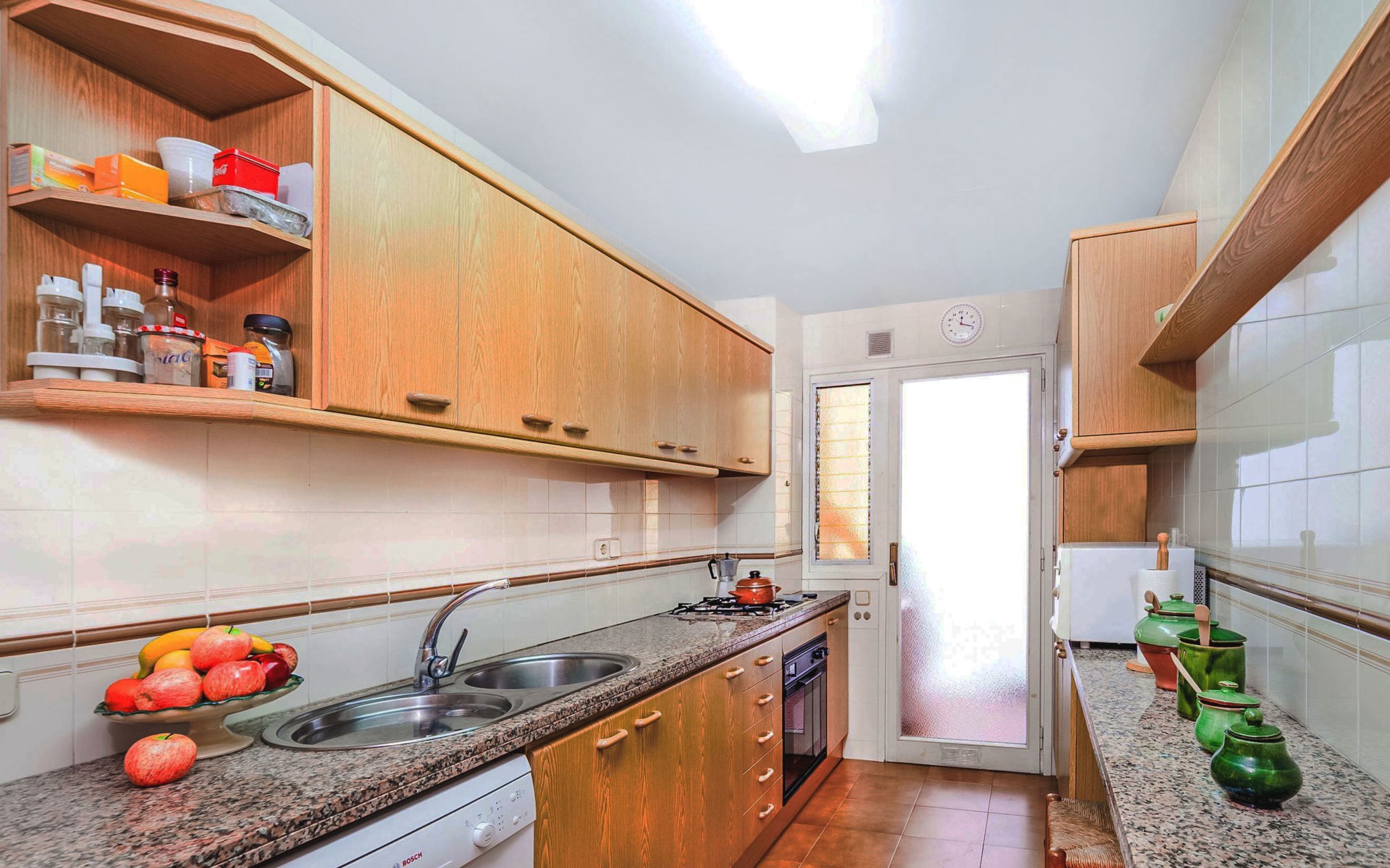 Playa de Fenals: Simple, comfortable holiday development "Punta Garbí". In the district of Fenals, 1 km from the centre of Lloret, excellent location: right in the centre but still quiet, 50 m from the sea, 50 m from the beach, road to cross, south facing position. For shared use: beautiful garden to relax, swimming pool angular (25 x 7 m, depth 120 - 180 cm, seasonal availability: 15.Jun. - 31.Sep. pool opening hours: 09:00-21:00). WC in the pool area, children's pool, outdoor shower, pergola, garden furniture. In the house: reception, lift, washing machine. Grocery 200 m, restaurant 100 m, bus stop 300 m, sandy beach 50 m. Nearby attractions: Water World Lloret 3 km, Marineland Malgrat 14 km, Pueblo Medieval Tossa de mar 12 km. The owner does not accept any groups. The owner does not accept any youth groups. Neighbourhood highly sensitive to noise. Quietness and good behaviour expected.