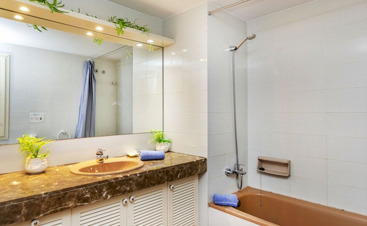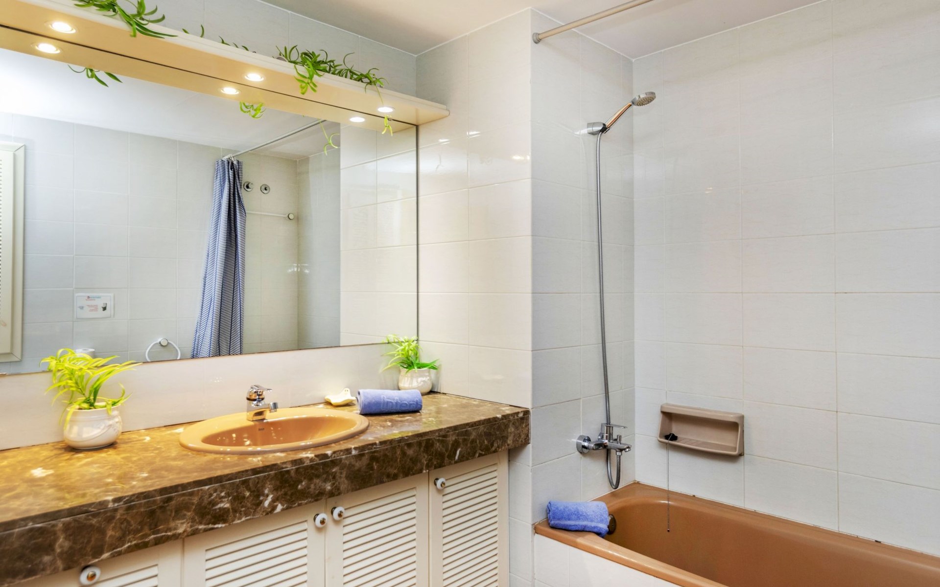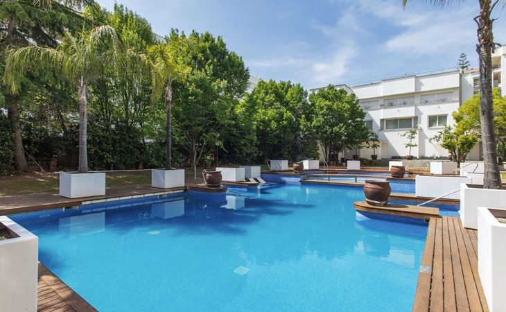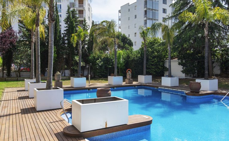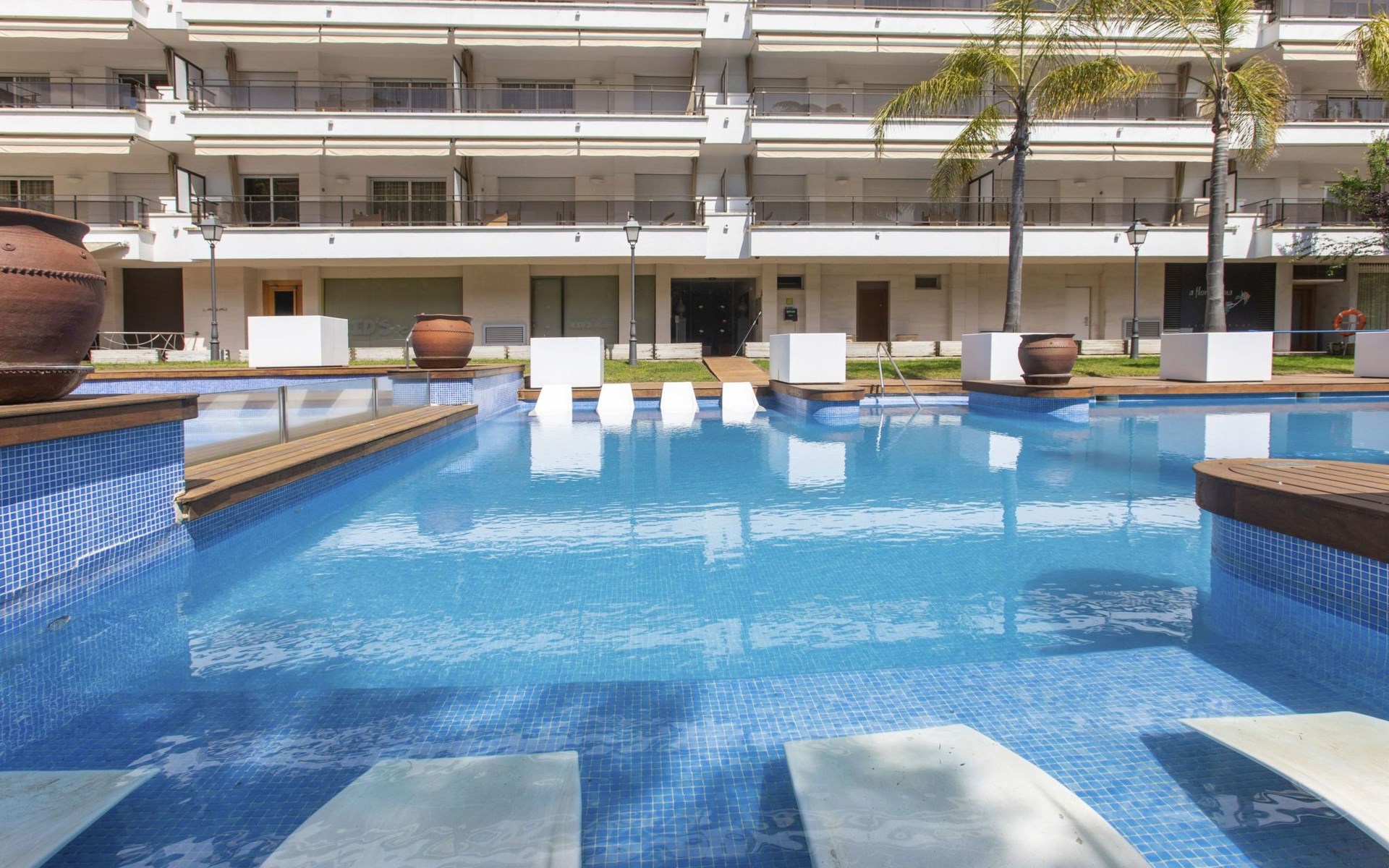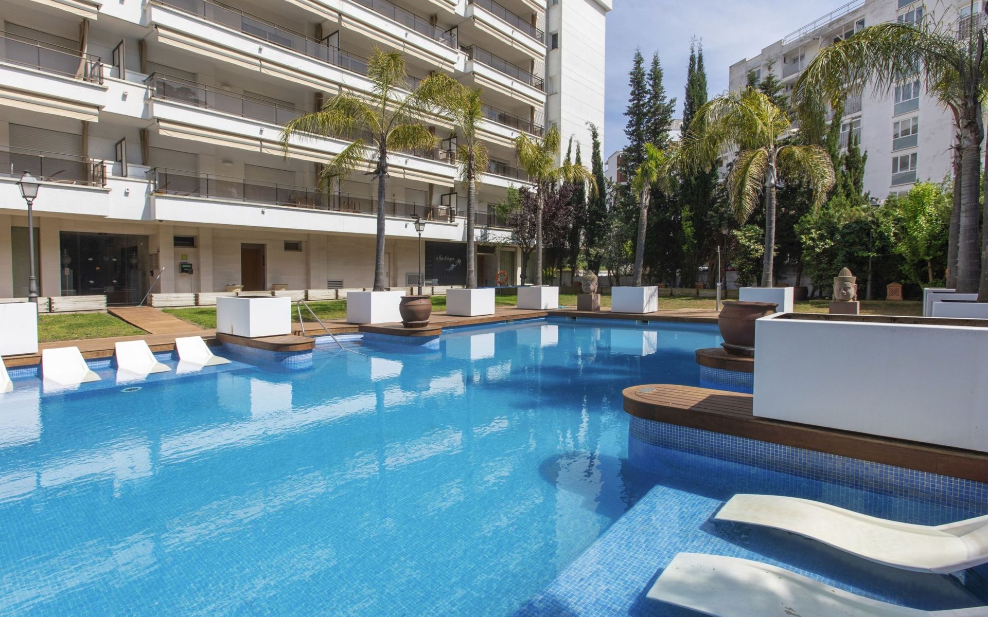 Playa de Fenals: Simple, comfortable holiday development "Punta Garbí". In the district of Fenals, 1 km from the centre of Lloret, excellent location: right in the centre but still quiet, 50 m from the sea, 50 m from the beach, road to cross, south facing position. For shared use: beautiful garden to relax, swimming pool angular (25 x 7 m, depth 120 - 180 cm, seasonal availability: 15.Jun. - 31.Sep. pool opening hours: 09:00-21:00). WC in the pool area, children's pool, outdoor shower, pergola, garden furniture. In the house: reception, lift, washing machine. Grocery 200 m, restaurant 100 m, bus stop 300 m, sandy beach 50 m. Nearby attractions: Water World Lloret 3 km, Marineland Malgrat 14 km, Pueblo Medieval Tossa de mar 12 km. The owner does not accept any groups. The owner does not accept any youth groups. Neighbourhood highly sensitive to noise. Quietness and good behaviour expected.