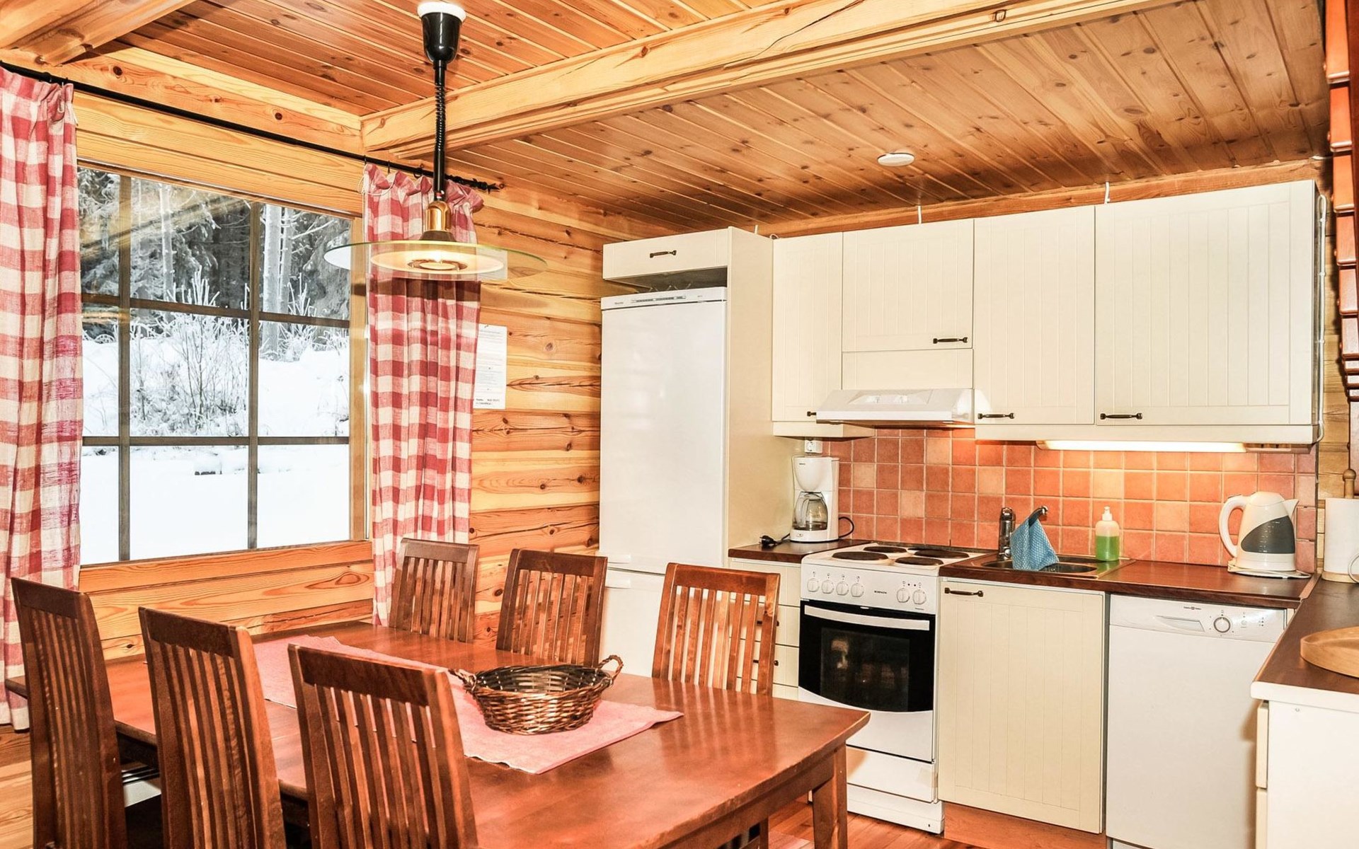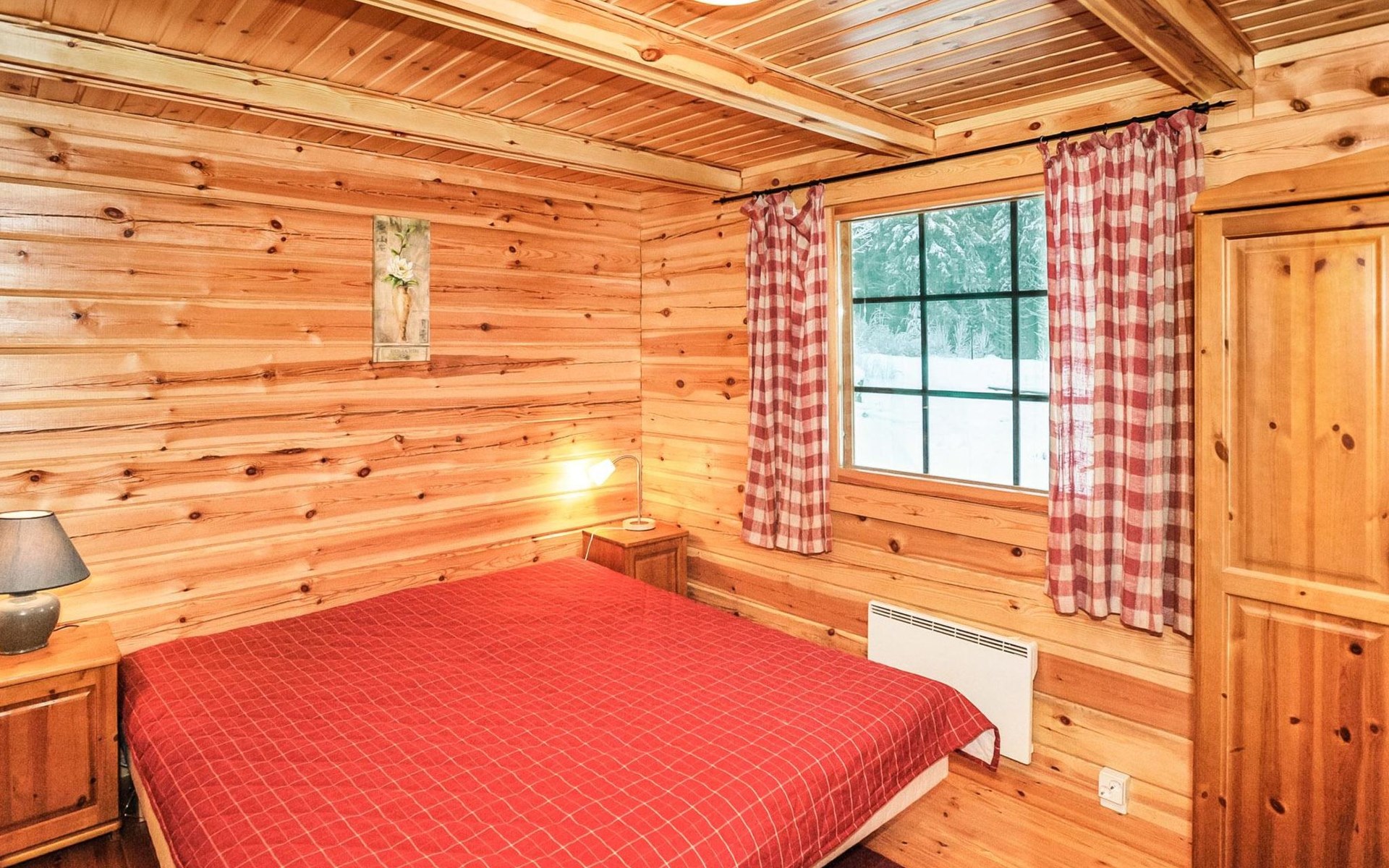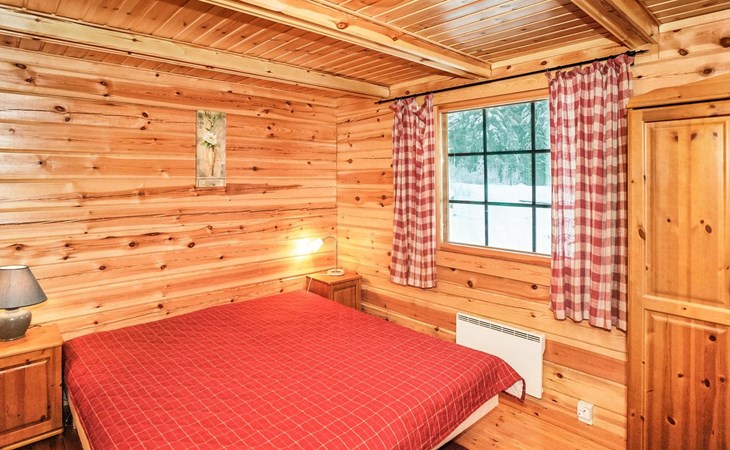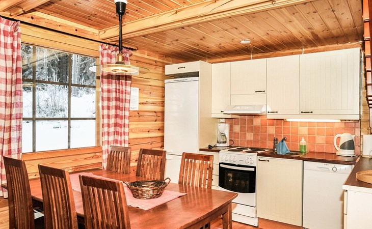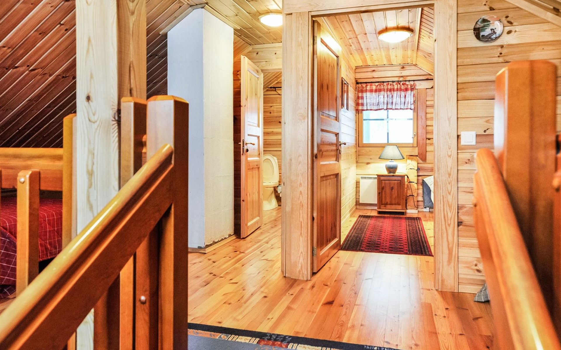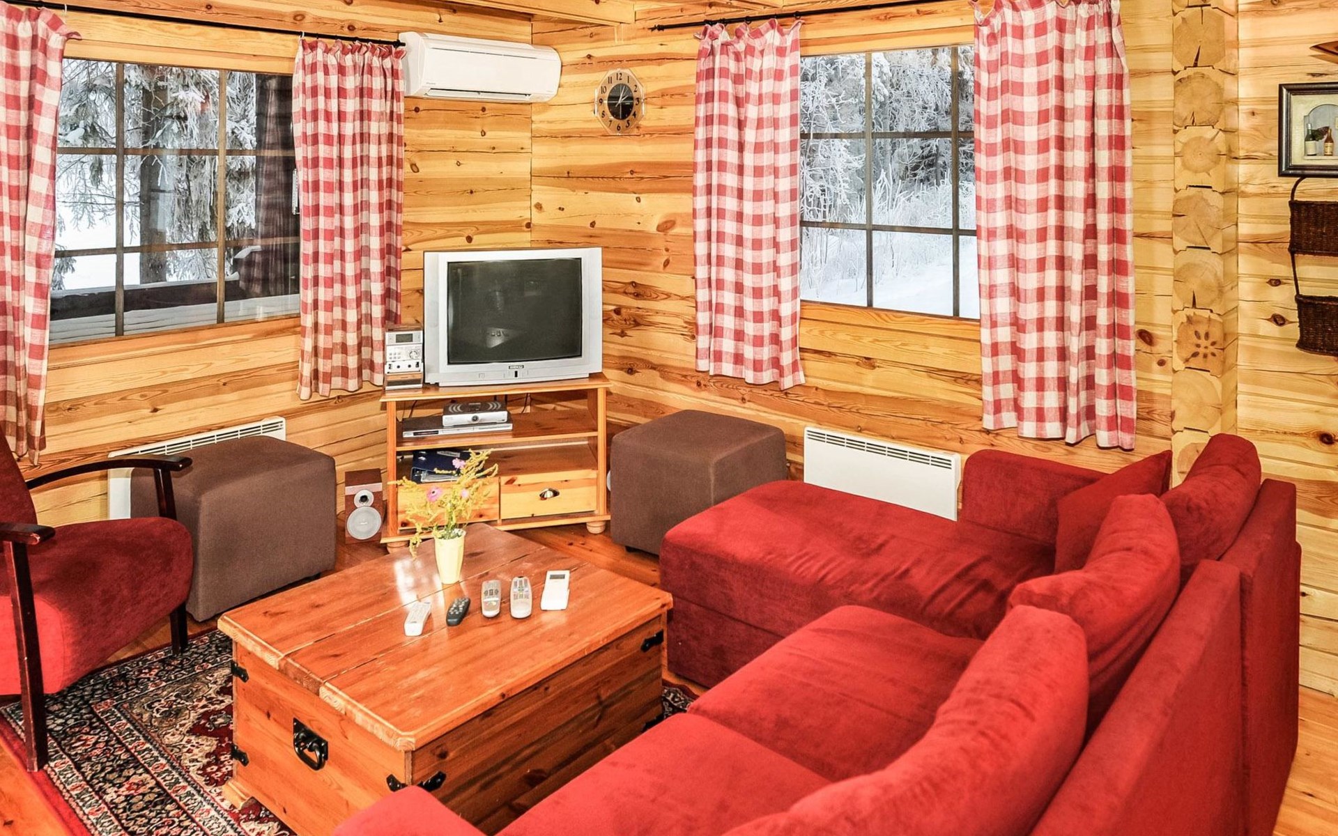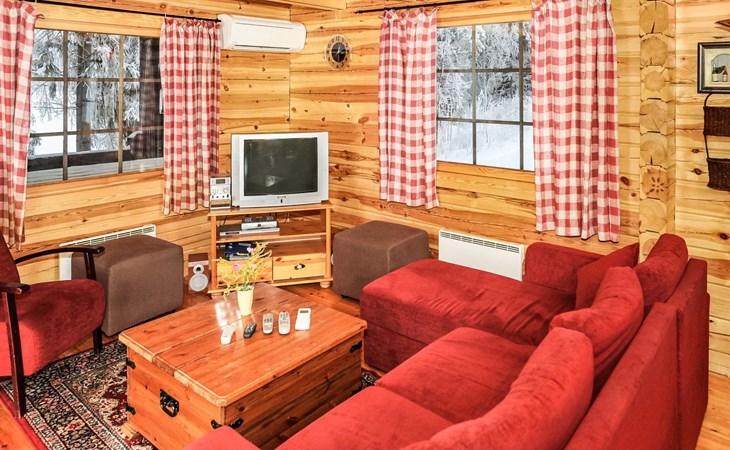 Log cabin 2006, living room / kitchen with sofa bed, 2 bedrooms with 2 beds in each (one downstairs, another upstairs), sleeping loft with 4 beds, wood-heated sauna, washroom, toilet downstairs and upstairs, covered porch.