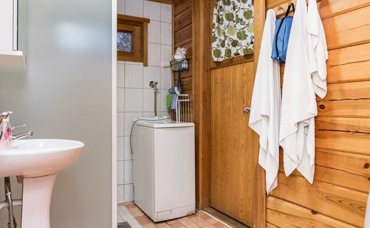 There is direct access from the sauna to the porch for cooling, the porch has a round log-made table group. The cabin does not have sun loungers.