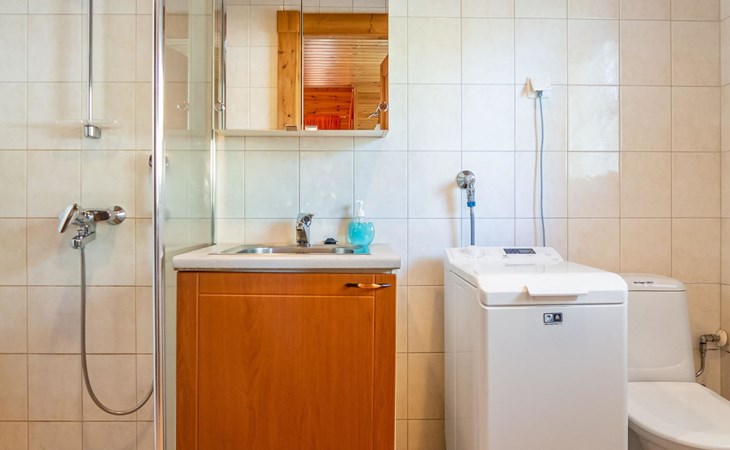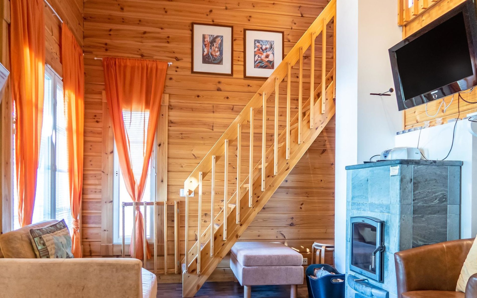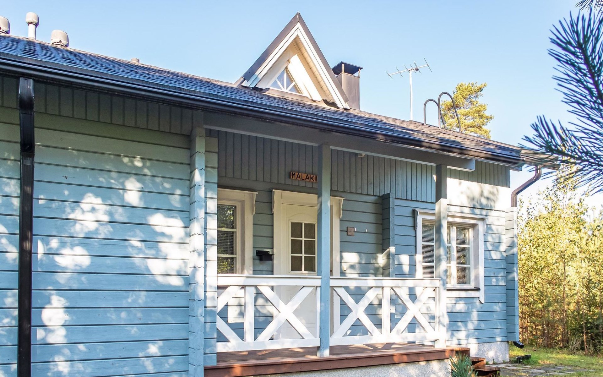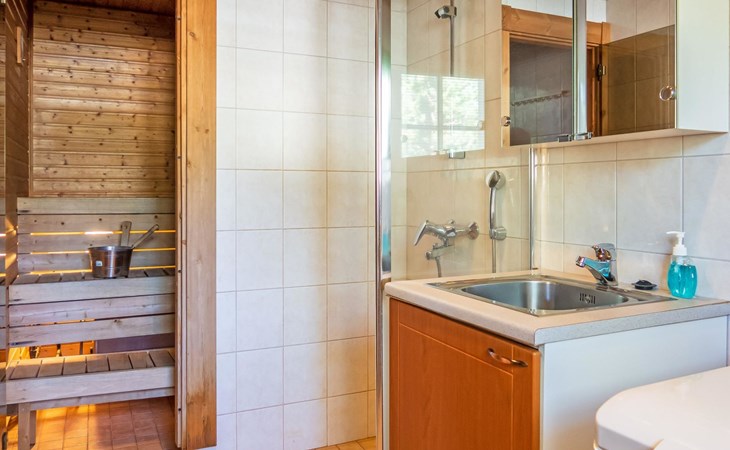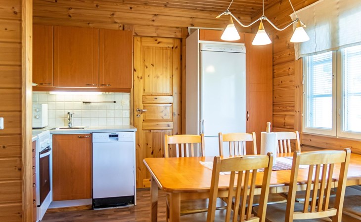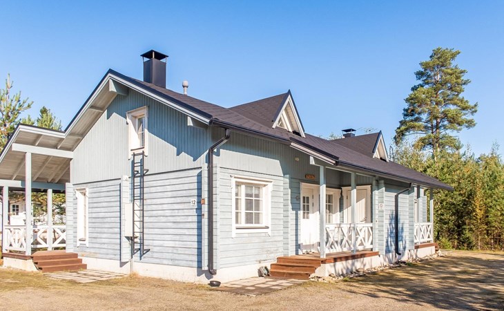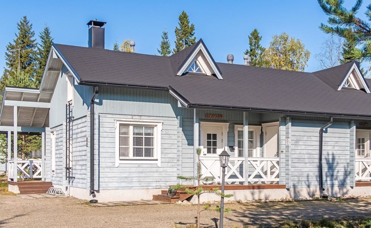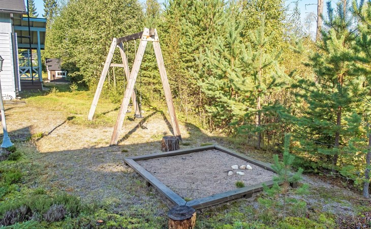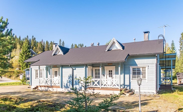 Child equipment: Travel bed, high chair and safety gates top and down stairs. Kajaani 34 km, Sotkamo 8 km. Vuokatti ski slope 100 m, cross country track 150 m. Small lake 2 km. Pets allowed at extra price. Barbecue hut in shared use.