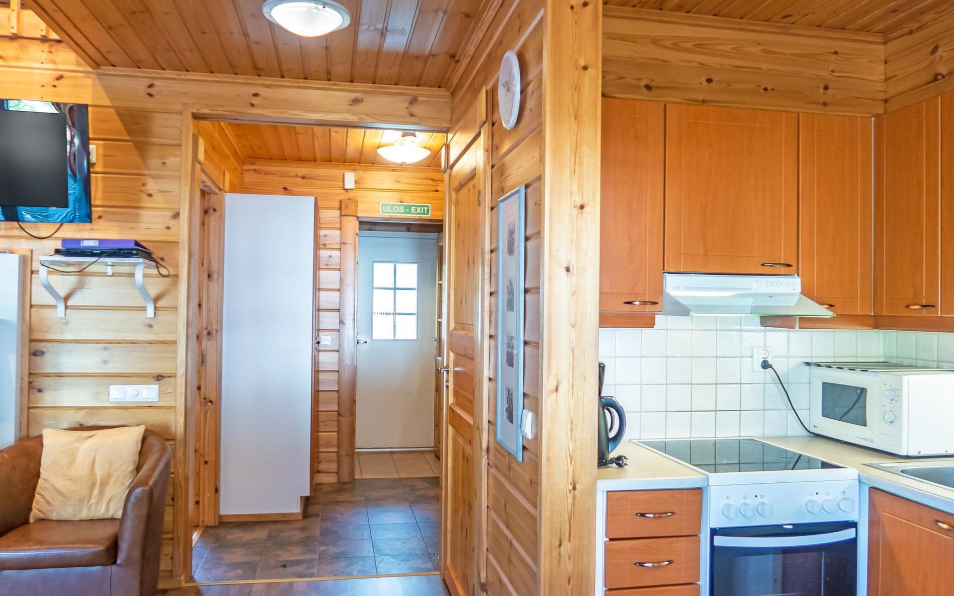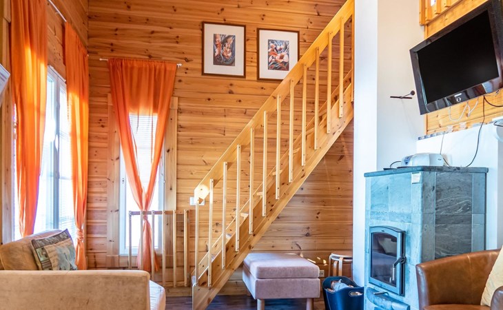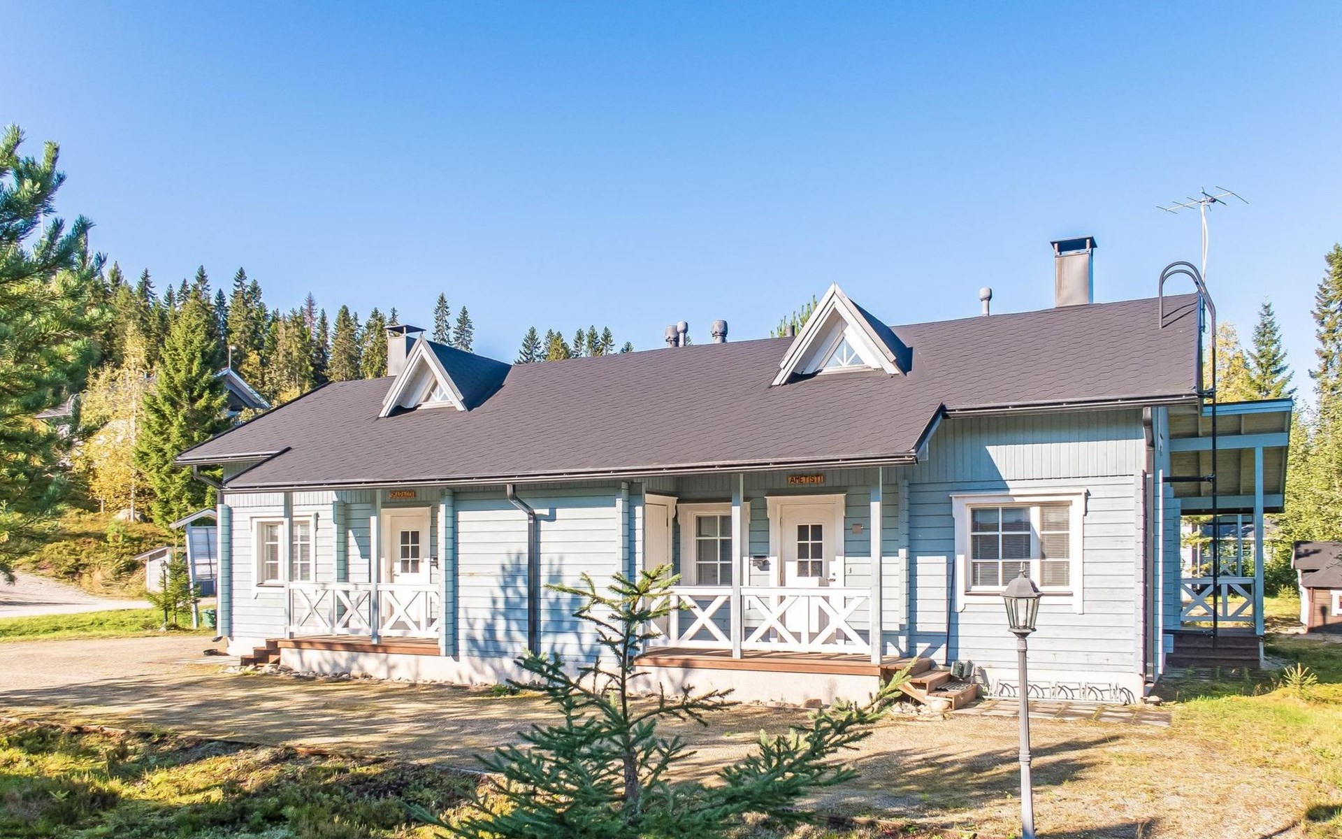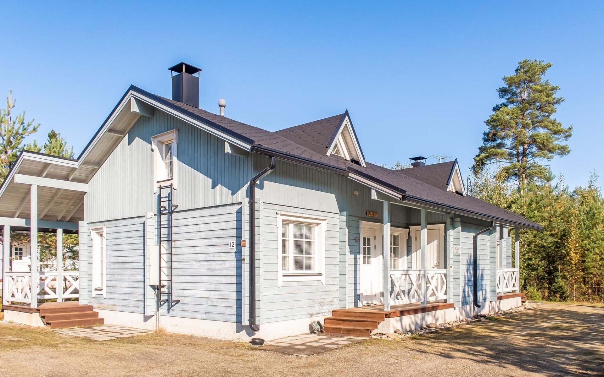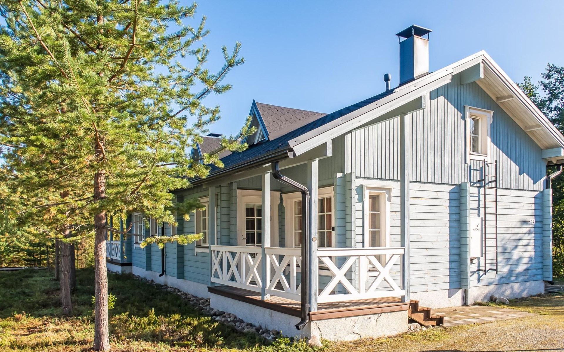 Child equipment: Travel bed, high chair and safety gates top and down stairs. Kajaani 34 km, Sotkamo 8 km. Vuokatti ski slope 100 m, cross country track 150 m. Small lake 2 km. Pets allowed at extra price. Barbecue hut in shared use.