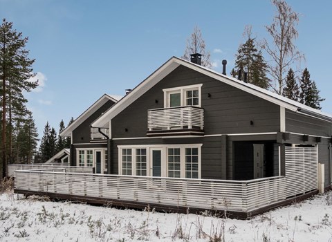 The living area and open-plan kitchen are cozy, with the atmosphere enhanced by a fireplace. The kitchen is well-equipped, and the dining table can be extended. The upstairs living area includes a workstation, so remote work is possible. The bathroom and sauna provide a great space for relaxation.
