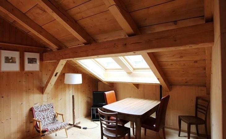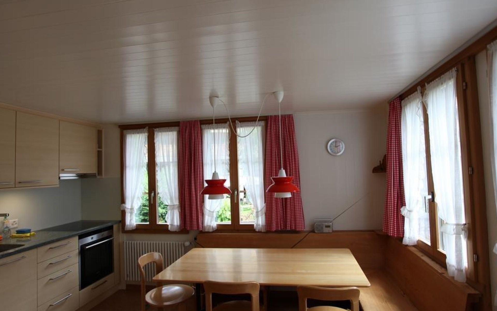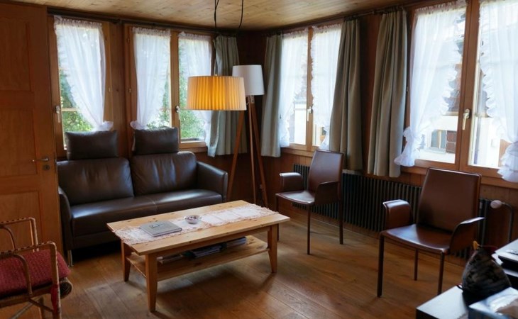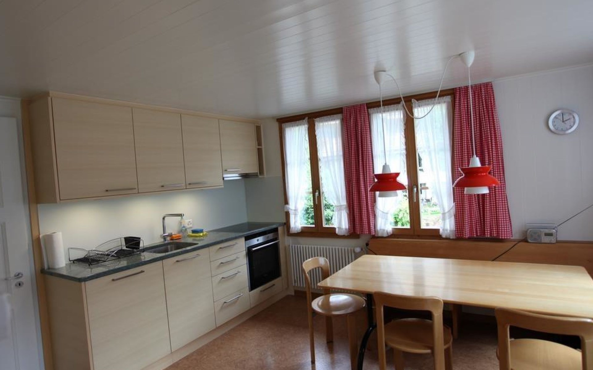 Ground floor: Living room with sofa, TV/radio, WiFi. Kitchen with dining area, dish-washer, refrigerator, freezer, filter coffee machine, coffee machine with capsules (Nespresso), raclette- et fondue-set, washing machine and tumble dryer. 1 bedroom with king-size-bed (160x200cm) and a piano. 1 bedroom with 1 single bed (90x200cm). 1 bath/toilet. 1st floor: Gallery with table and chairs. 1 bedroom with 2 single beds (90x200cm). 1 bedroom with king-size bed (120x200cm). Small stairs from ground to 1st floor. 1 toilet/shower. Baby cot (80x120cm) incl. bed linen and highchair available. Important note: by occupancy with up to 3 persons (lower price) there is only the ground floor at your disposal. The door to the 1st floor will be locked.