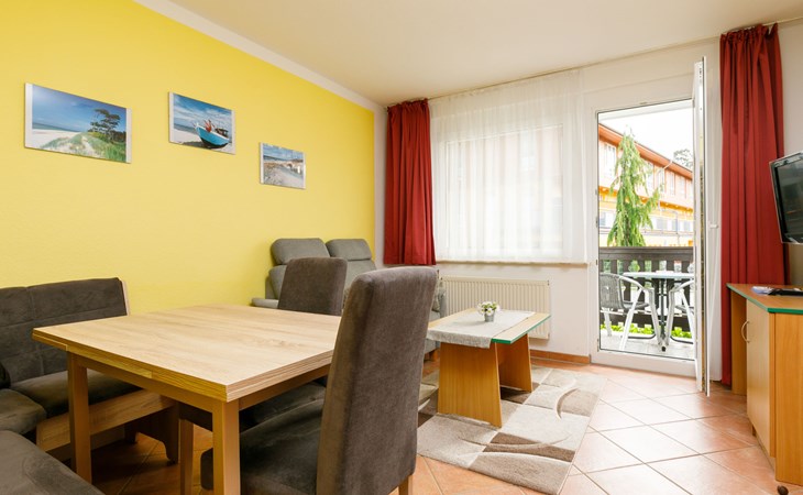 Apartment block "Dünenhaus". In the resort 650 m from the centre of Zempin, 350 m from the sea, from the beach. In the house: central heating system. Parking on the premises. Supermarket 3.8 km, restaurant 650 m, bakery 400 m, bus stop 450 m, railway station 500 m, sandy beach 350 m, thermal baths "Bernsteintherme" 4 km. Golf course (18 hole) 21 km, surf school 4 km, tennis 3.7 km, minigolf 3.9 km.