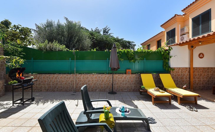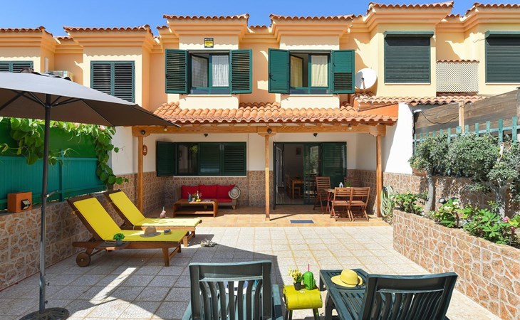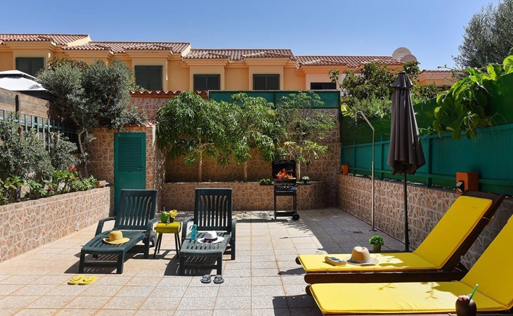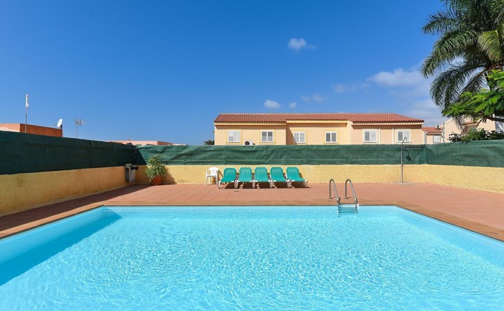 Cosy, simple holiday development "Bungalow Sonnenland Los Tinos II 45". In the centre of Sonnenland, in a busy, sunny position. For shared use: swimming pool angular (seasonal availability: 01.Jan. - 31.Dec.). Outdoor shower. Private: barbecue, parking on the premises, public parking on the road. Shop, supermarket, restaurant 300 m, bus stop "Vistamar" 110 m. The owner does not accept any youth groups. Please note: airfield 32 km from the property. Neighbourhood highly sensitive to noise. Quietness and good behaviour expected.