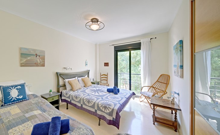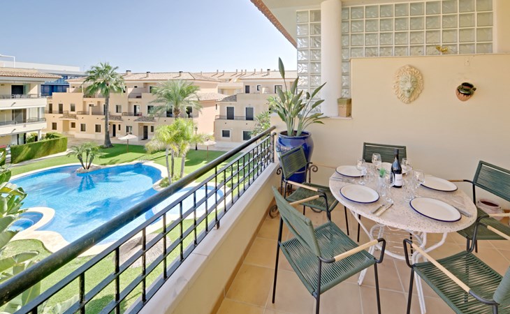 Very beautiful, cosy apartment block "Jardines del Pla", 2 storeys. In the district of El Arenal, in a quiet, sunny position, 450 m from the sea, 450 m from the beach. For shared use: large, well-kept garden with lawn, swimming pool (23 x 15 m, depth 40 - 210 cm, seasonal availability: 01.Jan. - 31.Dec.) with internal staircase. Unconventional pool shape. Children's pool, outdoor shower, hot tub. In the house: lift. Parking. Supermarket 400 m, restaurant 130 m, bar 150 m, bus stop "Parada antiguo Mas y Mas" 210 m, sandy beach "El Arenal" 450 m. Sports harbour 700 m, surf school, sailing school 500 m, tennis. The owner does not accept any youth groups.