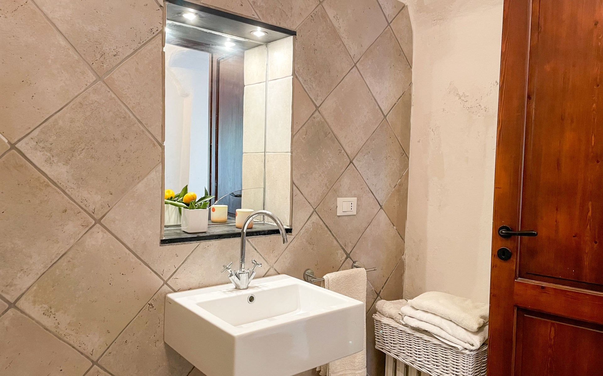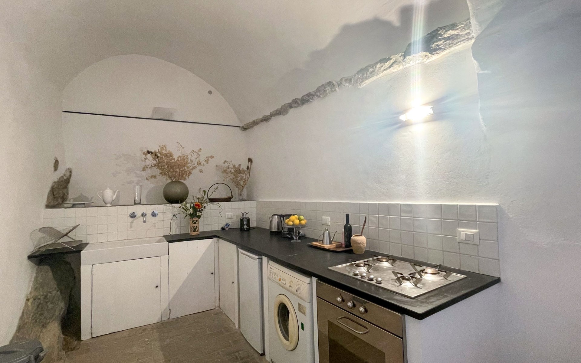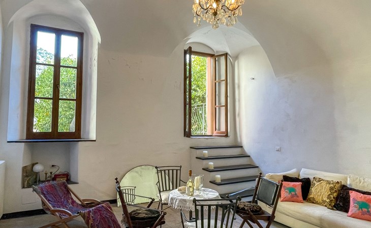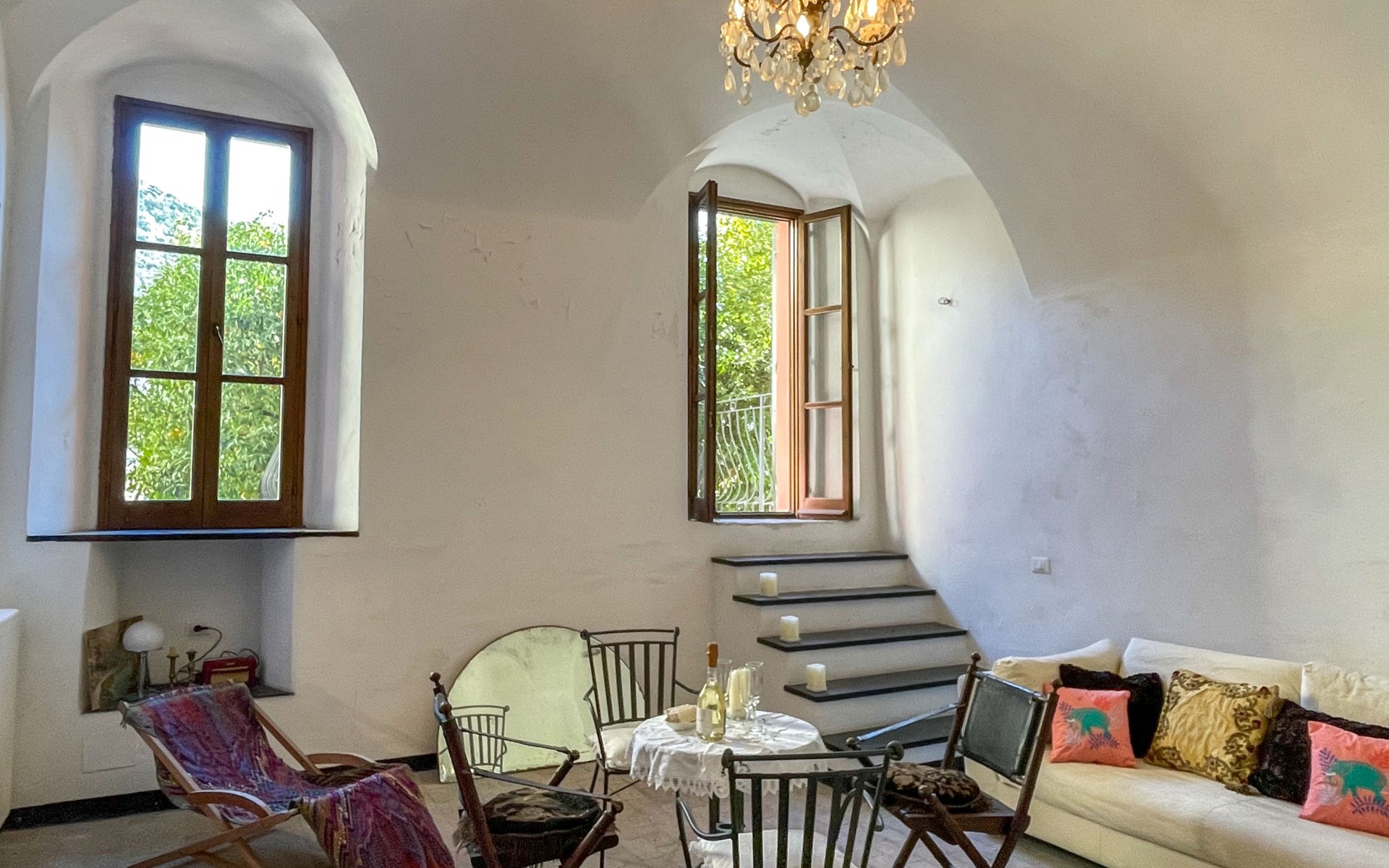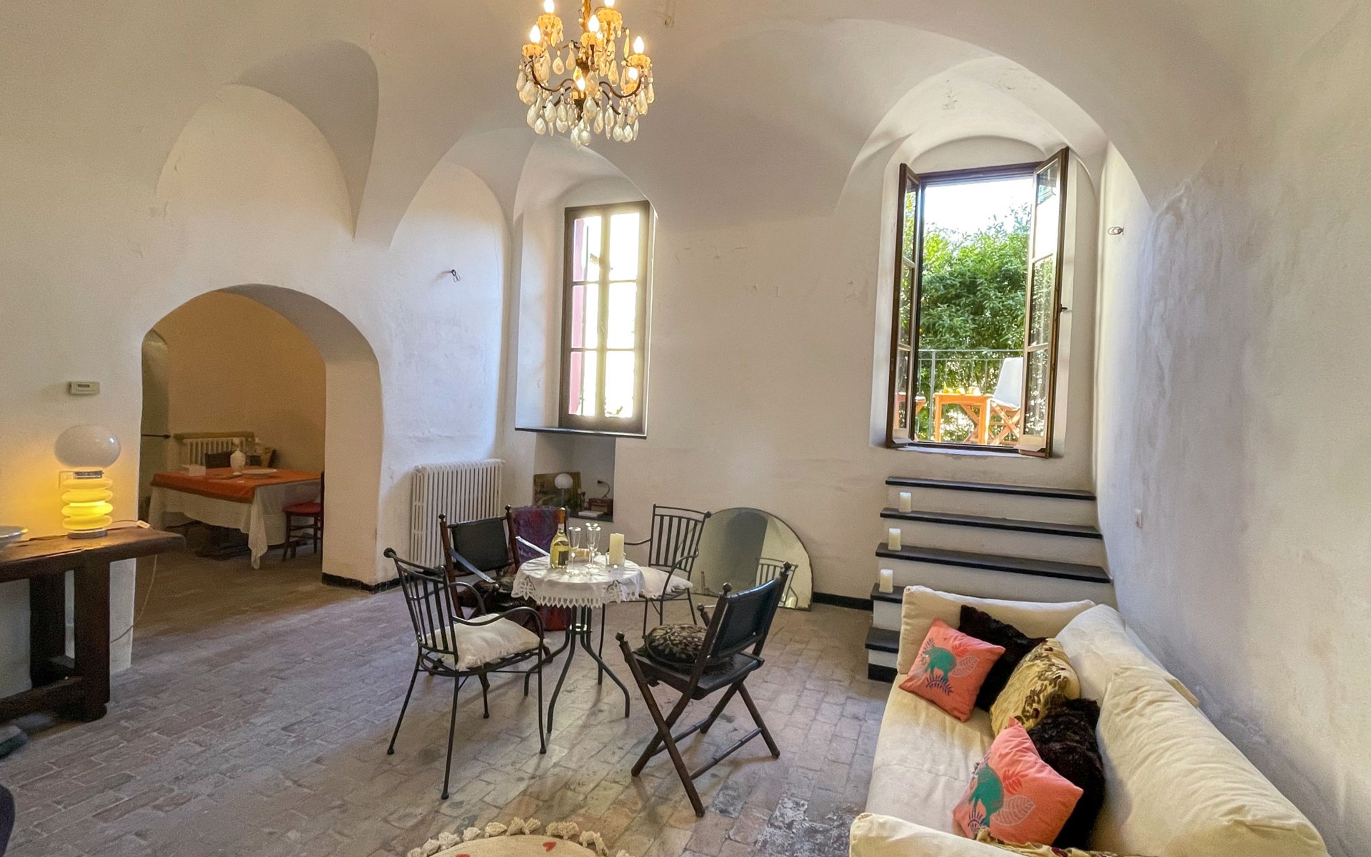 Historical 2-family house, 2 storeys, semi-detached, renovated. In the centre of Dolcedo 10 km from the centre of Imperia Porto Maurizio, 30 km from the centre of San Remo, excellent location: right in the centre but still quiet, 9 km from the sea. 20 m steep footpath to the house. Public parking 50 m. Shop 50 m, supermarket 9 km, restaurant, bar, café 50 m, bus stop 100 m. Riding stable 4 km, cycle lane 9 km. Hiking paths: Monte Faudo, Val Prino. Please note: car recommended.