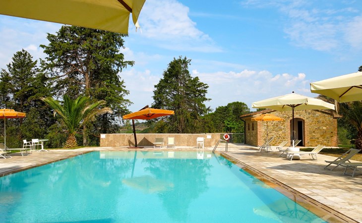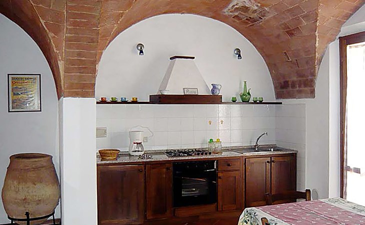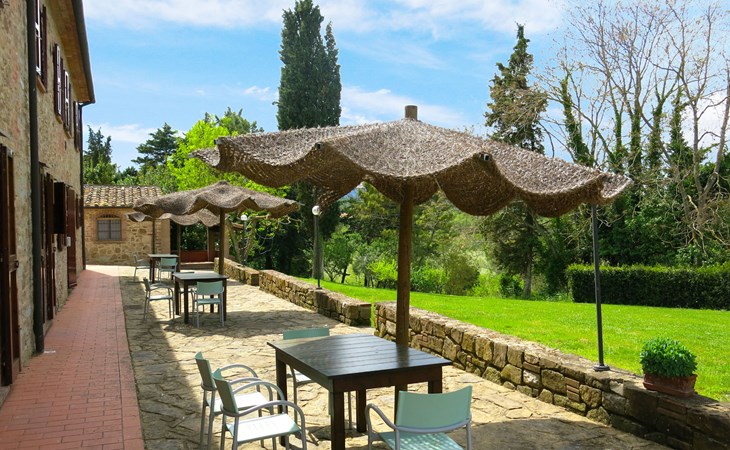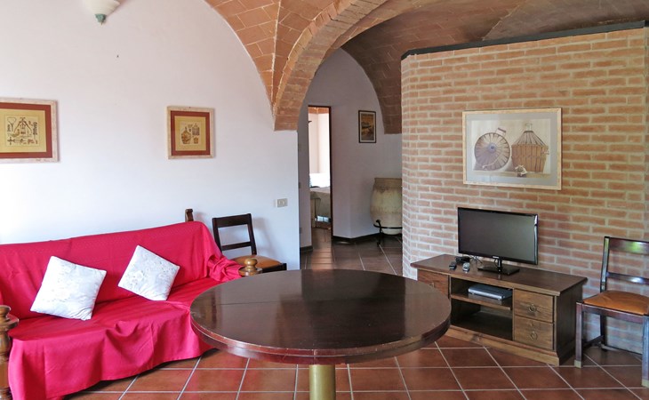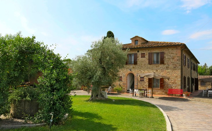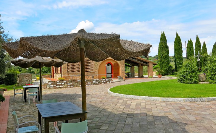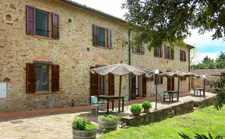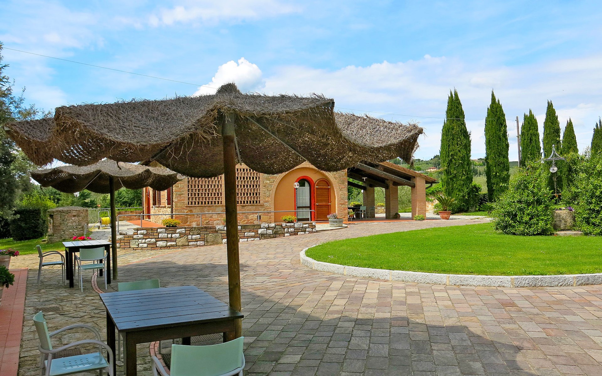 Agriturismo, 2 storeys. 7 houses in the residence. 9 apartments in the residence. 5 km from the centre of Peccioli, 15 km from the centre of Lajatico, in a quiet position on top of a hill, 50 km from the sea. For shared use: property 5 ha with trees, meadow, swimming pool (16 x 8 m, depth 140 cm, seasonal availability: 24.Apr. - 02.Oct.). Shower/WC in the pool area, outdoor shower, tennis (extra), garden furniture, children's playground. In the house: table tennis, table football, washing machine (for shared use, extra). 900 m long motor access (via unmade road). Roofed, parking on the premises. Shop 2.5 km, supermarket 5 km, bus stop 1 km, natural swimming pond 10 km. Riding stable 5 km, walking paths from the house 2 km. Nearby attractions: Volterra 30 km, Pisa 50 km. Hiking paths: Mountain Bike Le Serre 8 km, Bosco di Ortaglia 8 km. Local sale of farm products.