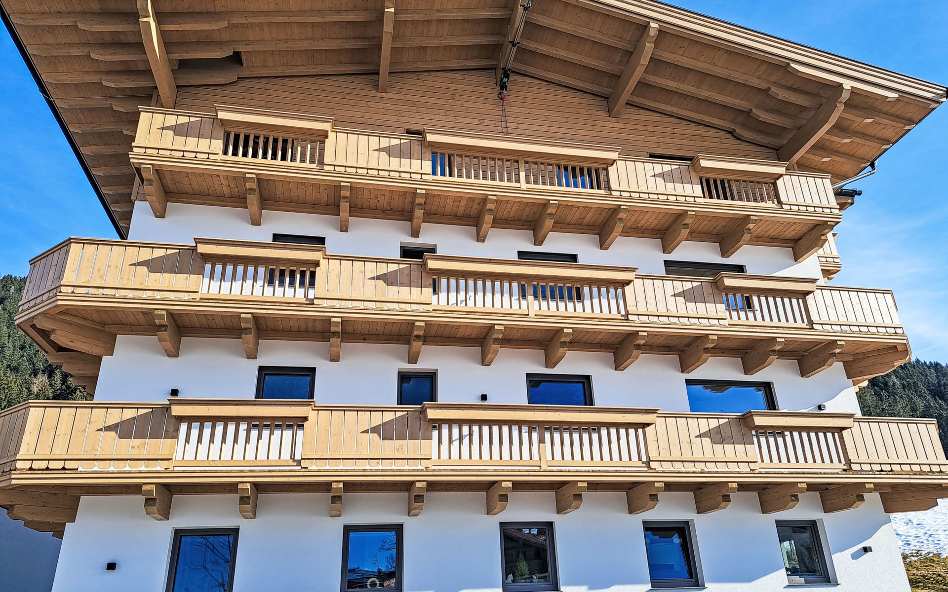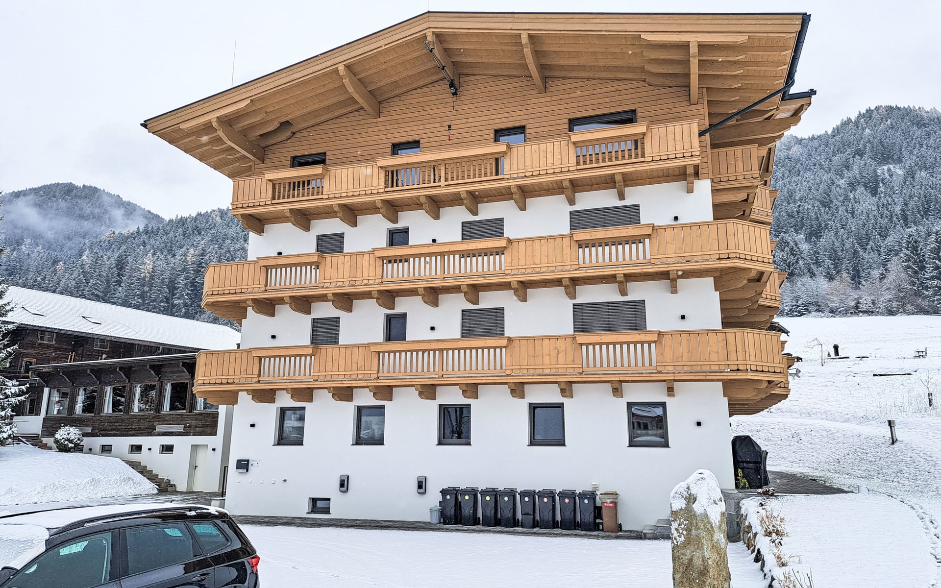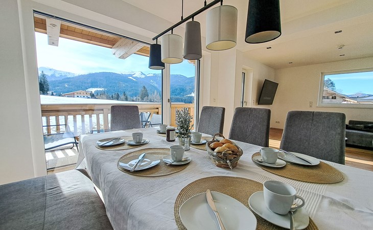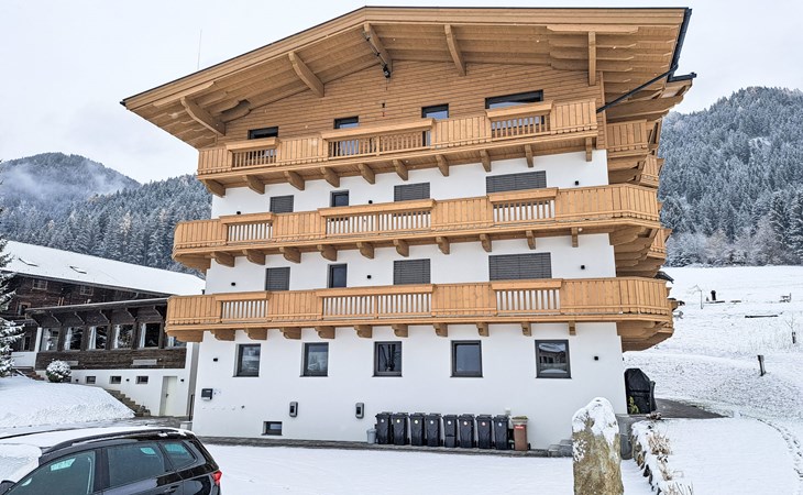 Very modern apartment block, 3 storeys. In the district of Roggenboden, outside the resort Oberau, in a quiet, sunny position, 350 m from the skiing area. For shared use: large garden. Children's playground, petting farm. Private: children's playground, petting farm. In the house: storage room for bicycles, storage room for skis, central heating system, ski boot dryer. Available: sledges. In Winter: please take snow chains. Parking. Shop 2 km, supermarket 2 km, restaurant 350 m, bus stop 200 m, outdoor swimming pool 5 km. Gondola lift 3.5 km, ski rental 3 km, ski bus stop 20 m, ski school 3.5 km, children's ski school 3.5 km. Nearby attractions: Alpincoaster und Familienland Drachental, Bergbauernmuseumd z'Bach, Tiroler Holzmuseum, Kufstein, Rattenberg, Innsbruck. Well-known ski regions can easily be reached: Ski Juwel Alpbachtal/Wildschönau, Ski Welt Wilder Kaiser/Brixental, Skigebiet Roggenboden 350 m. Well-known lakes can easily be reached: Schwarzsee Kitzbühel, Hechtsee, Achensee. Hiking paths: Schatzberg, Hohe Salve. Large property with a petting zoo and a beautiful playground.