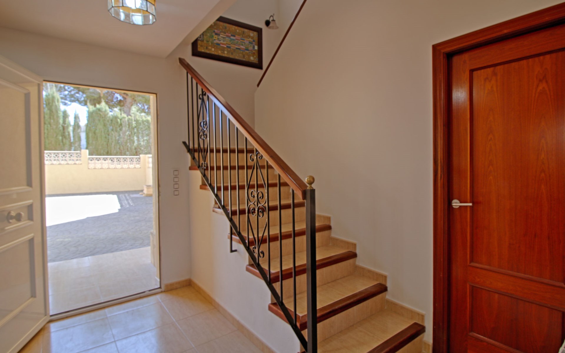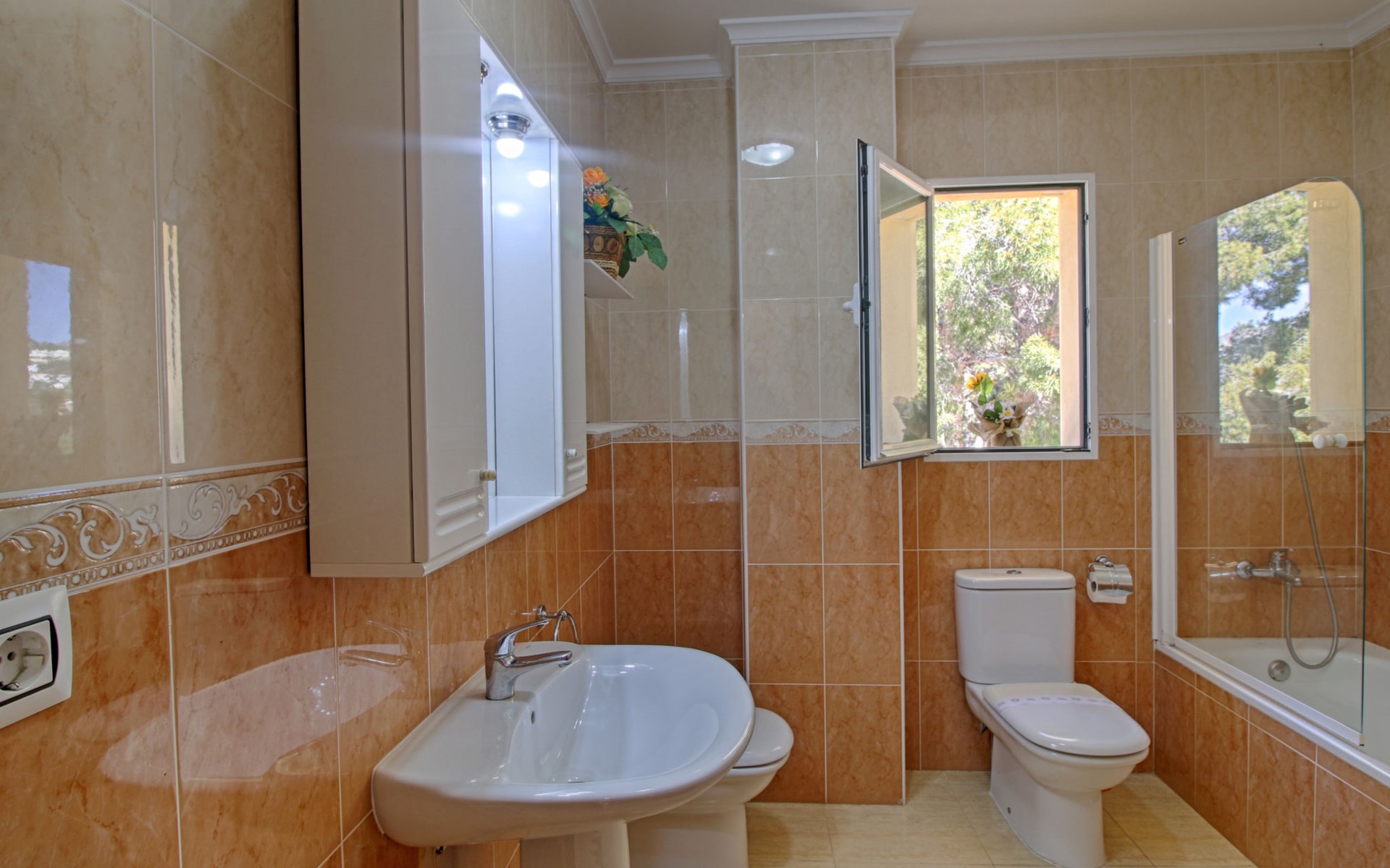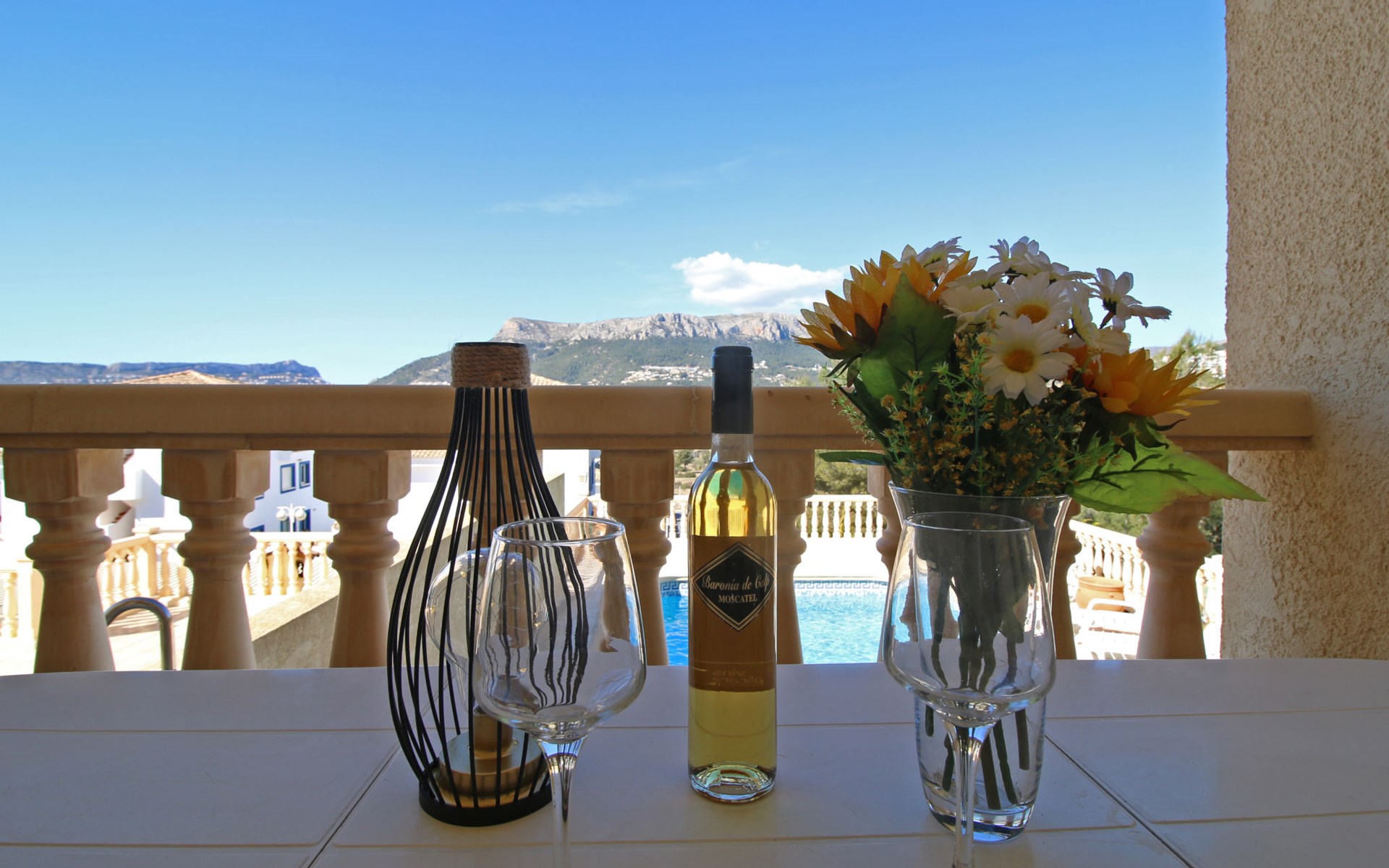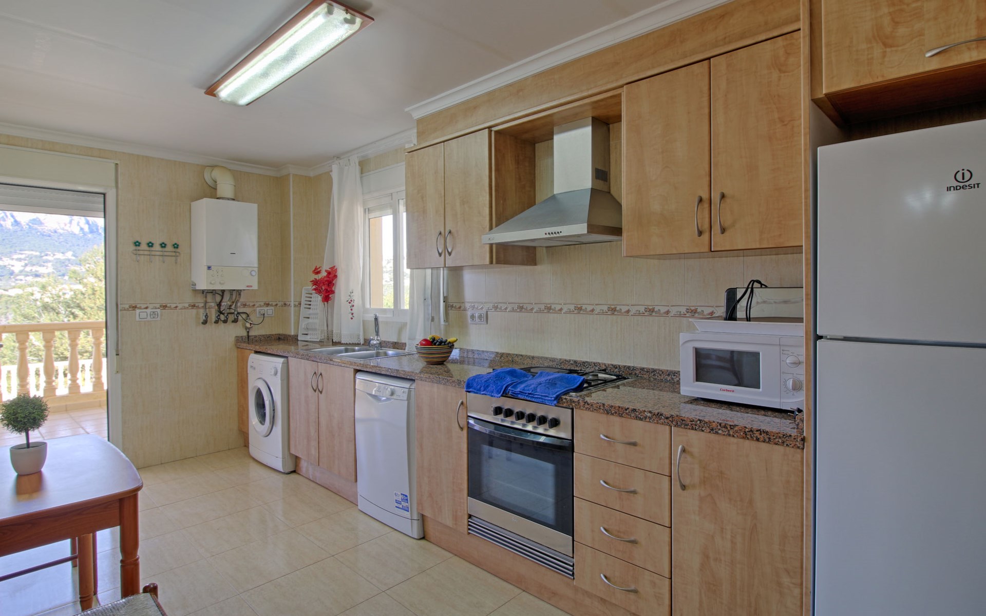Casanova 2 km from calpe: Beautiful villa "Bajamar", 2 storeys. 2 km from the centre of Calpe, in the district Casanova, in a sunny position residential area (villas), 2.3 km from the sea, 2.3 km from the beach. Private: property 550 m2 (fenced), swimming pool (8 x 4 m, seasonal availability: 01.Jan. - 31.Dec.). Outdoor shower, garden furniture, barbecue house, parking. Grocery 1.7 km, supermarket 1.8 km, restaurant 1.5 km, bar 1.5 km, bus stop 450 m, sandy beach "Playa del Arenal" 2.2 km. Sports harbour 3.4 km, marina 3.4 km, sailing school 3.4 km, tennis 1.5 km. Nearby attractions: Parque de atracciones Terra Mítica 35 km, Parque acuático Aqualandia 25 km. Hiking paths: Parque natural Peñon de Ifach 3 km.