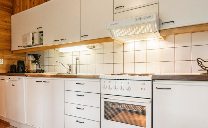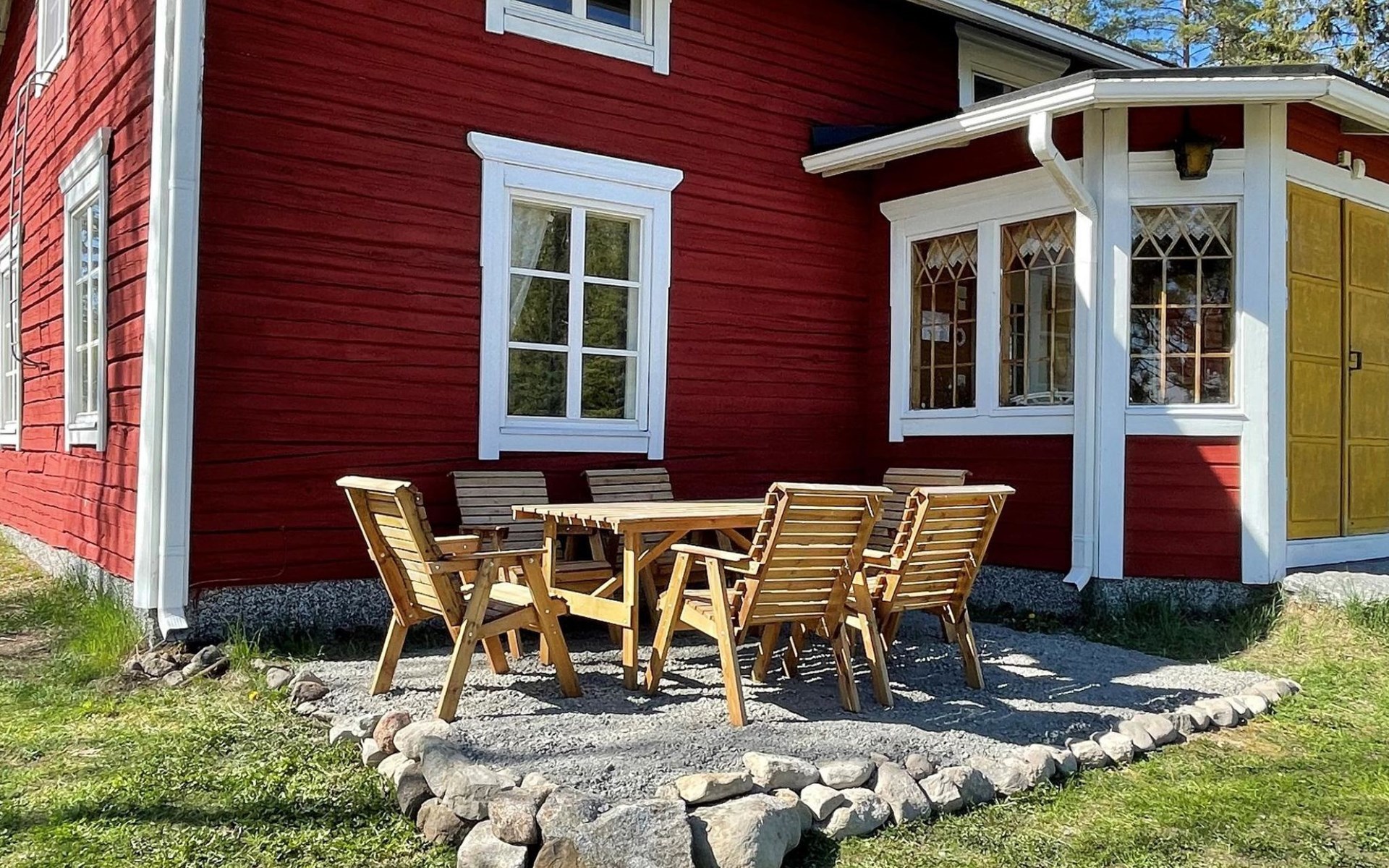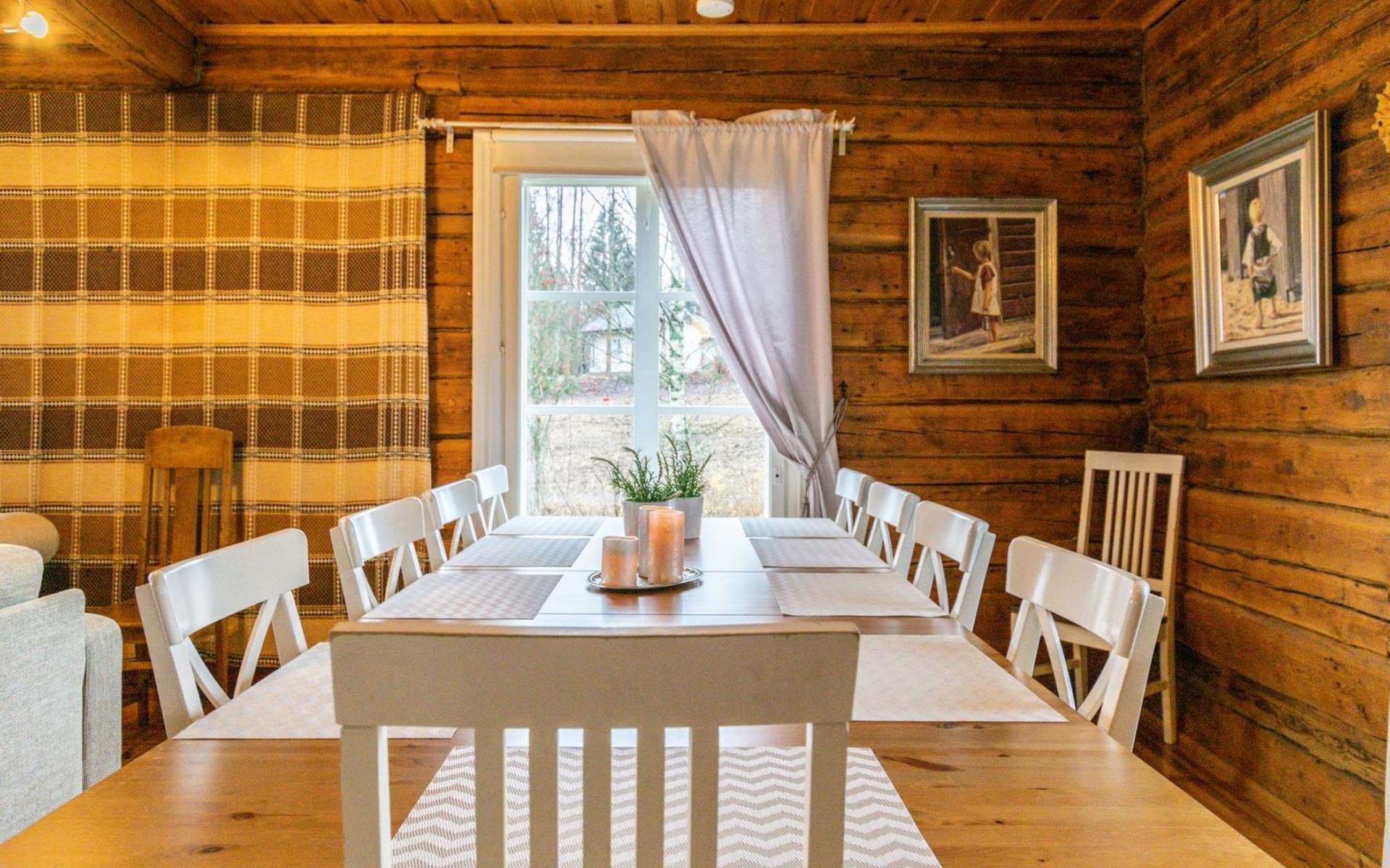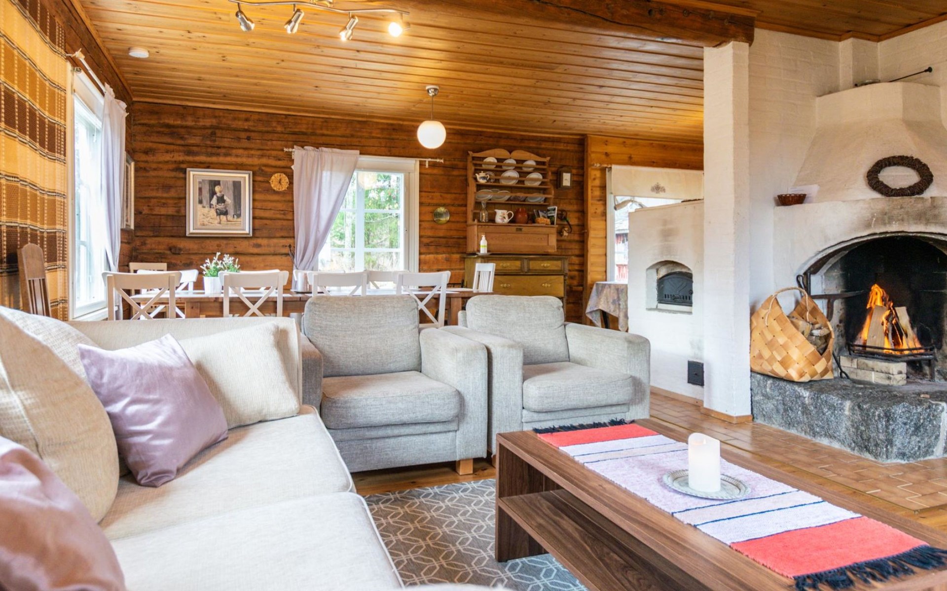 Log-built cabin. On the ground floor, spacious living room, kitchen, 2 bedrooms (both with two beds), WC with shower. On the upper floor, two bedrooms, one with two beds and another with double bed and two single beds, sauna (electric sauna stove), WC / washroom and dressing room. In the backyard, there is a covered cooking area with solid masonry grill.